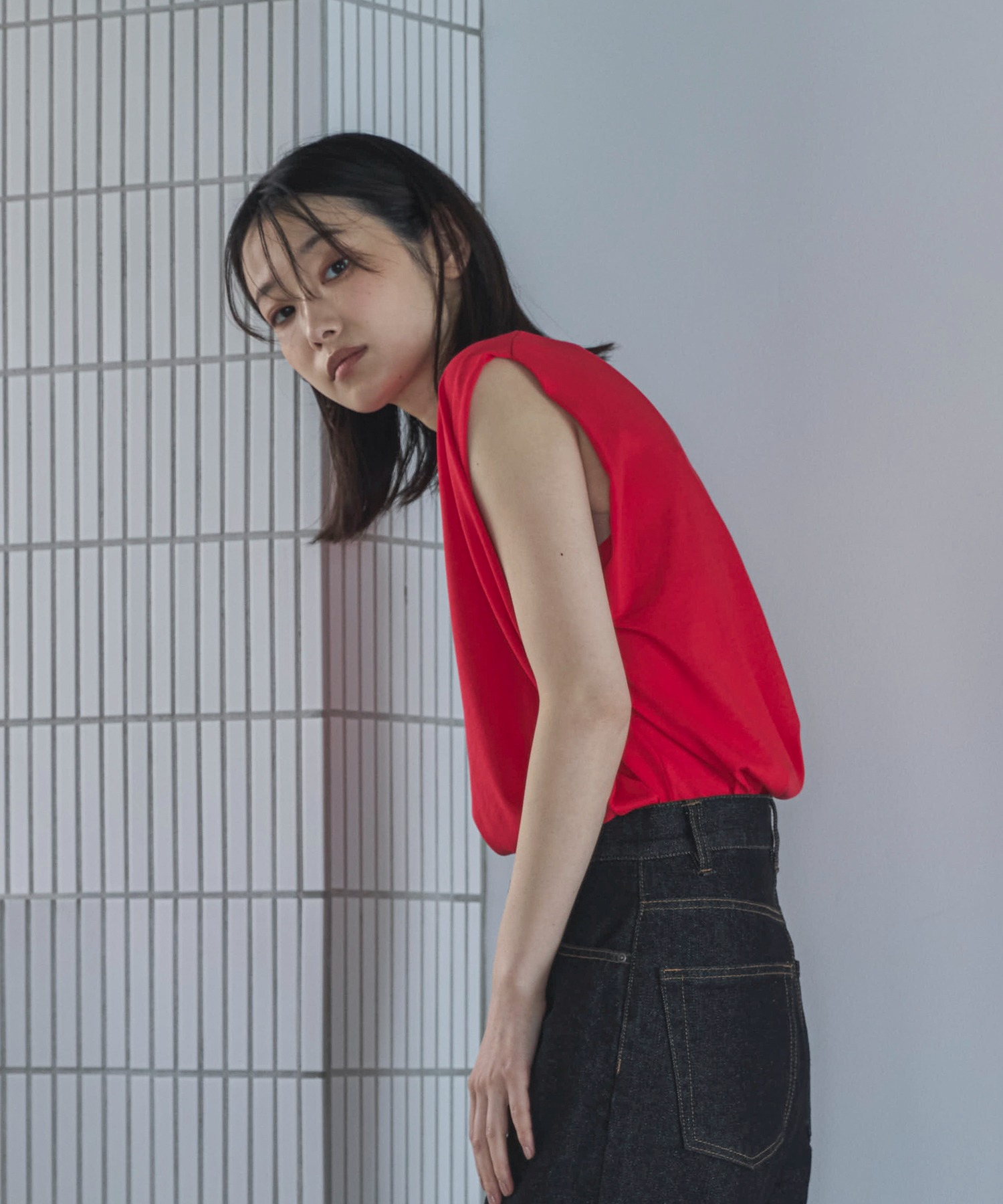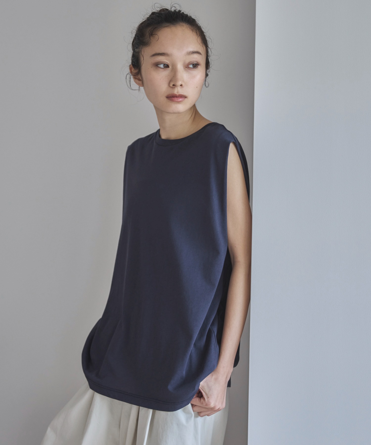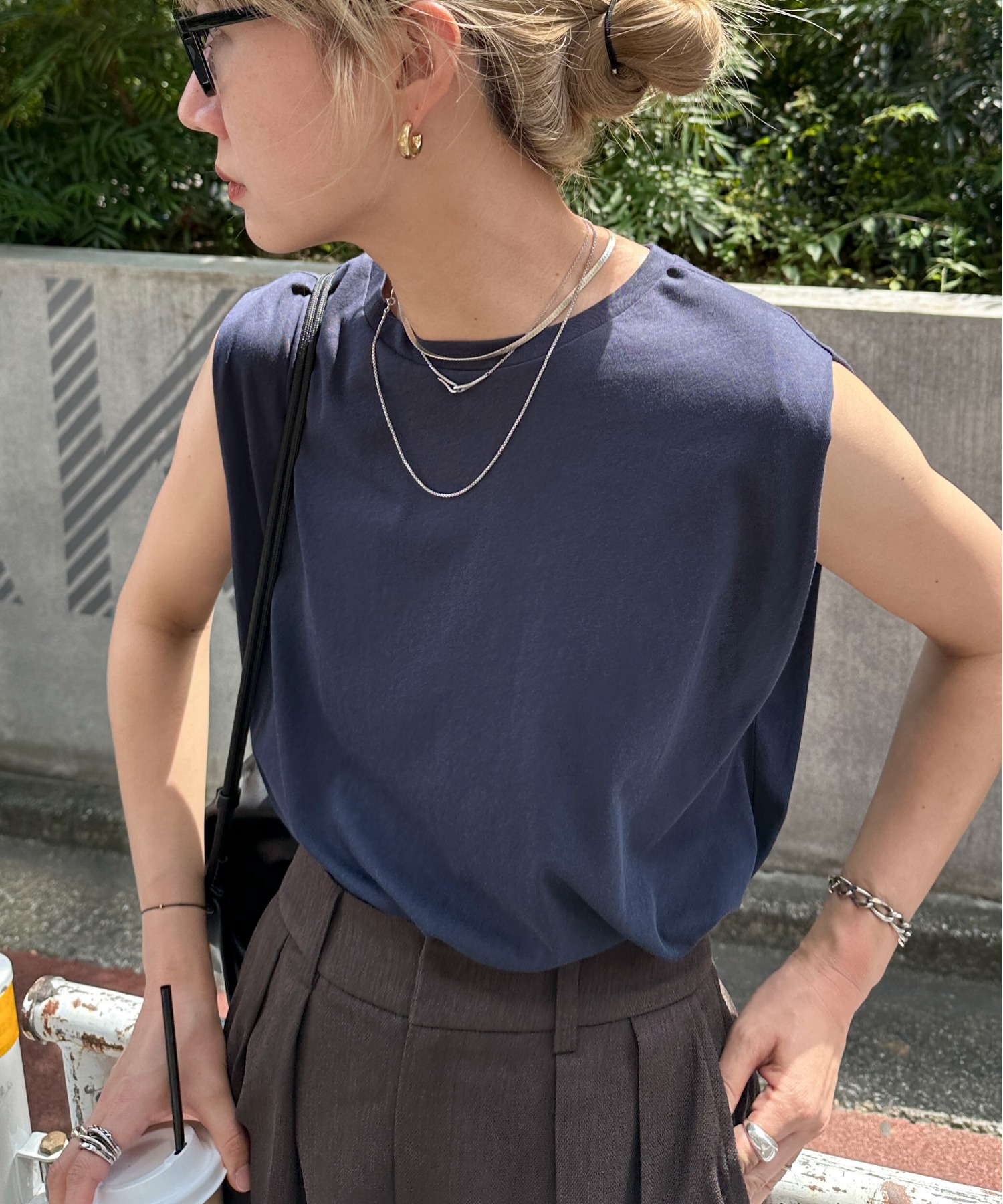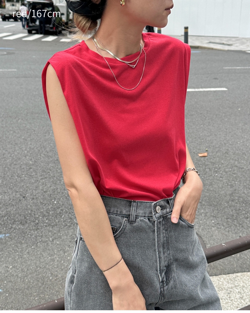 スラブ調ショルダータックタンクトップ