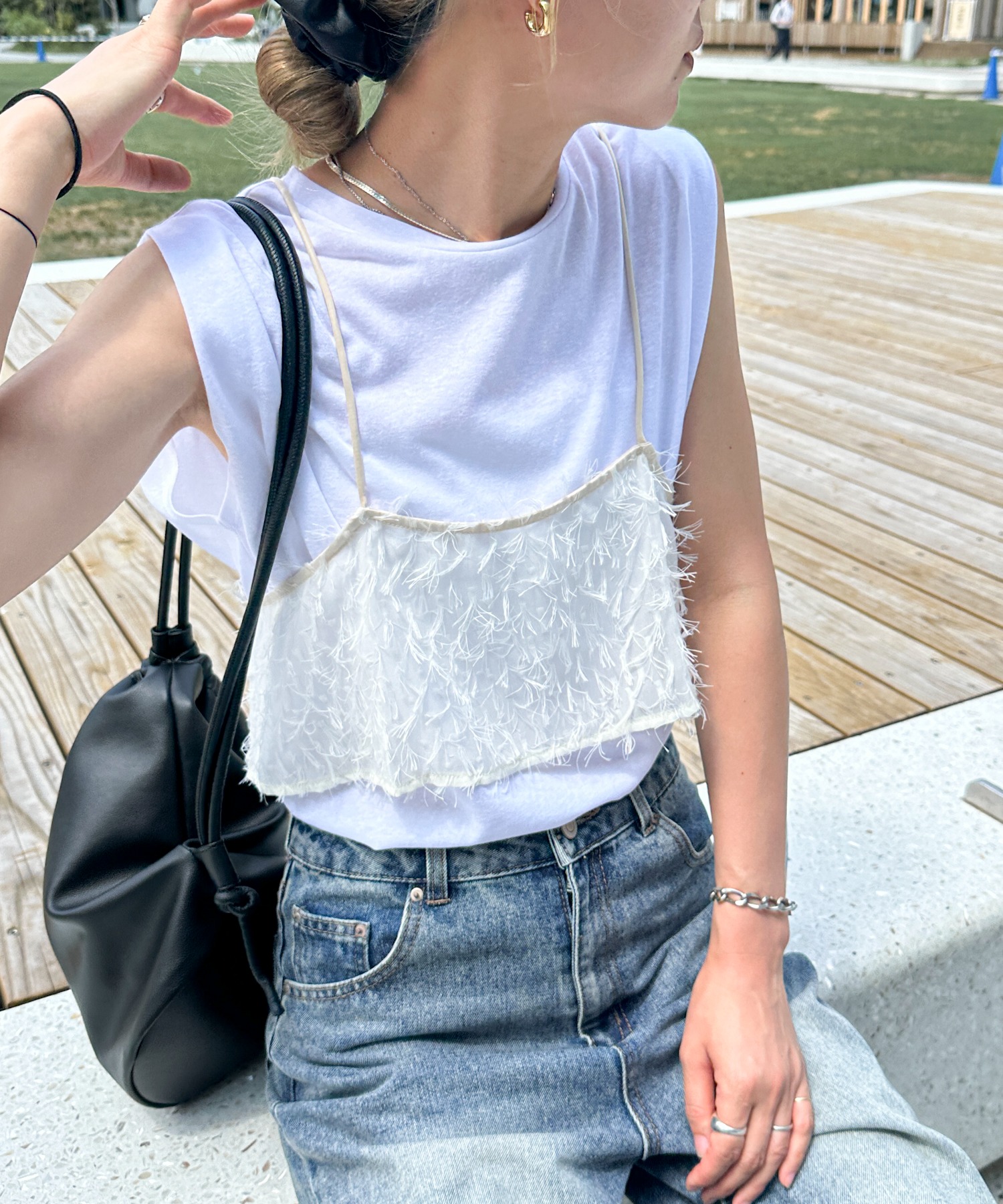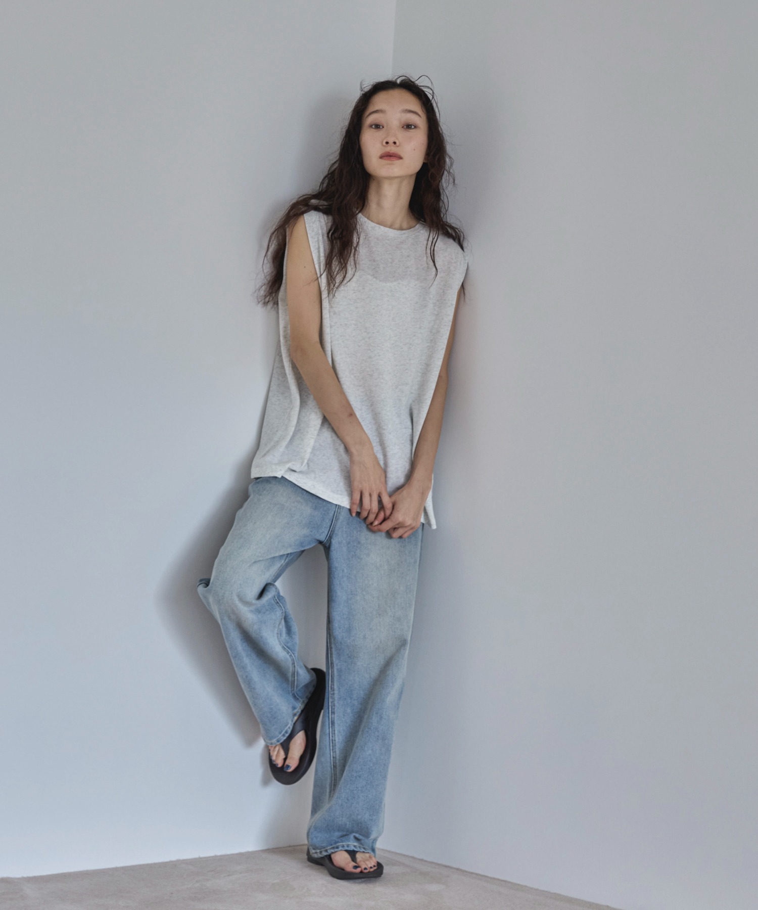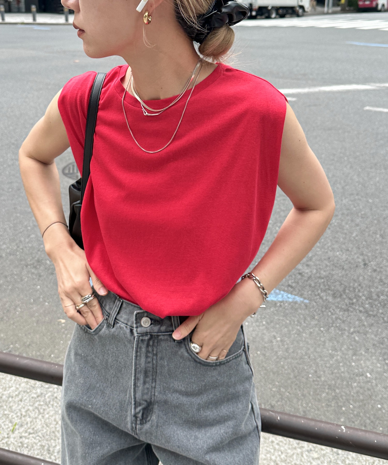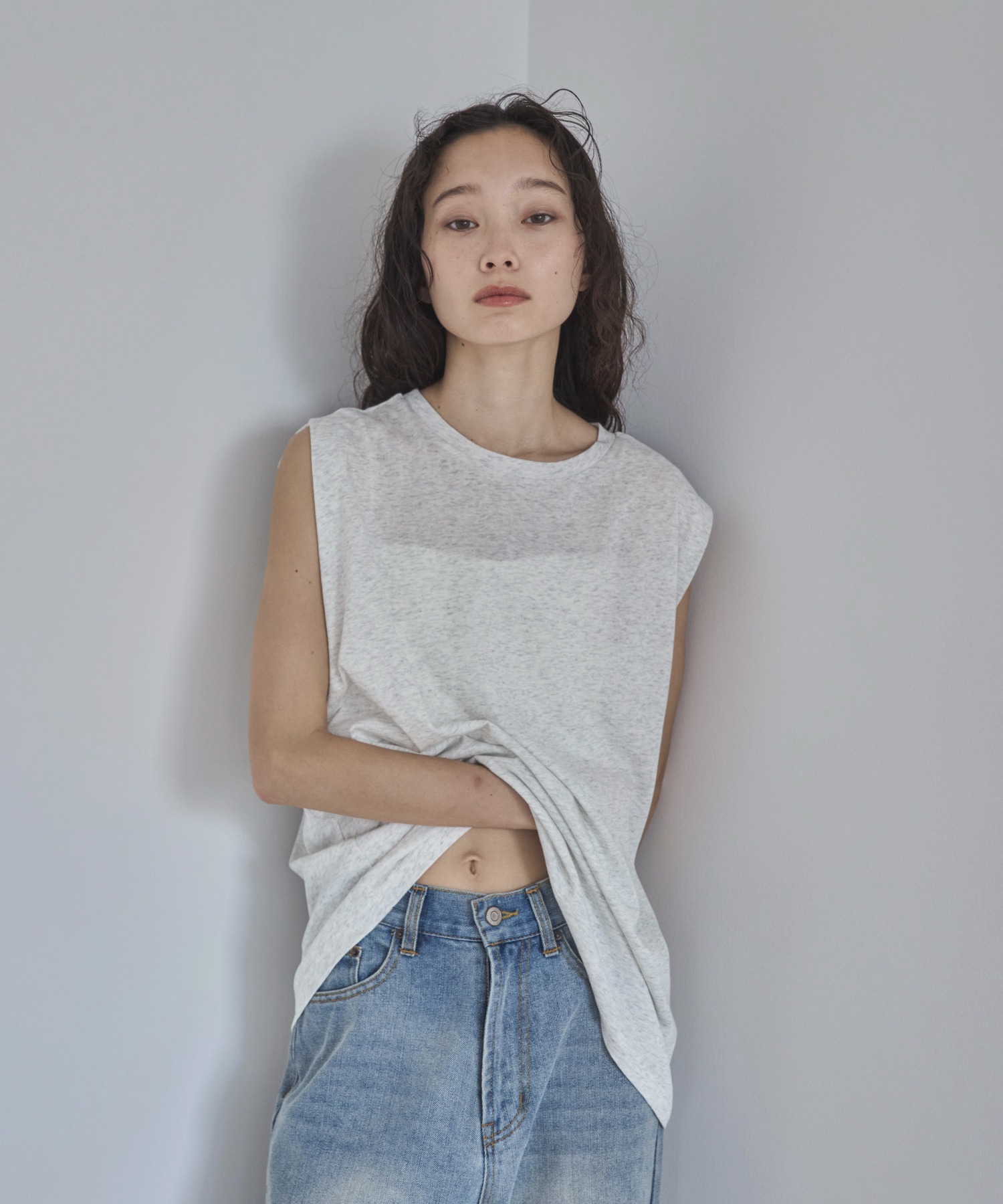 スラブ調ショルダータックタンクトップ