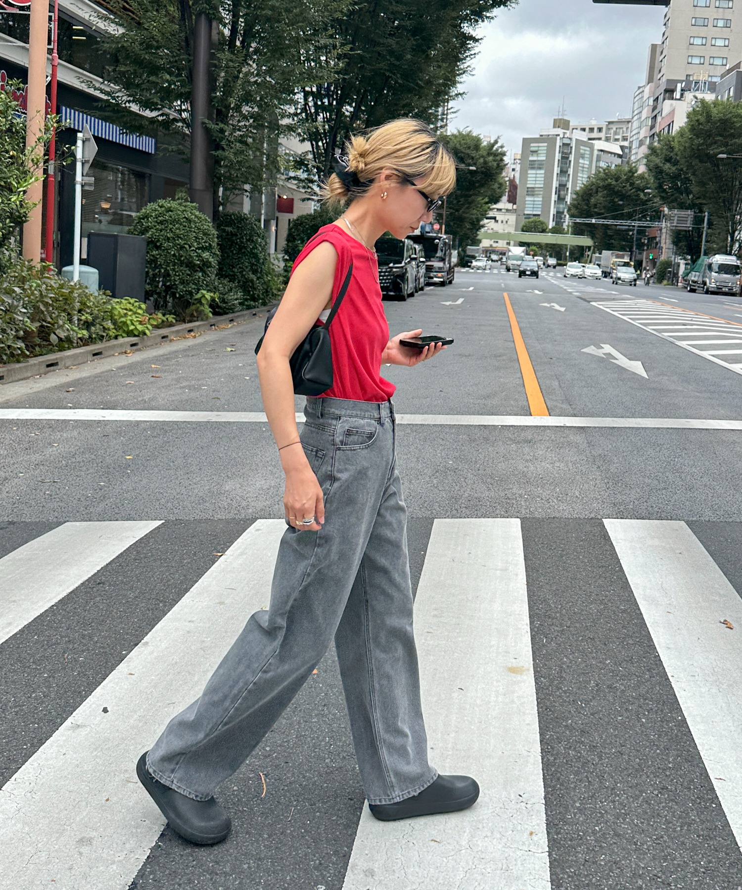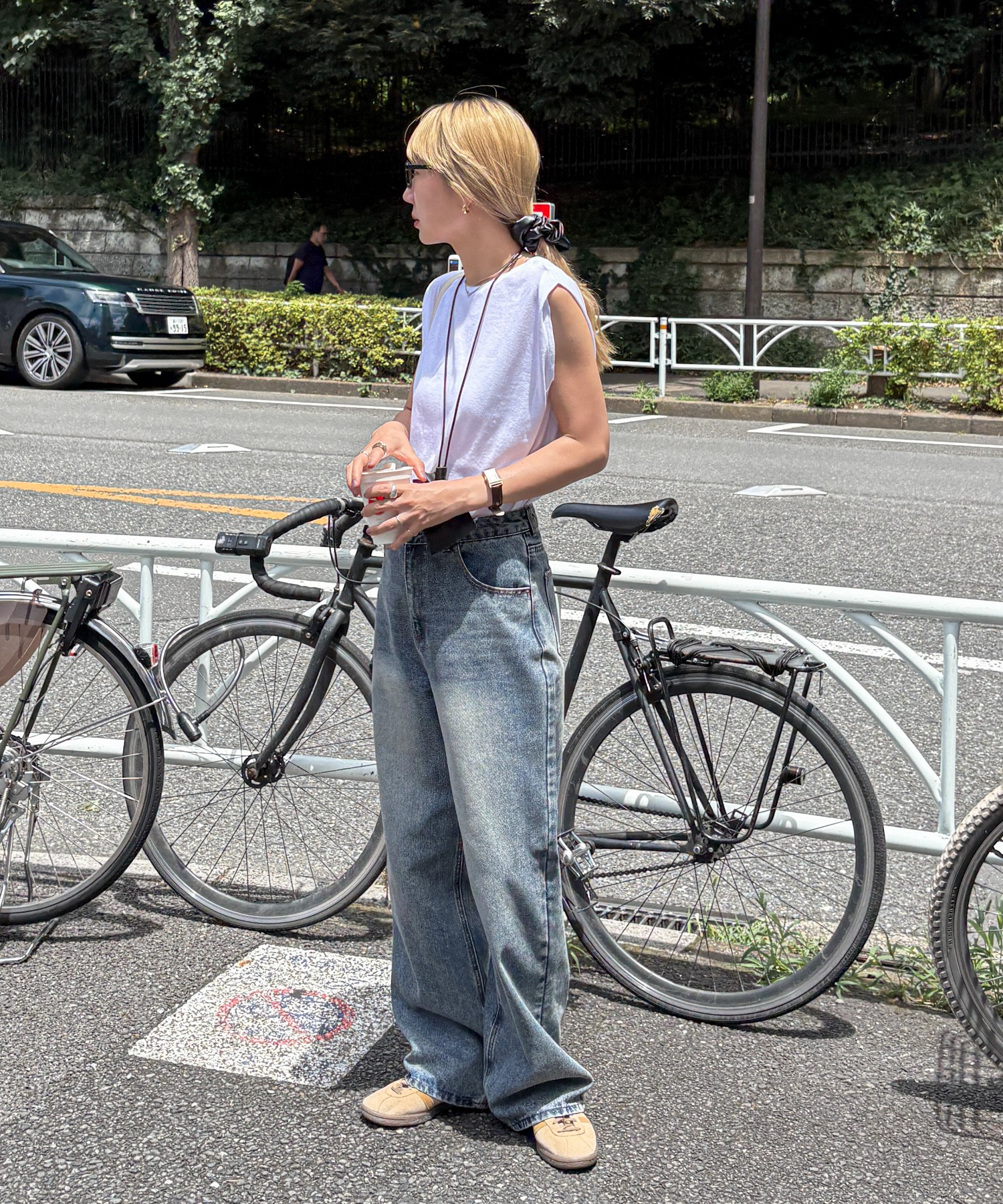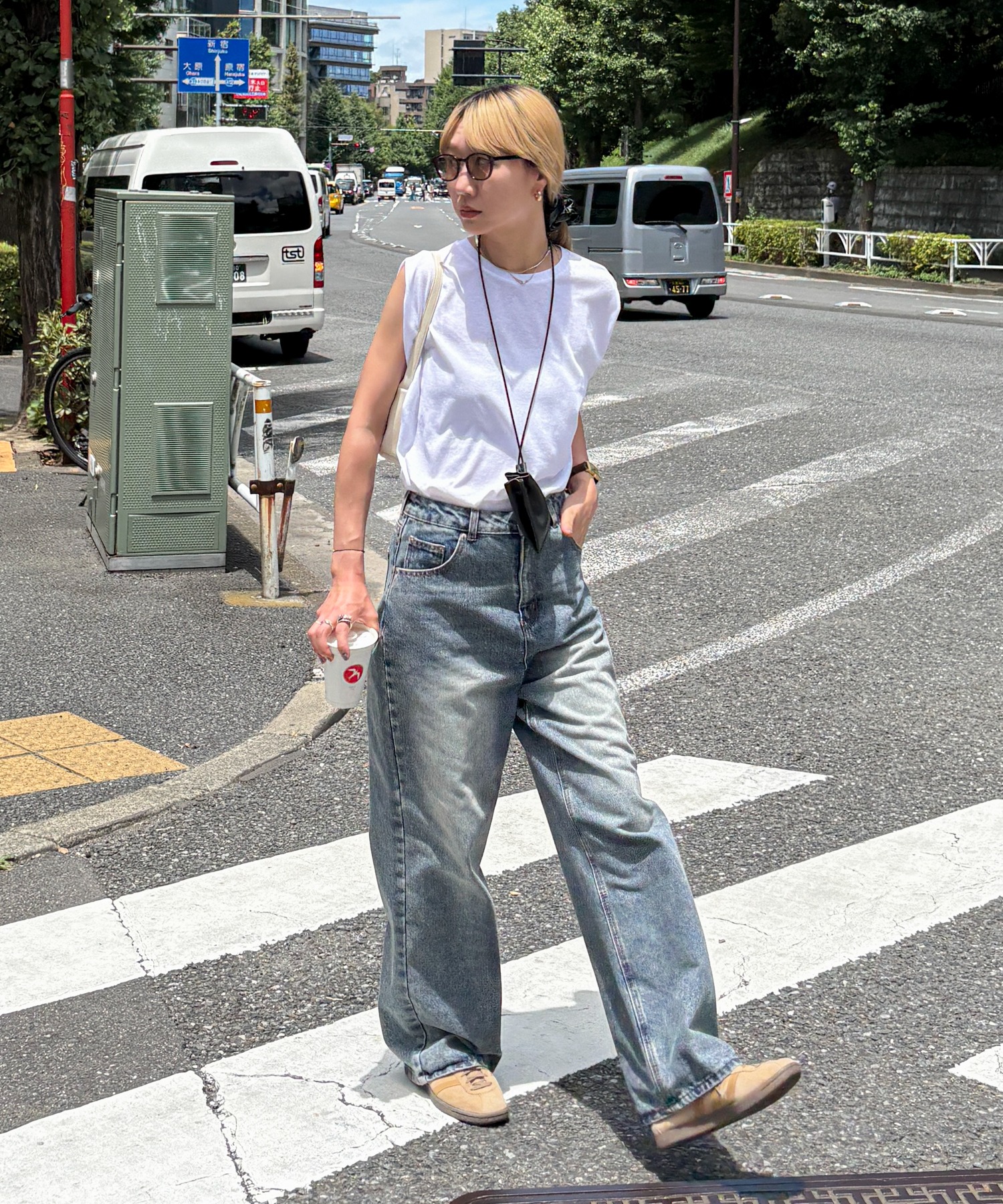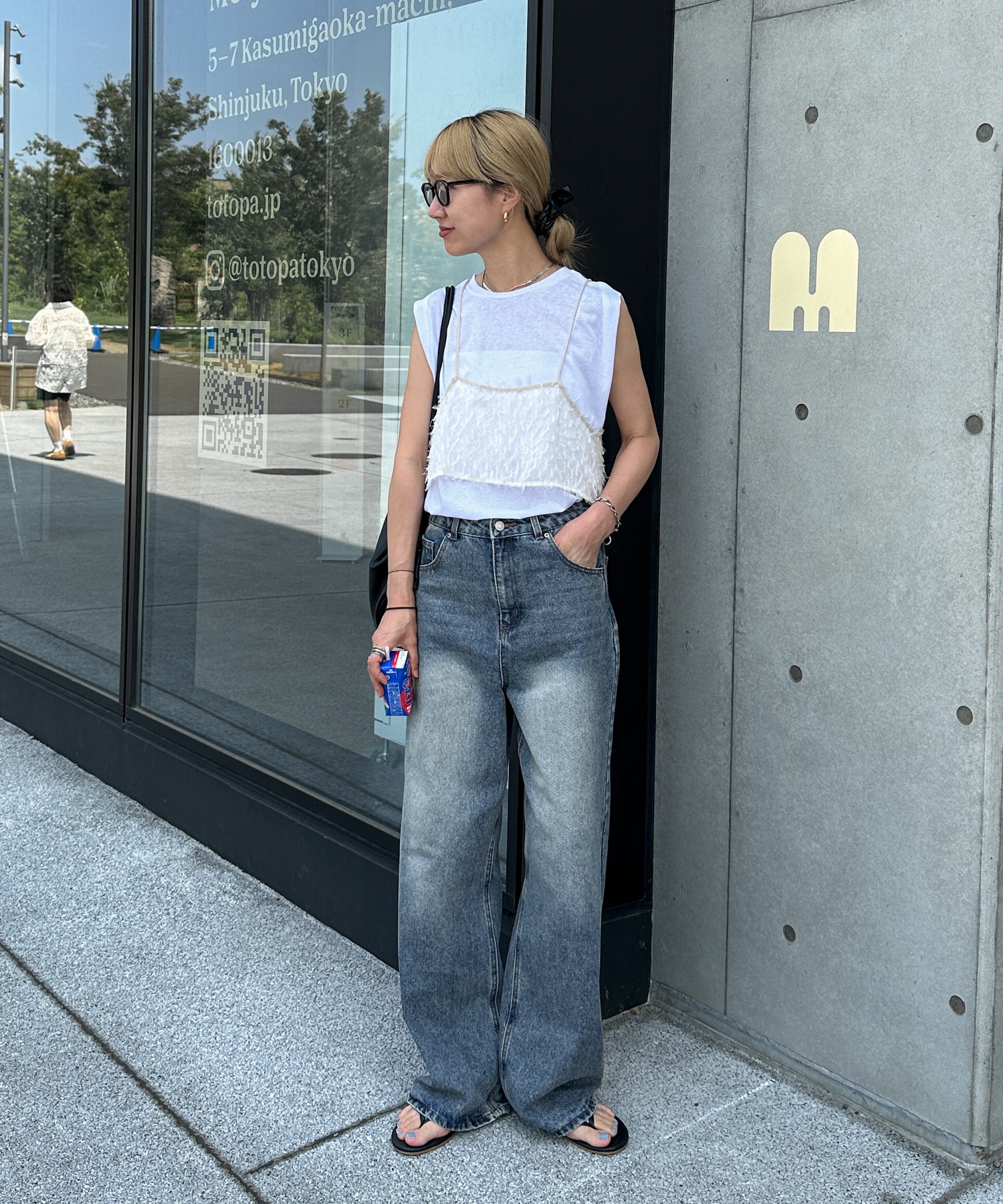 スラブ調ショルダータックタンクトップ