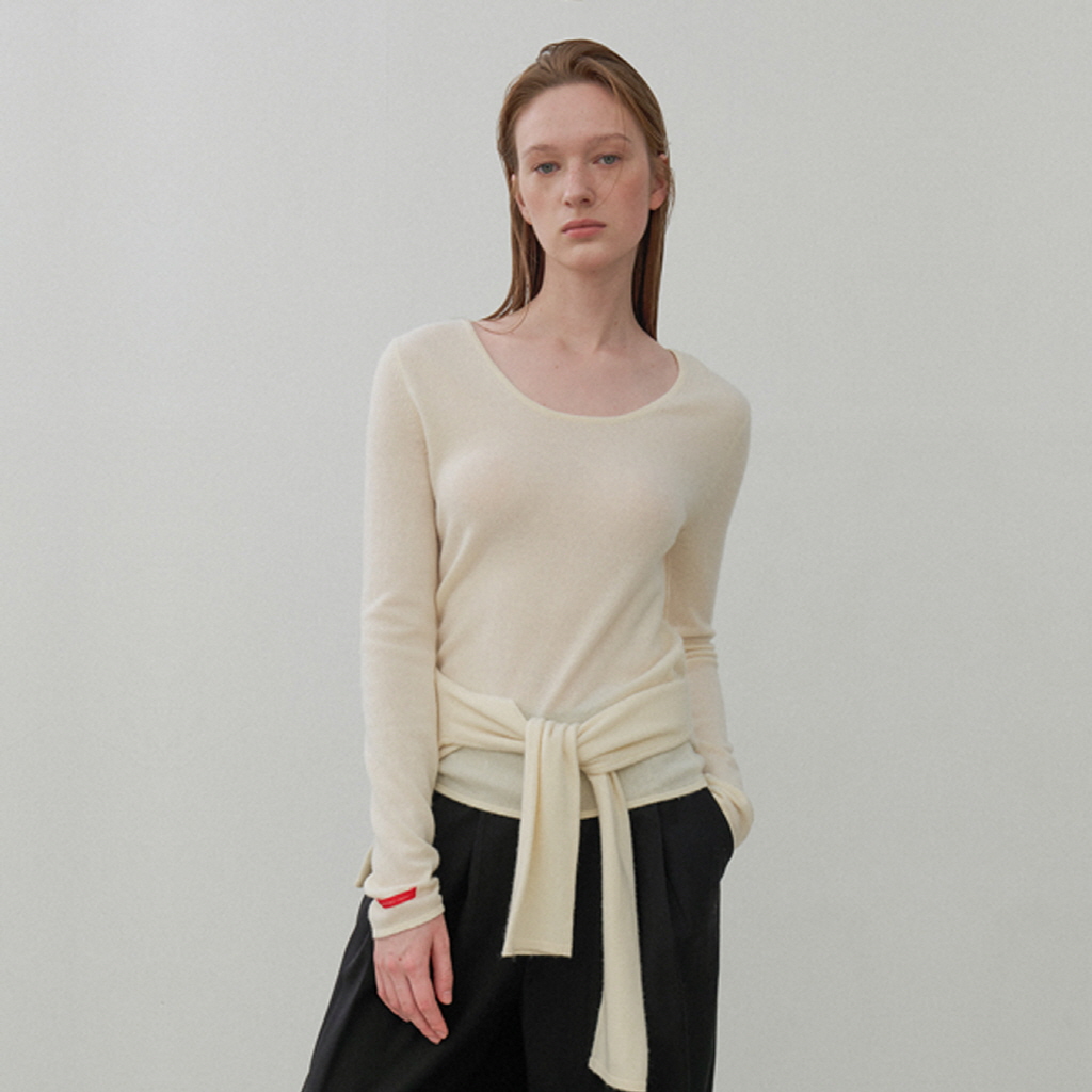 (T-6968)ESSENTIAL CASHMERE BOAT NECK SLIM KNIT