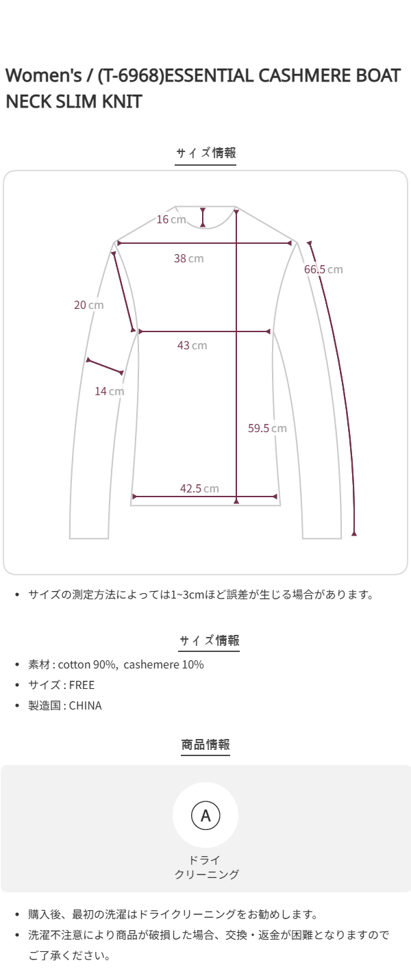 *캐시미어 소재로 드라이클리닝을 반드시 권장합니다.