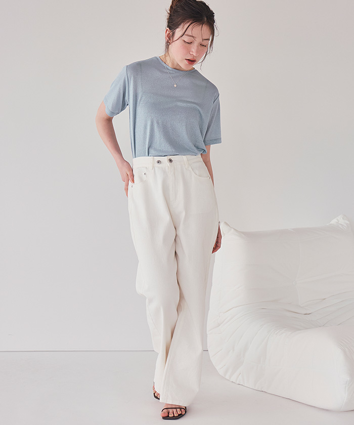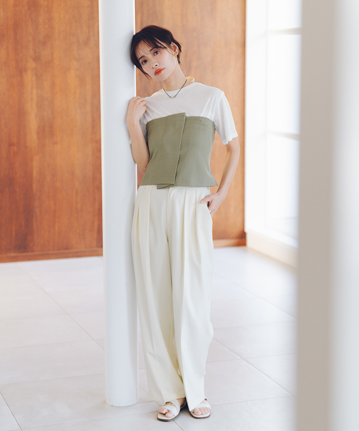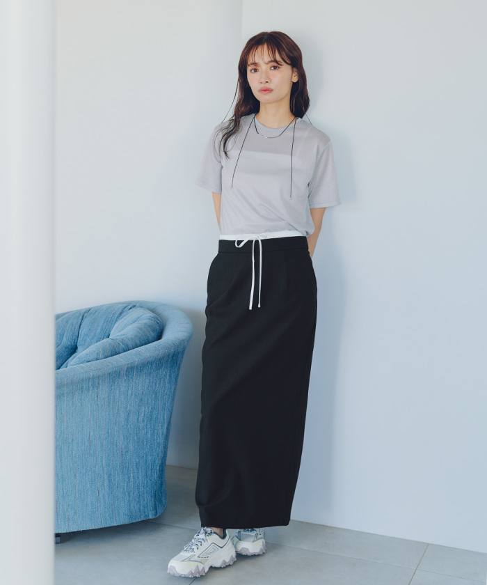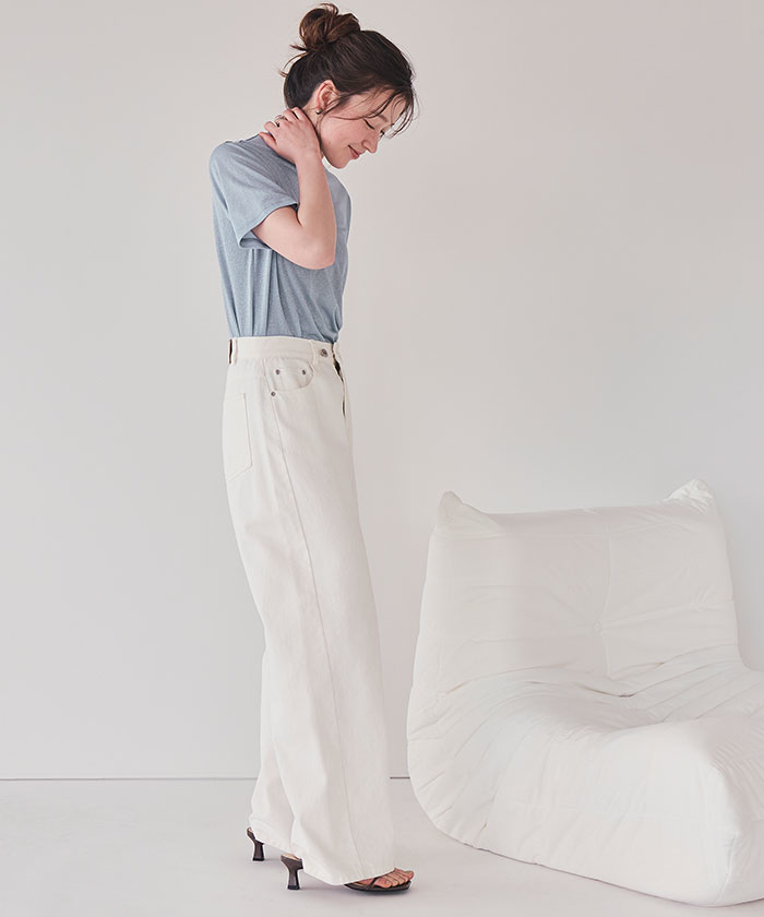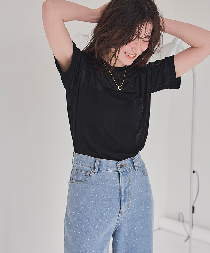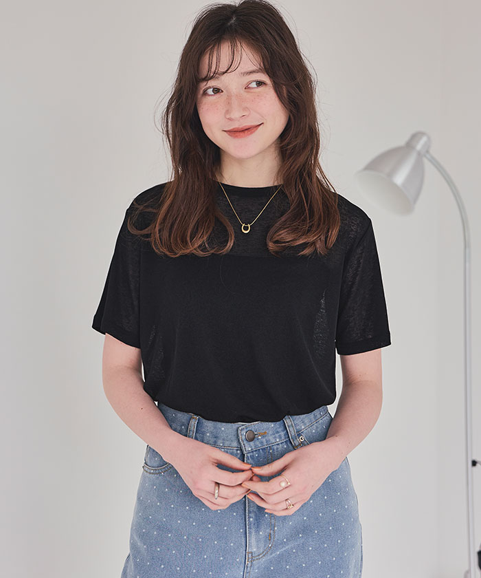 ・襟ぐりは細めの切り替えに仕上げ、カジュアルすぎず女性らしいTシャツシルエットに仕上げました