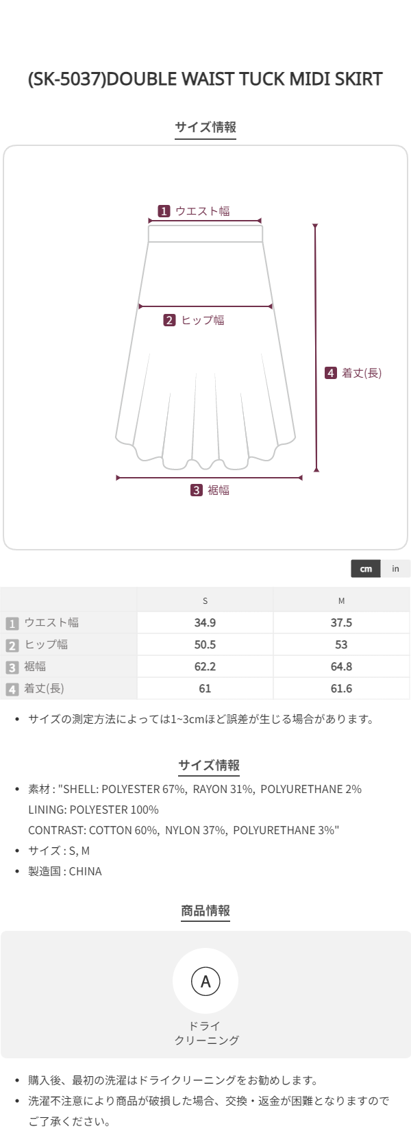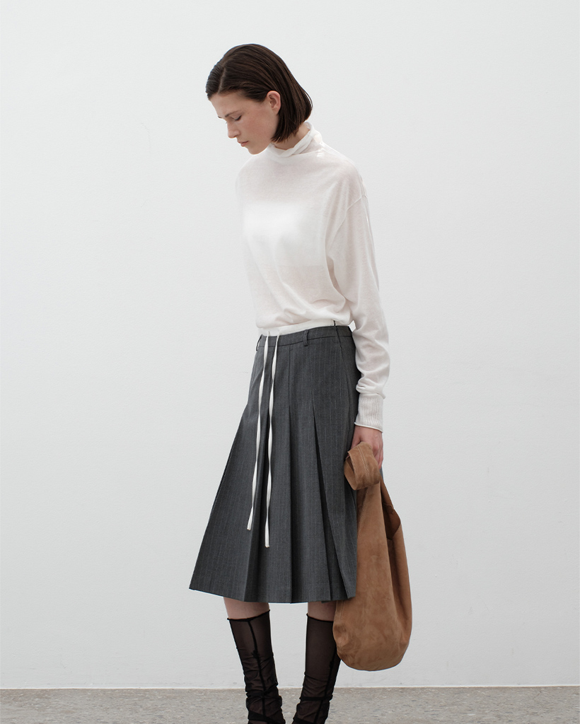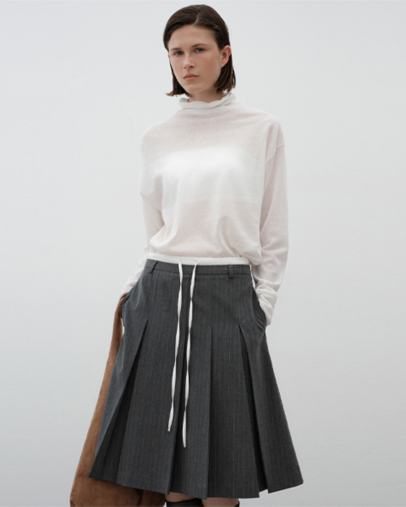 (SK-5037)DOUBLE WAIST TUCK MIDI SKIRT