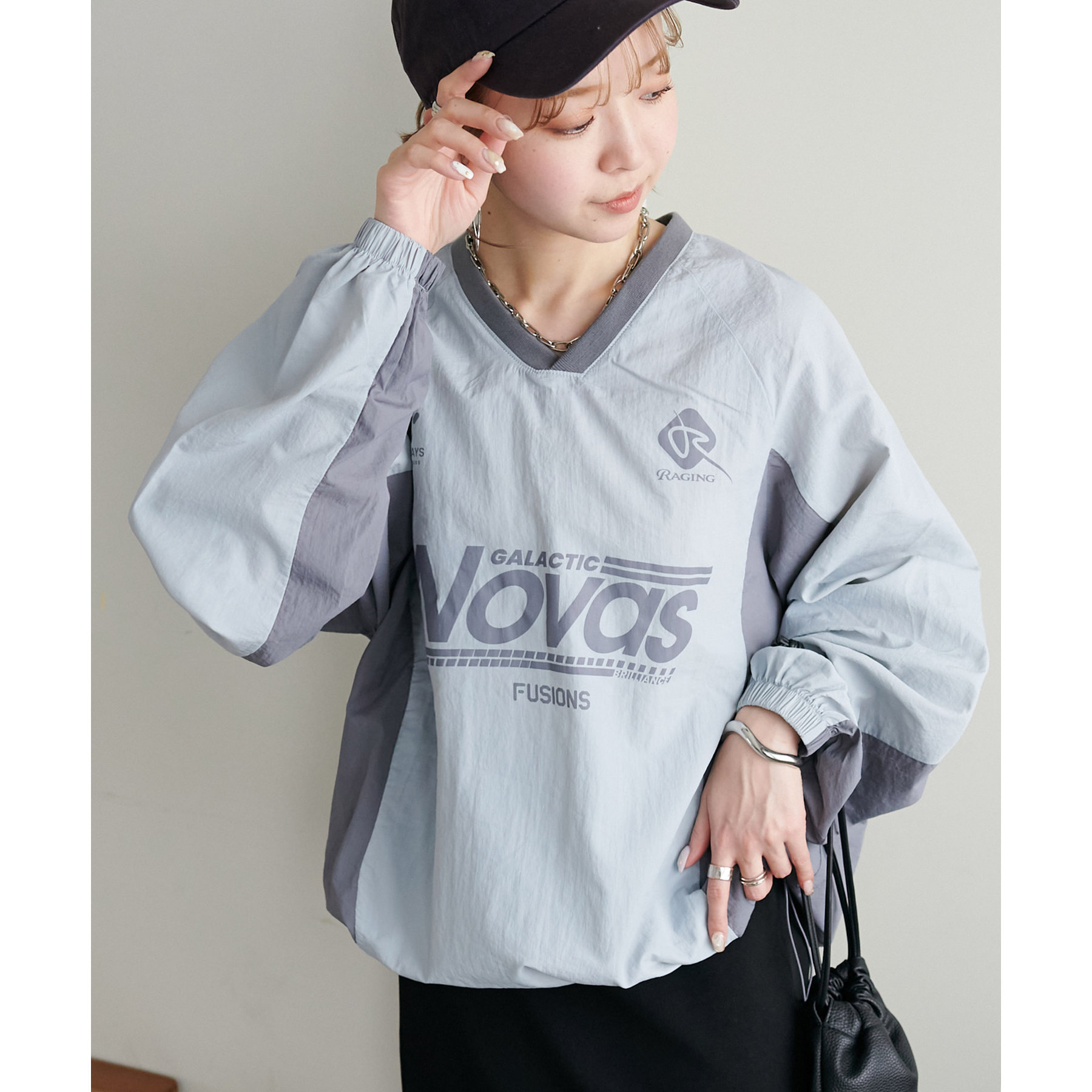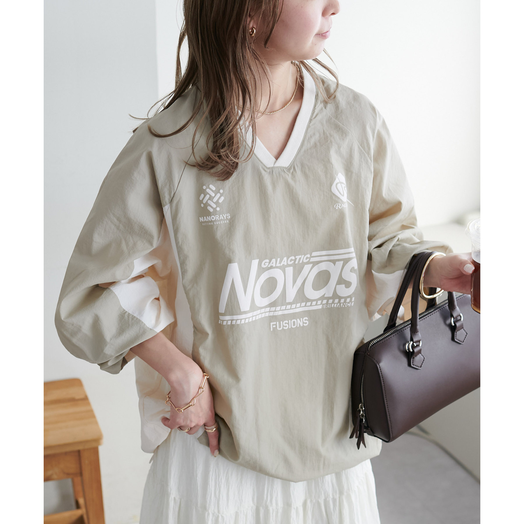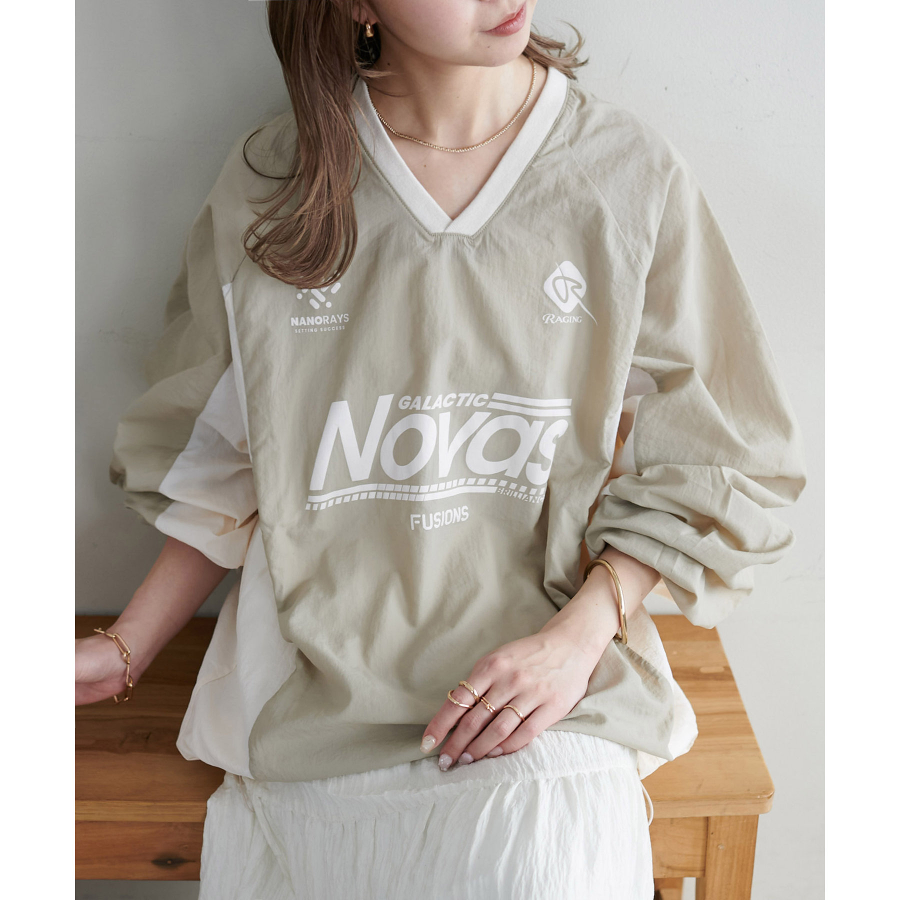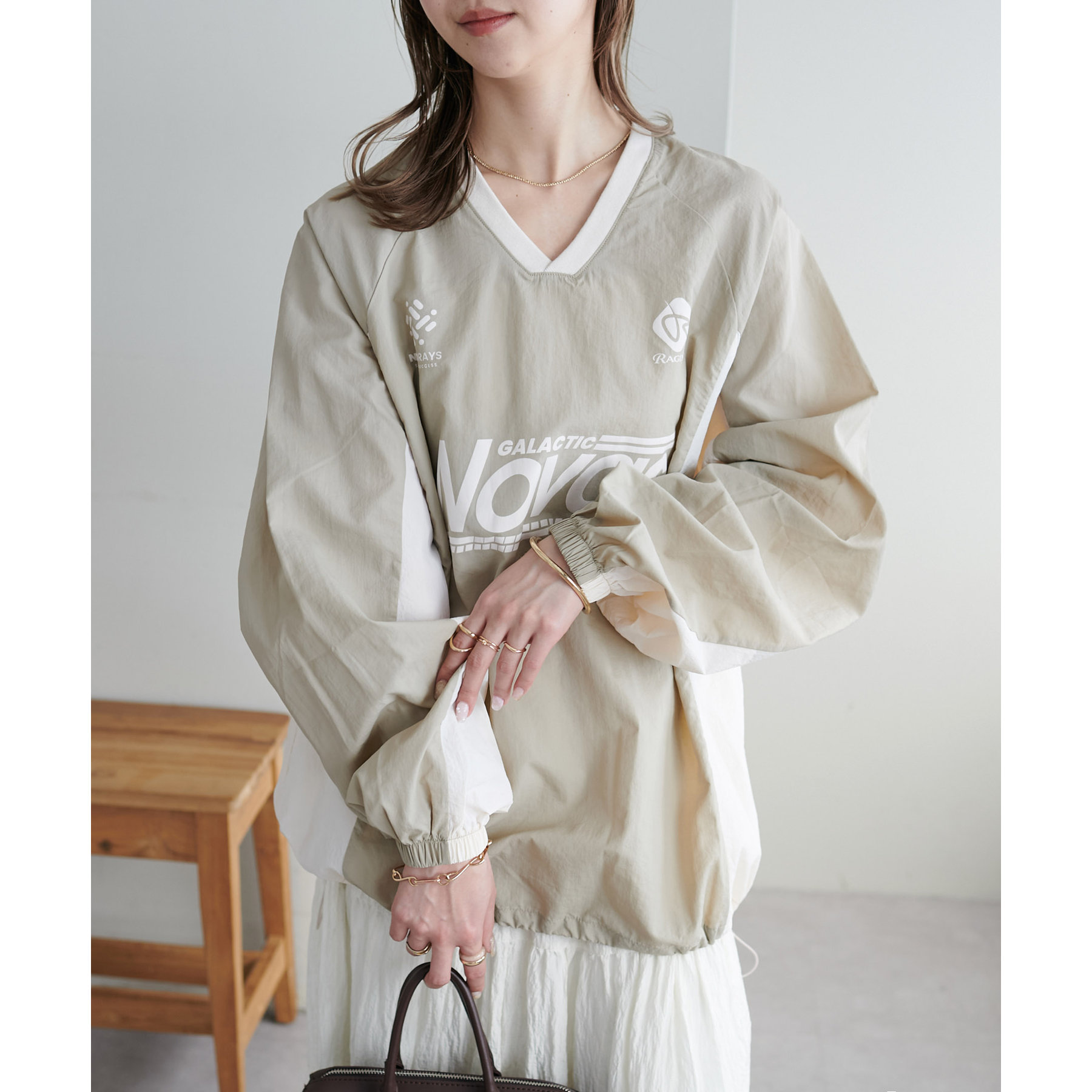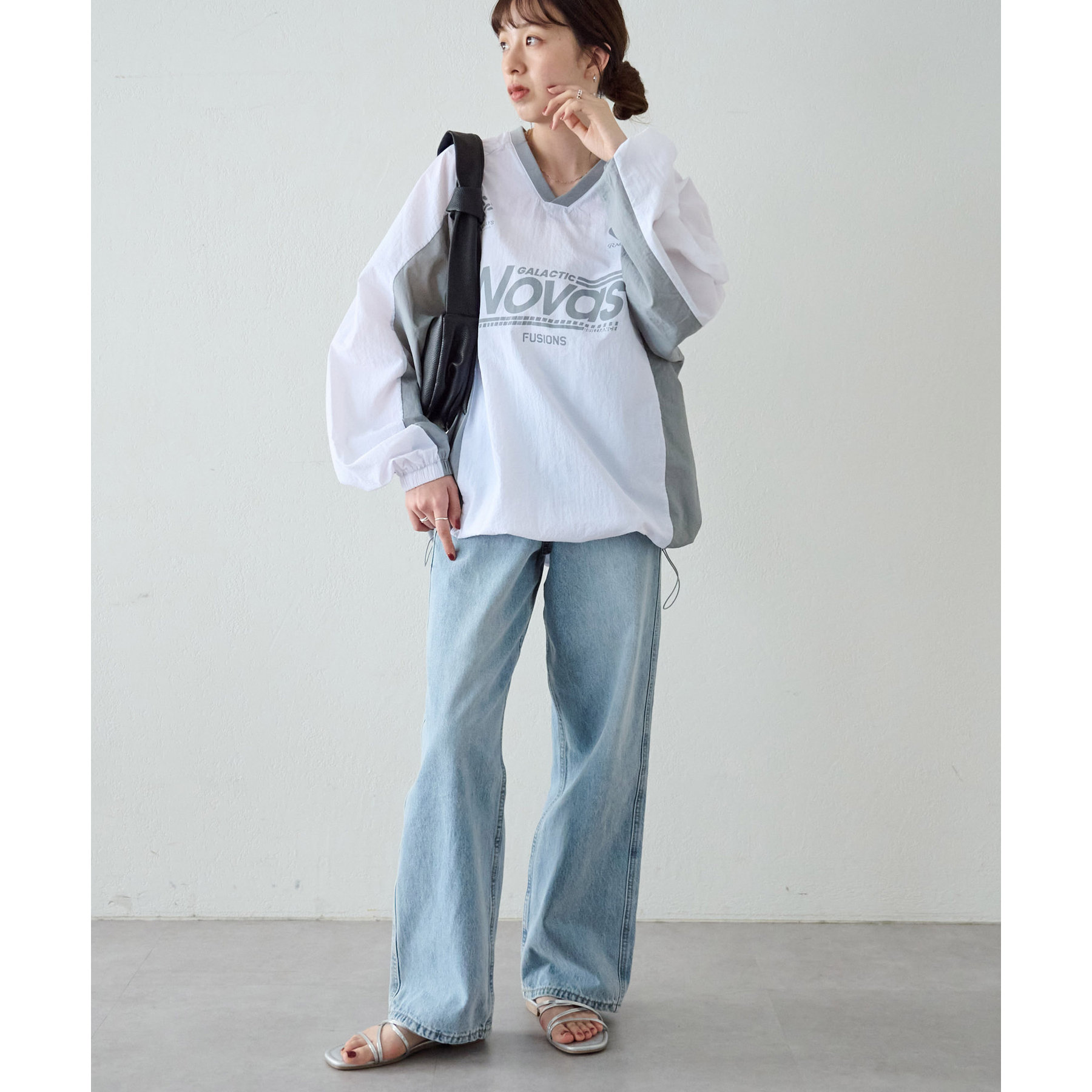 配色デザインとフロントのロゴデザインが魅力のナイロンスウェット。裾はドロスト仕様なので絞ってシルエットを丸くすれば女性らしさをプラスできます!Vネックで抜け感も◎メンズライクなアイテムなので、女性の方はスカートを合わせて少し甘さをプラスしたコーデがおすすめです♪