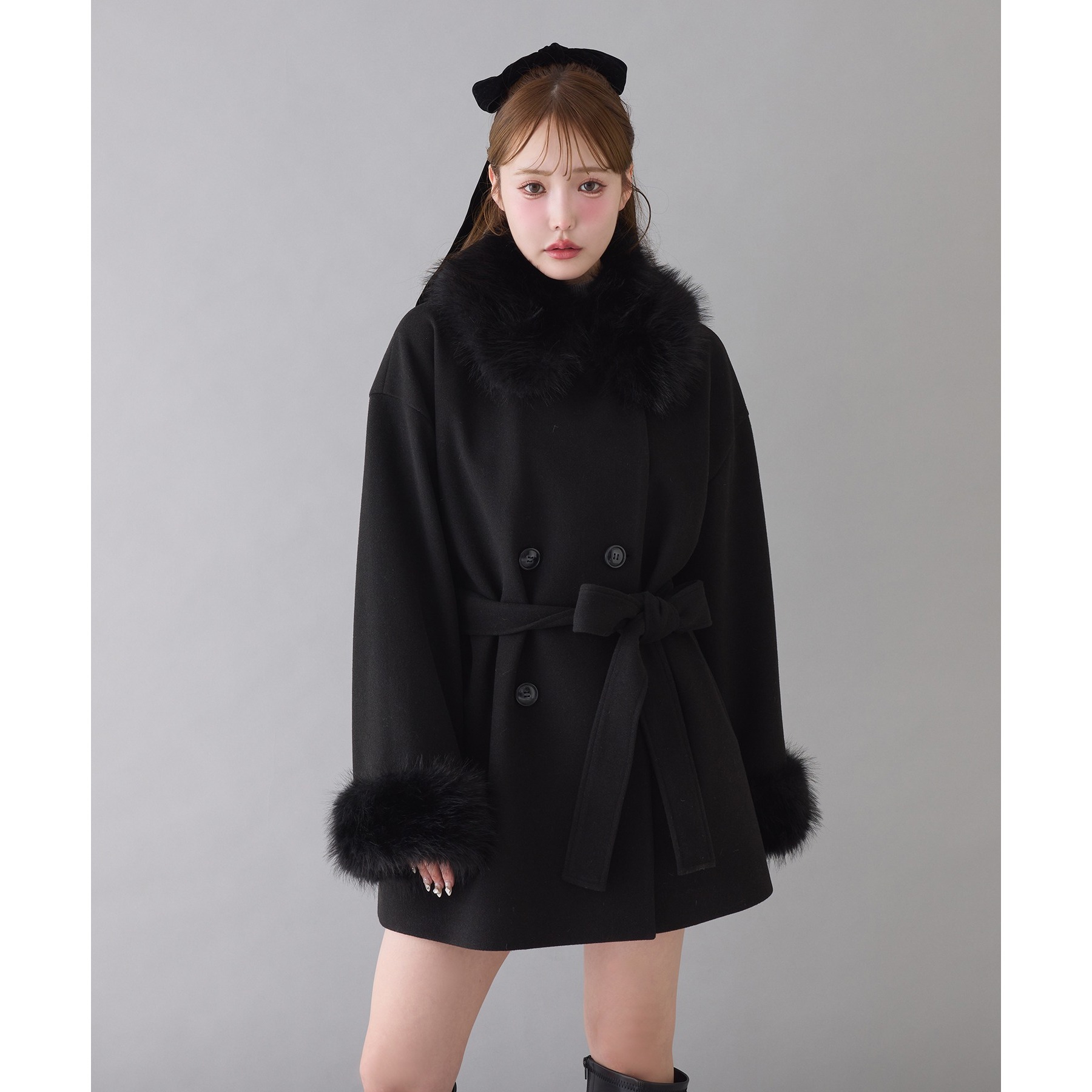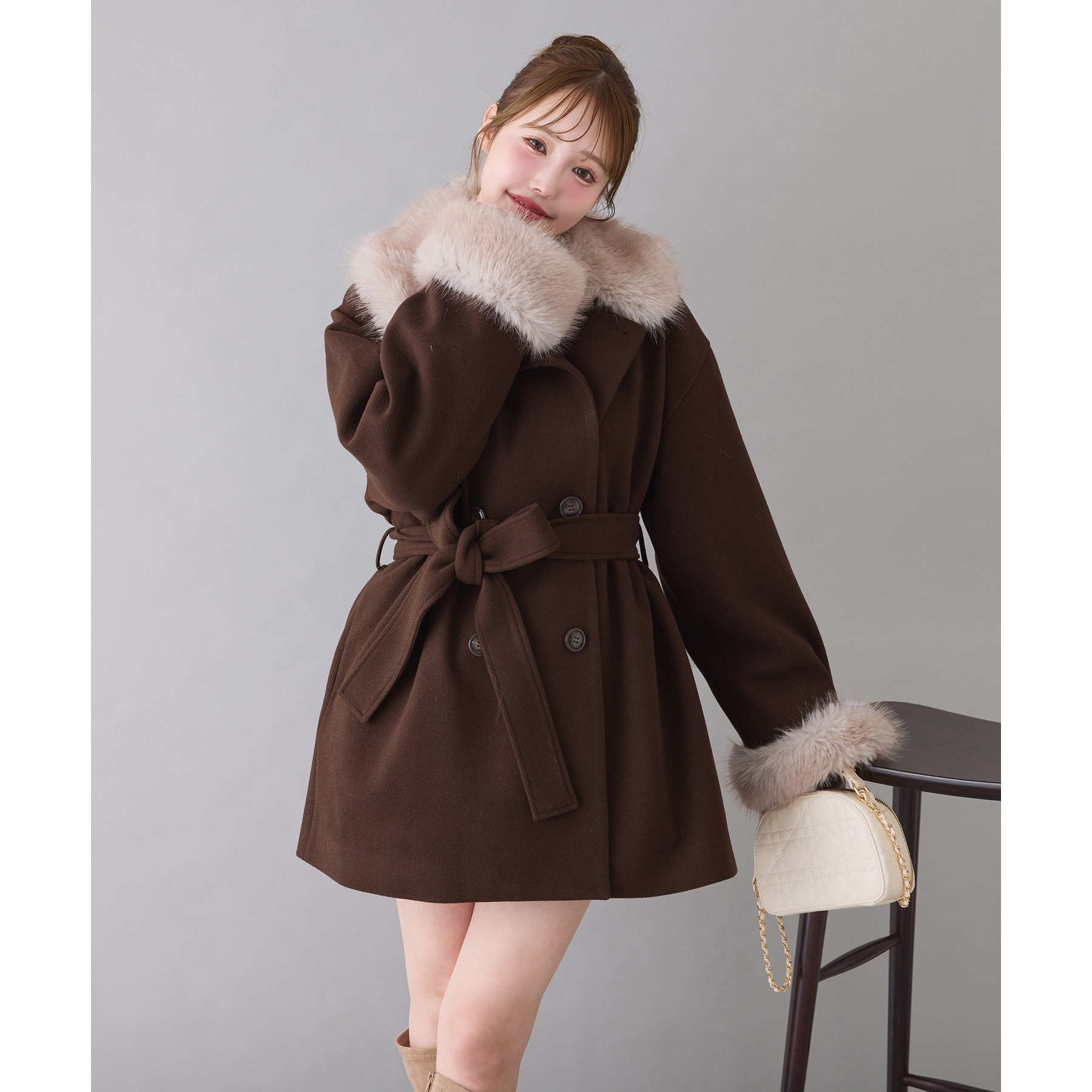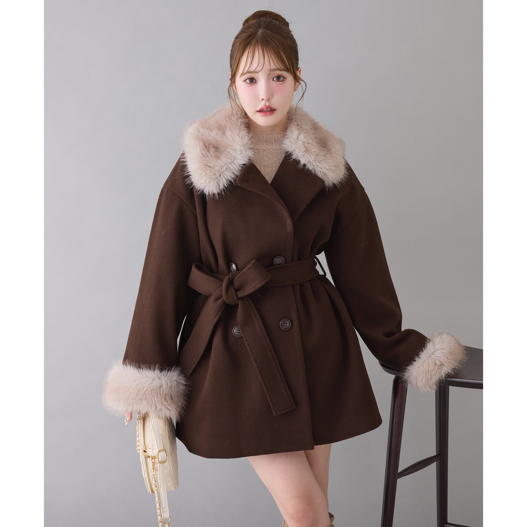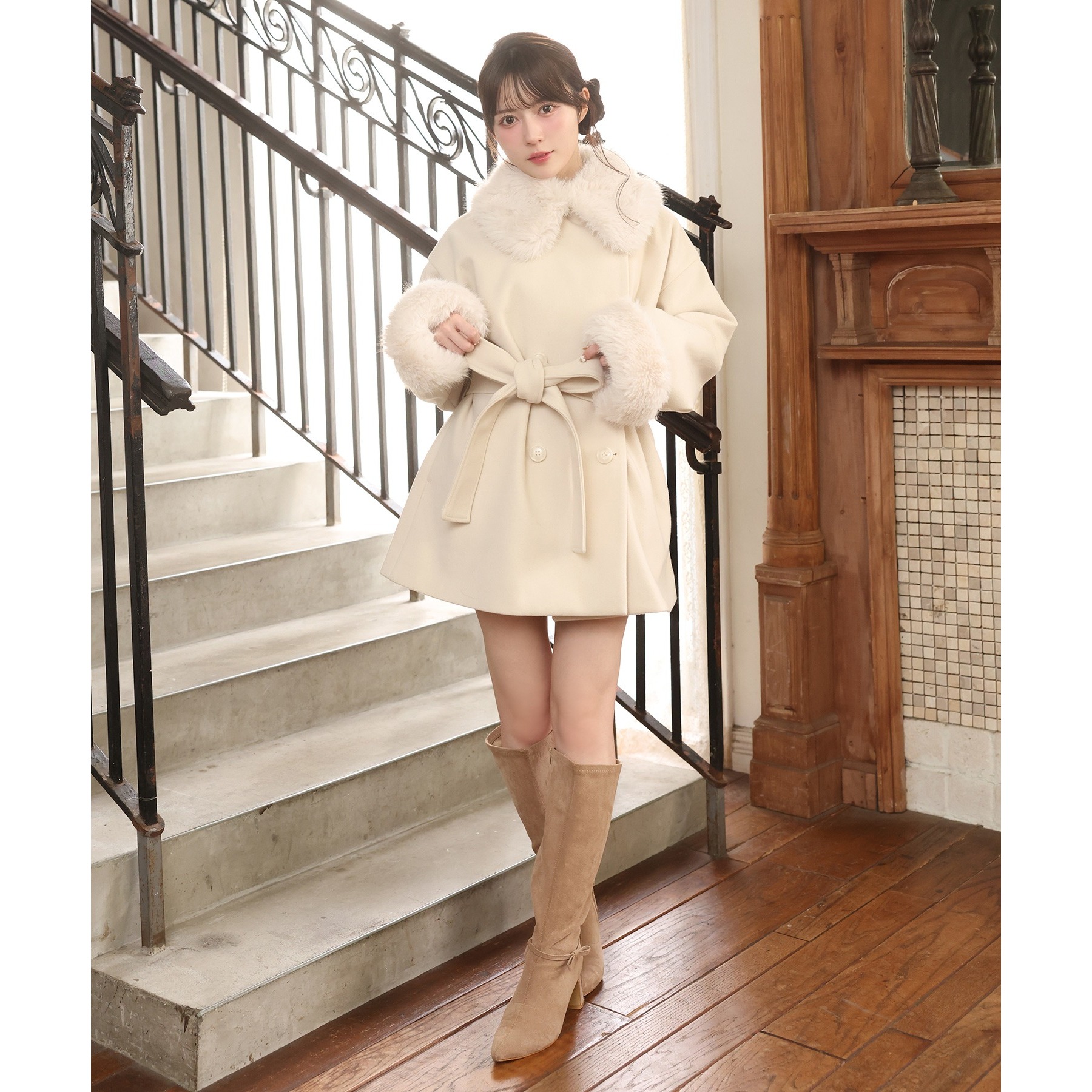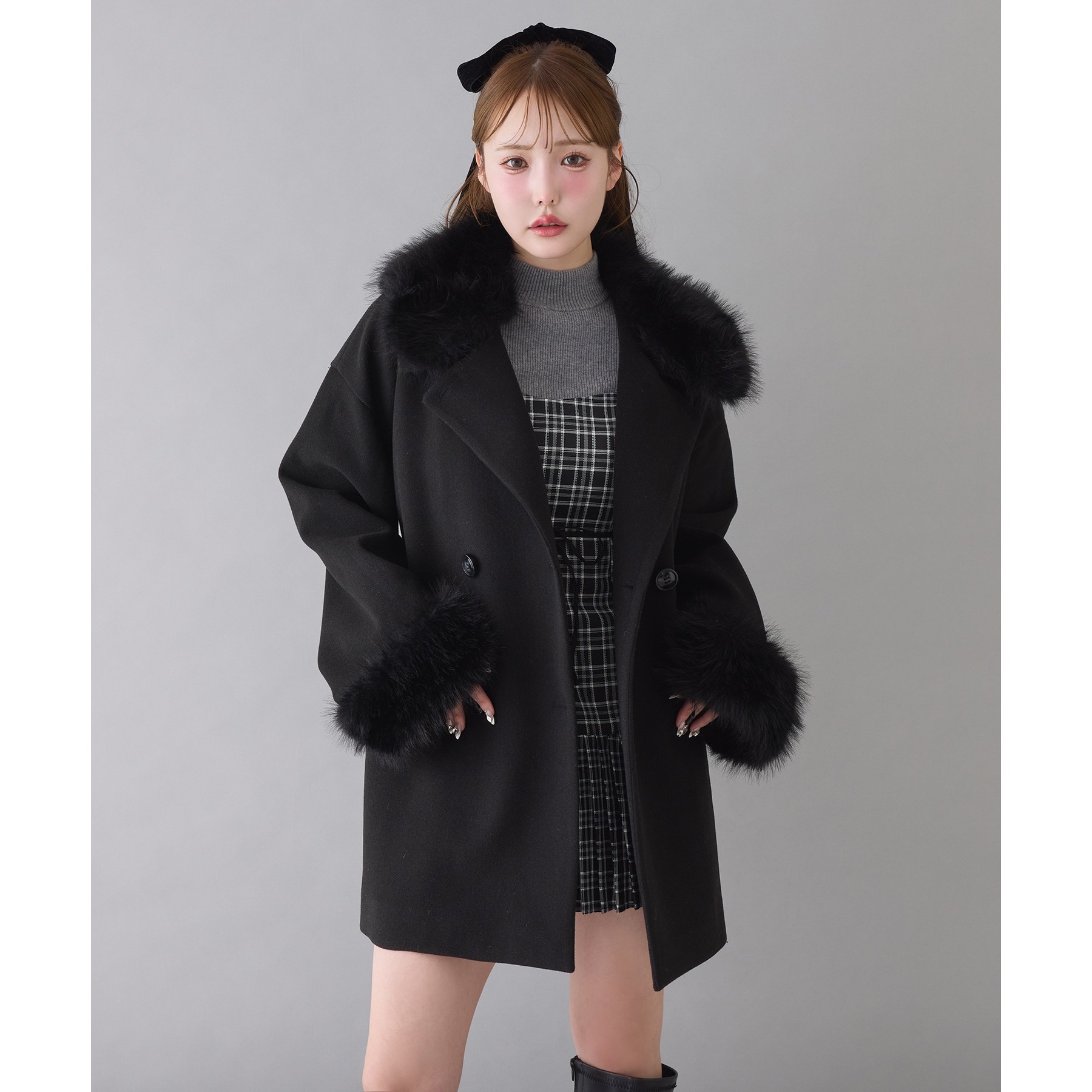 3WAY衿袖ファーミドルコート