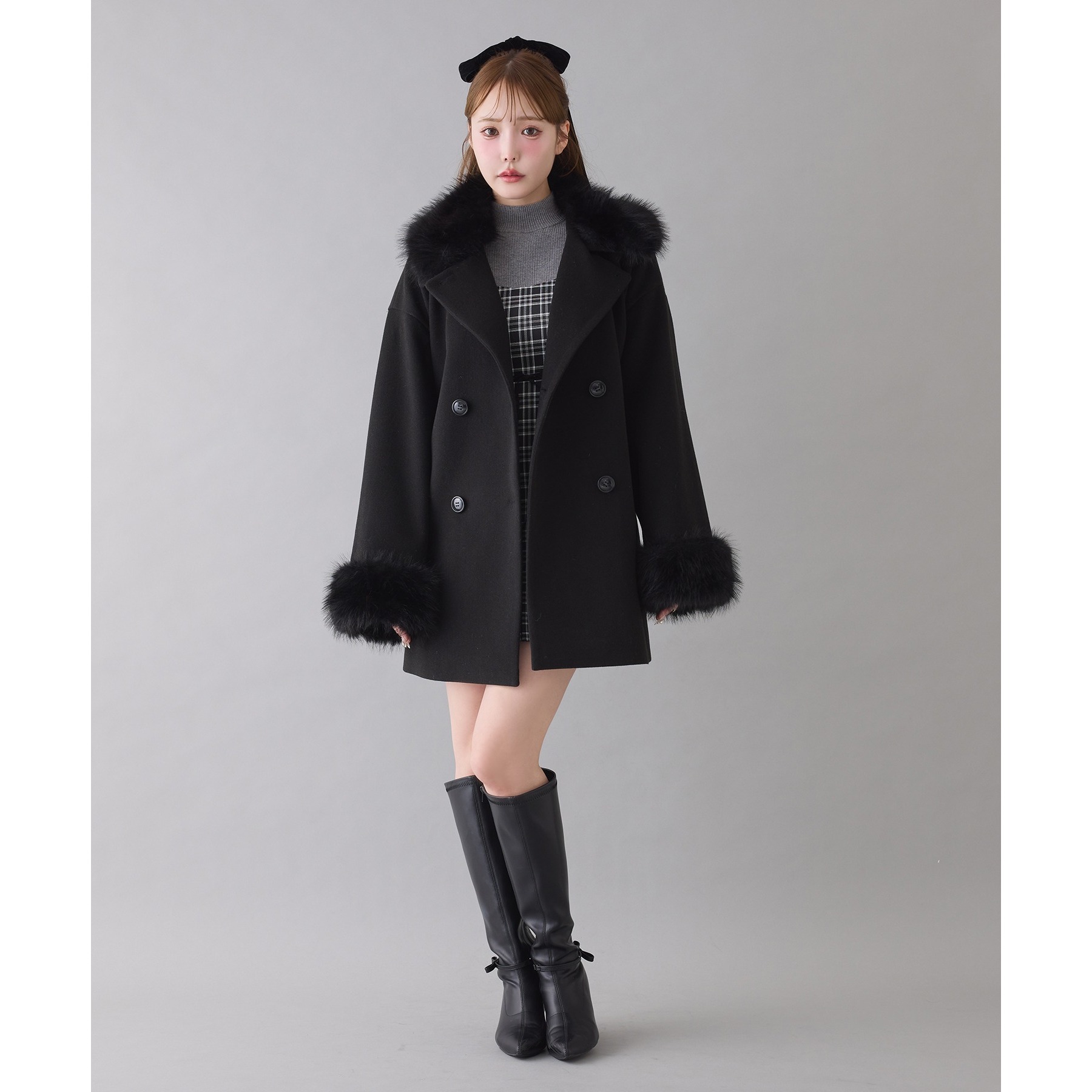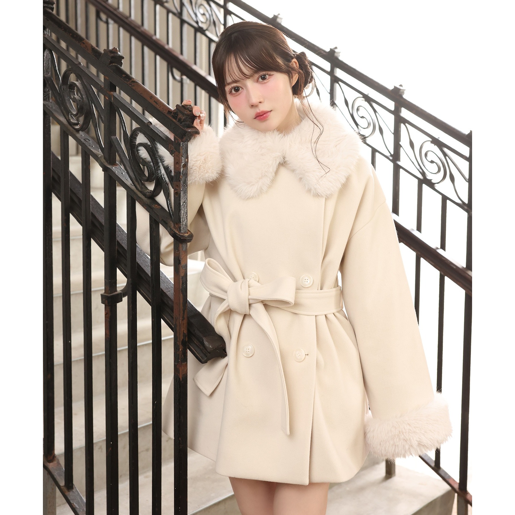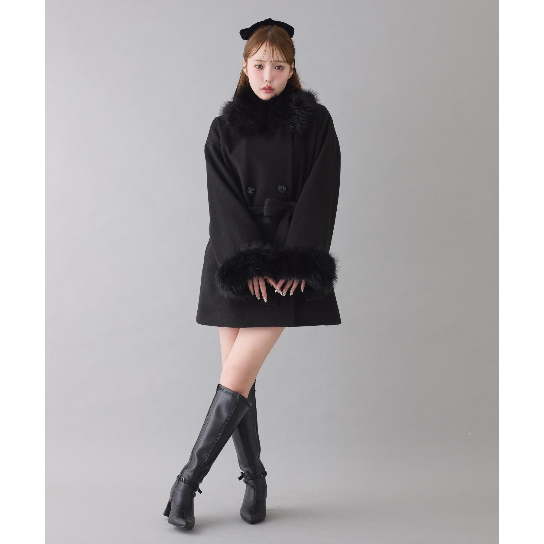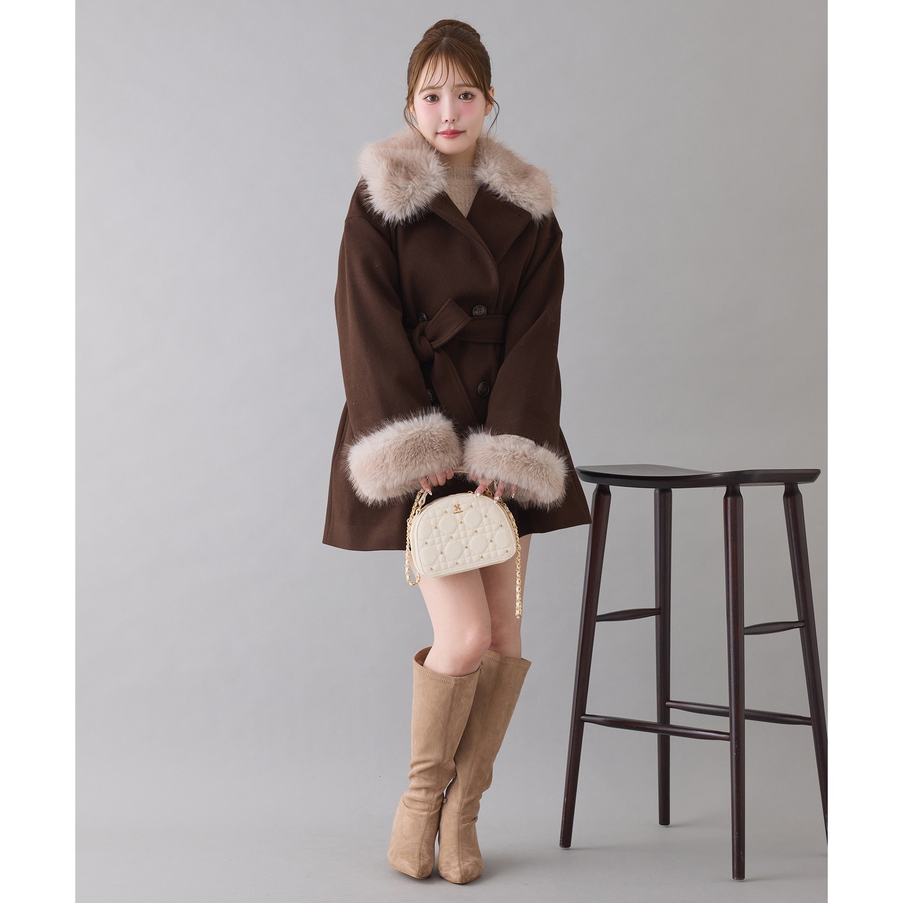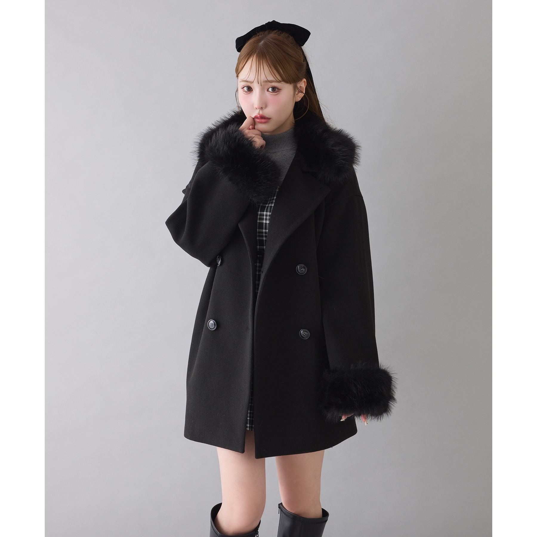 3WAY衿袖ファーミドルコート