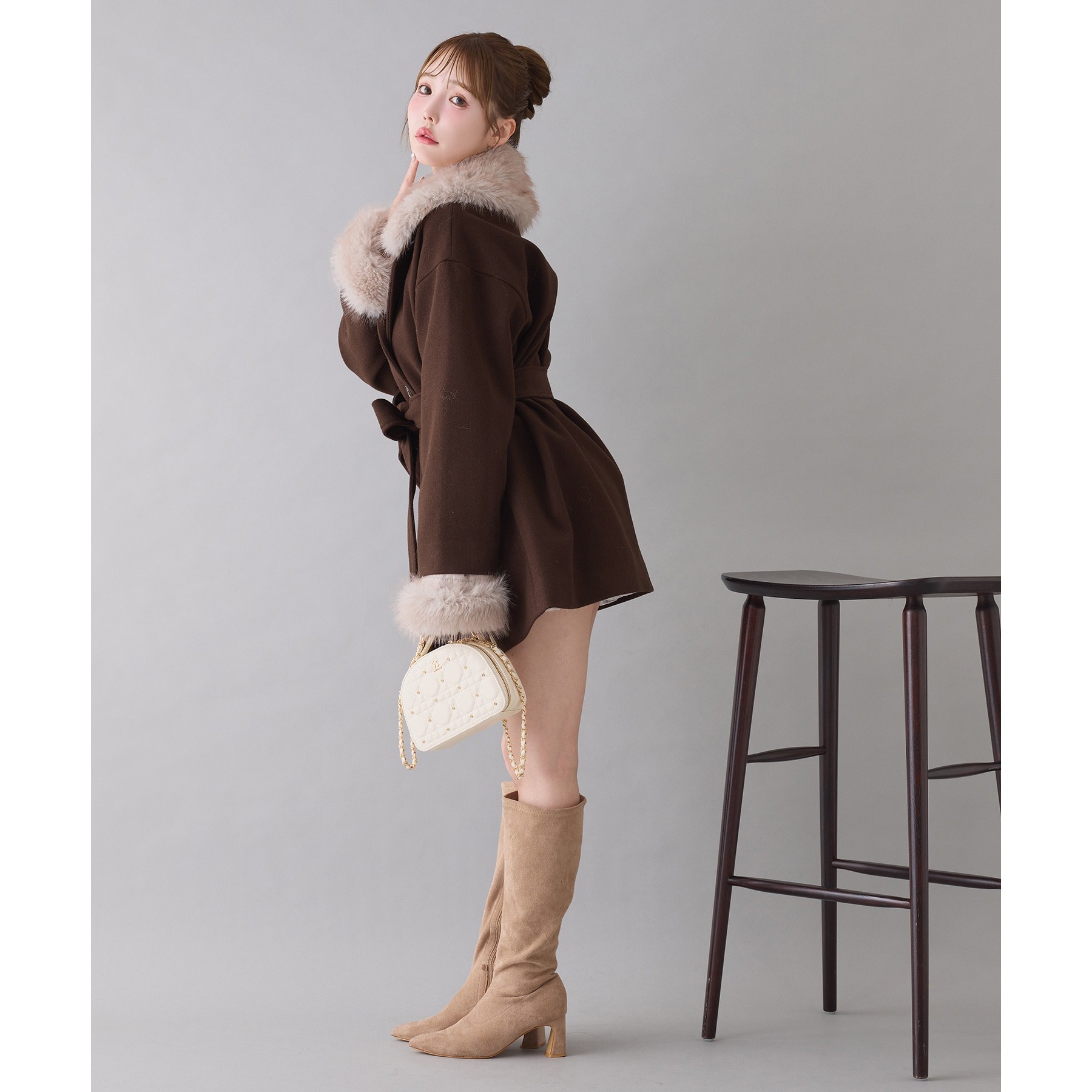 ファーの襟は取り外し可能で、襟はスタンドにすることも出来る2WAYデザインなので、防寒にも最適なアイテムです。