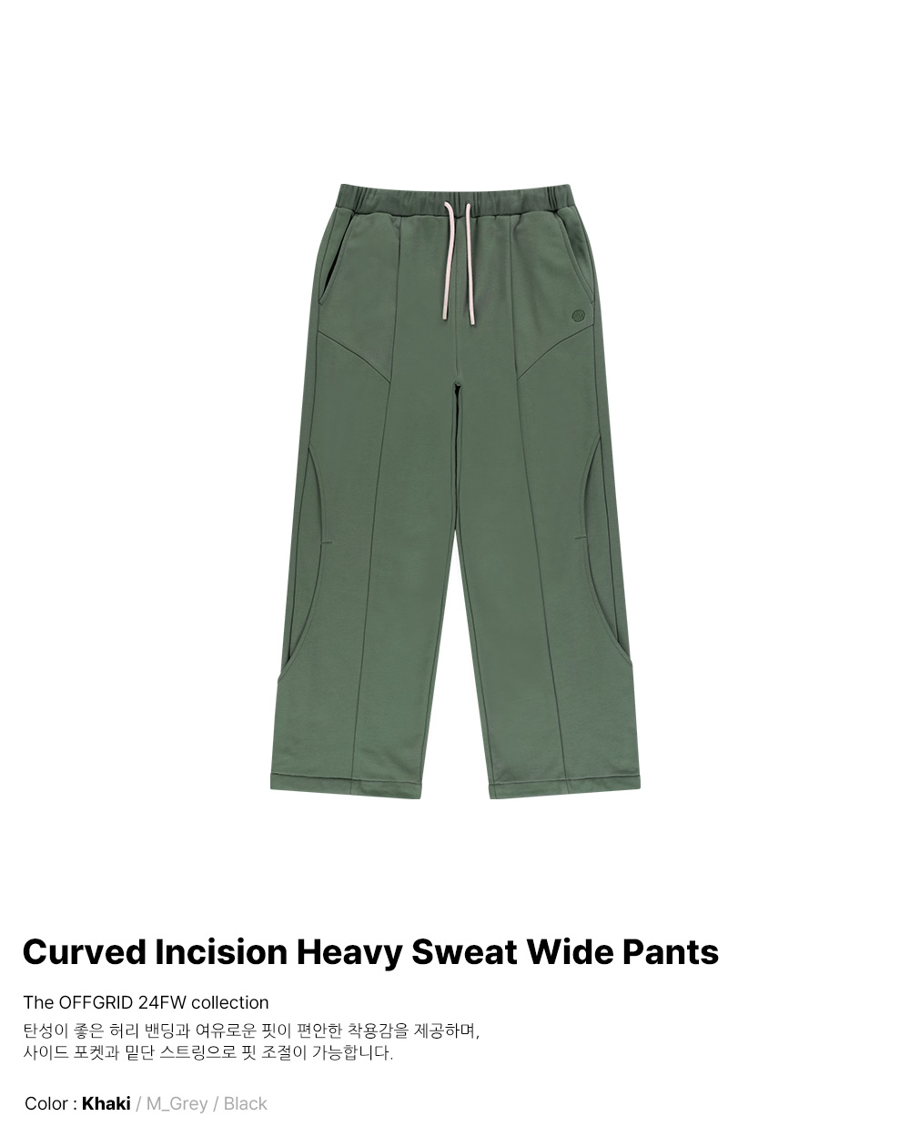 カーブドインシジョンヘビースウェットワイドパンツ - カーキ