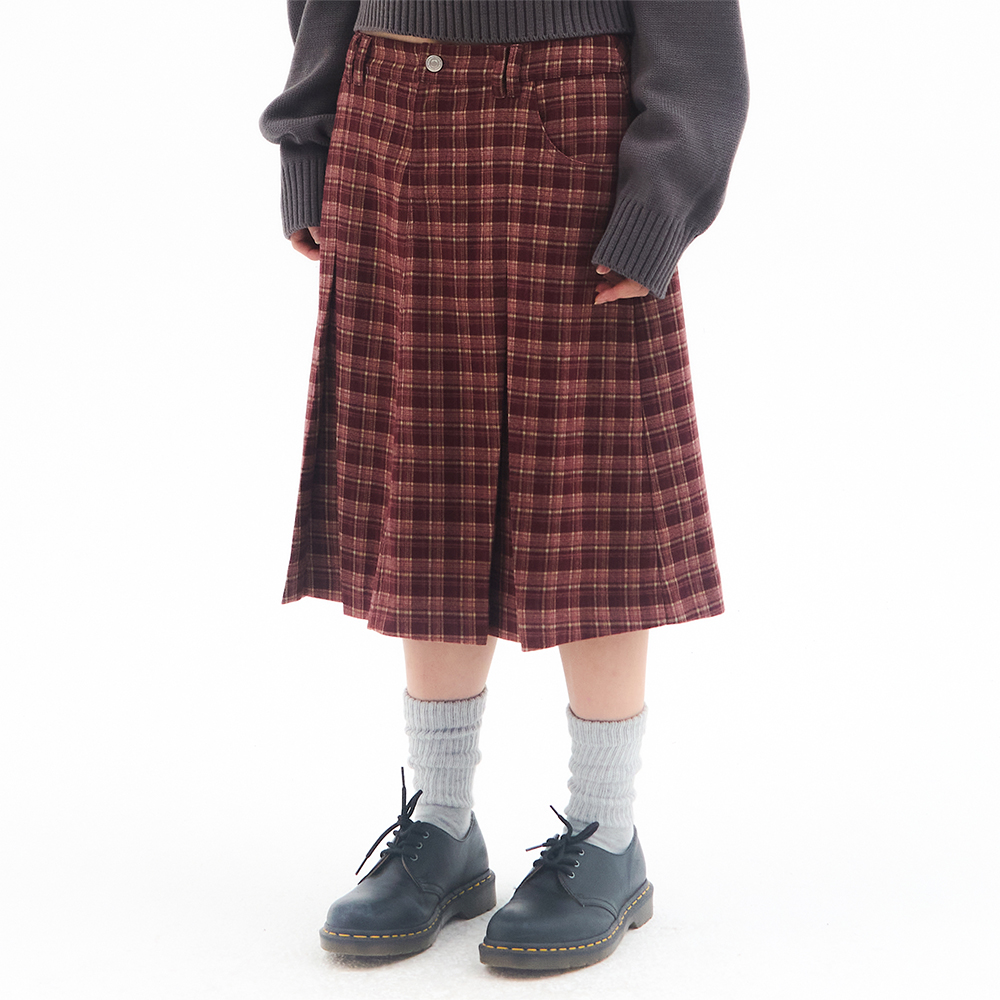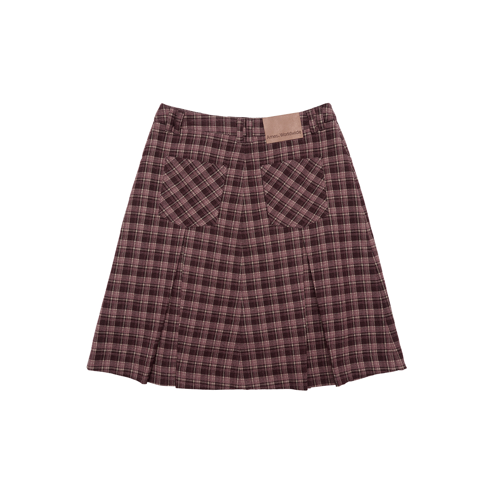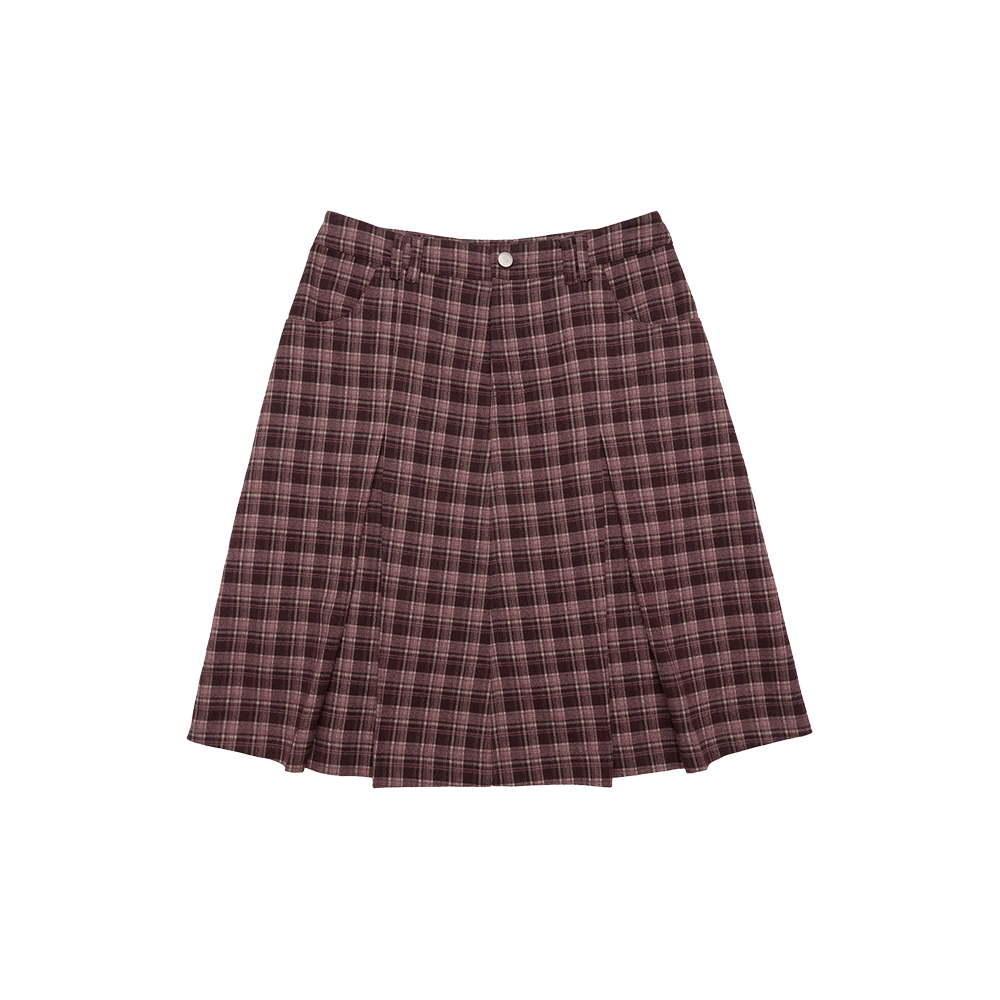 CHECK PLEATS MIDI SKIRT PINK