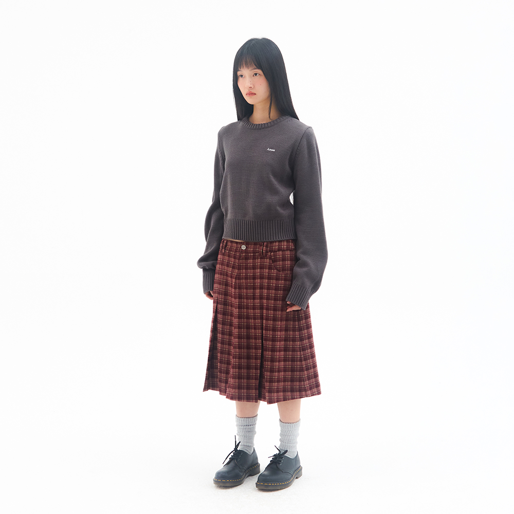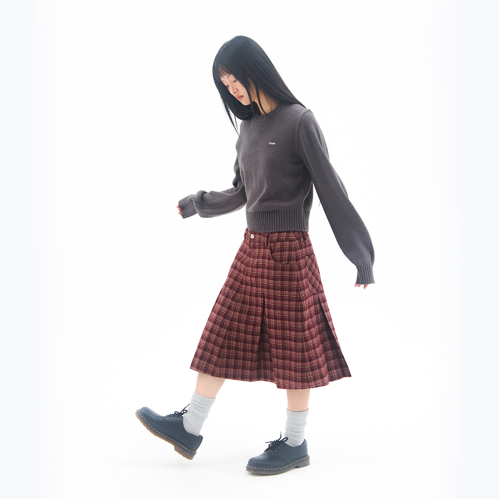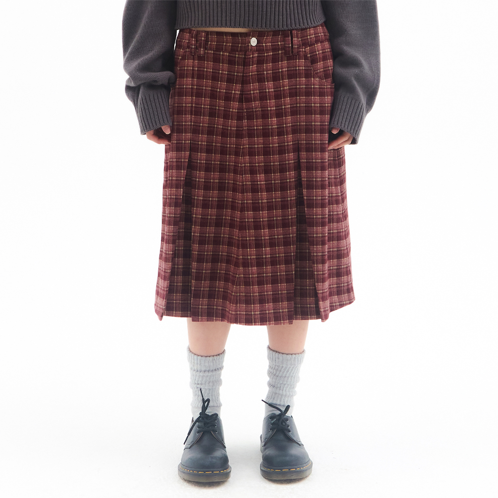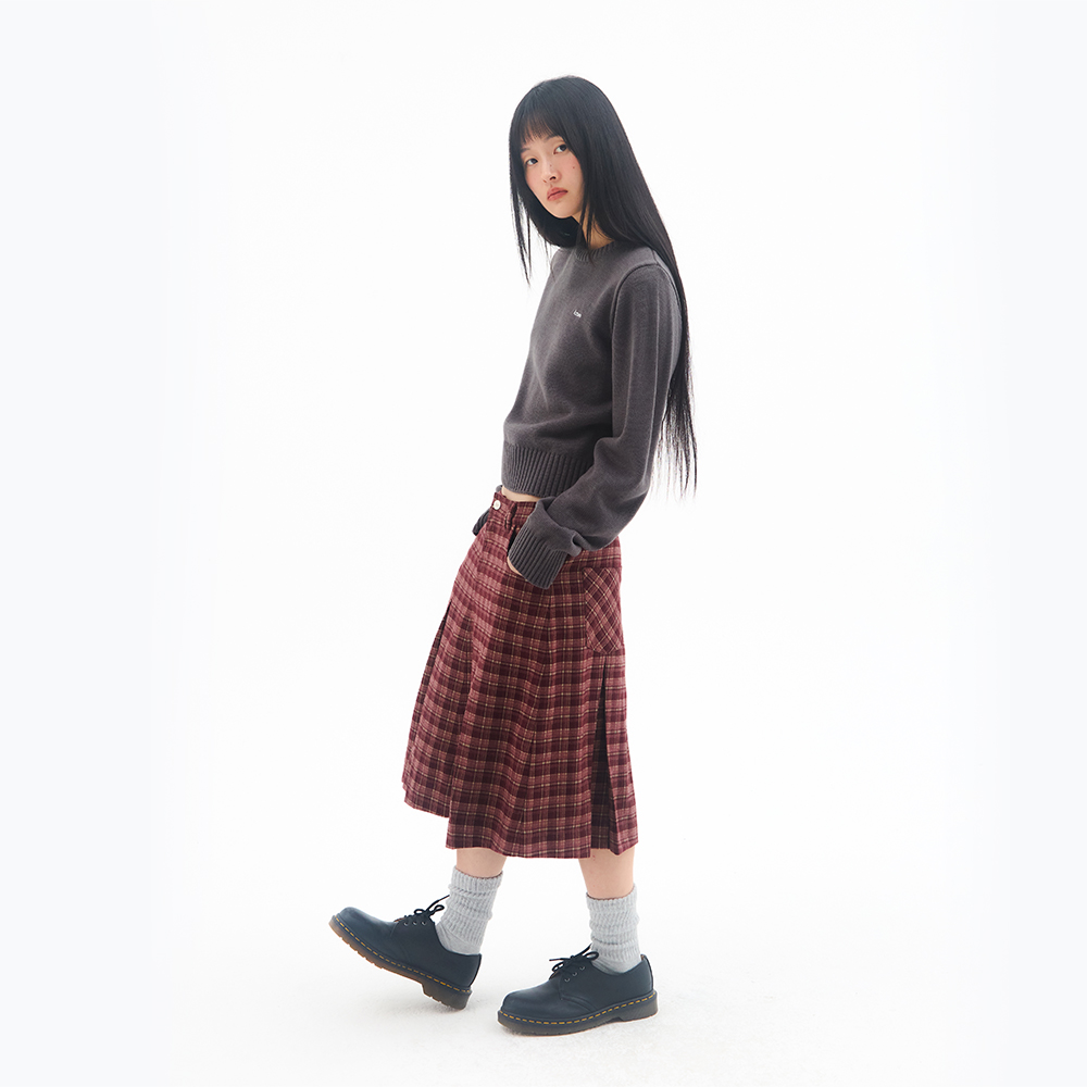 CHECK PLEATS MIDI SKIRT PINK