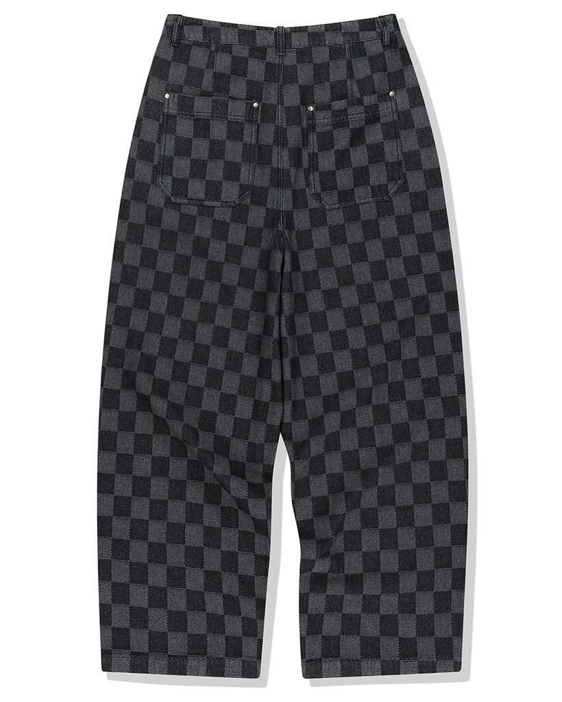 Checkerboard Baggy Fit Denim Pants - Black
