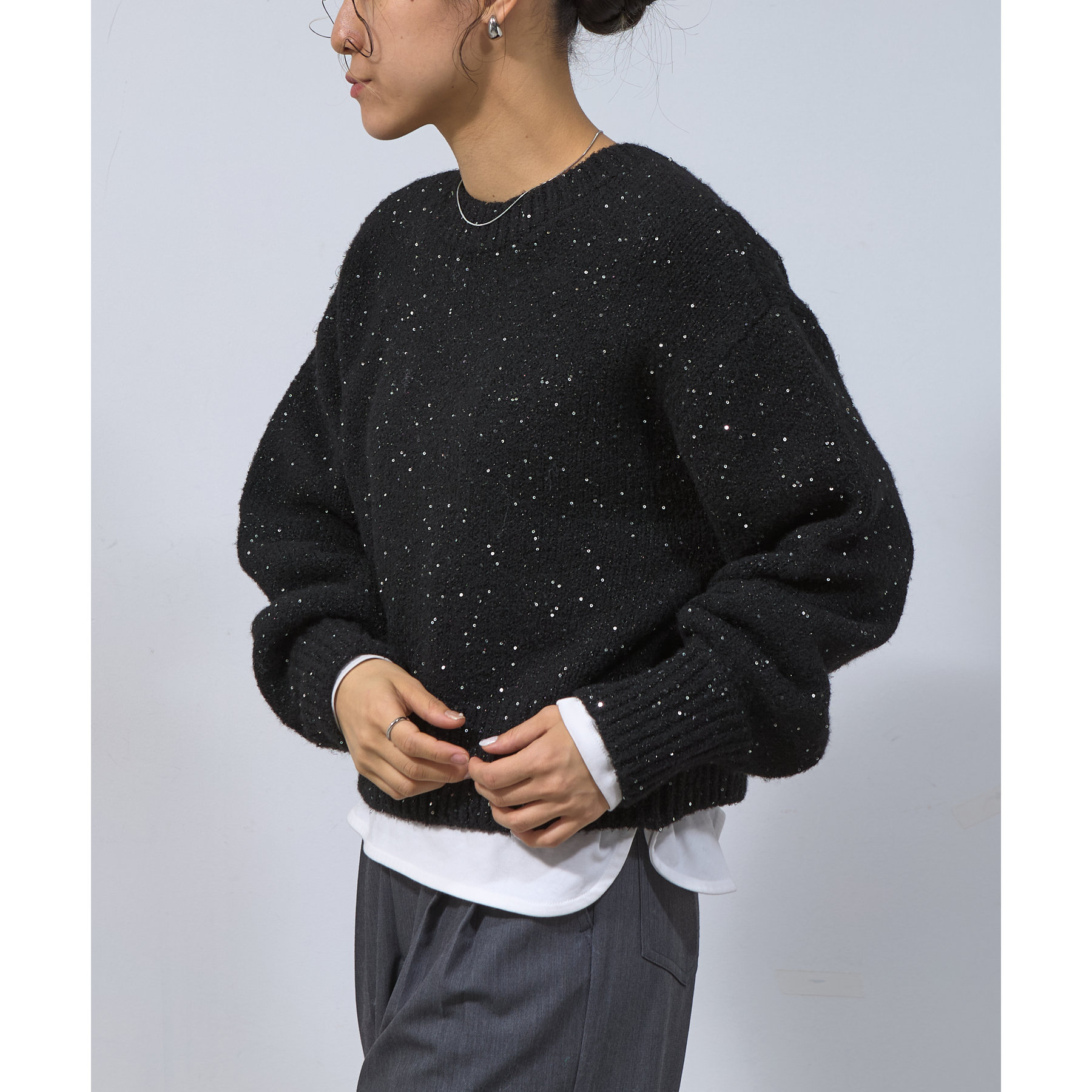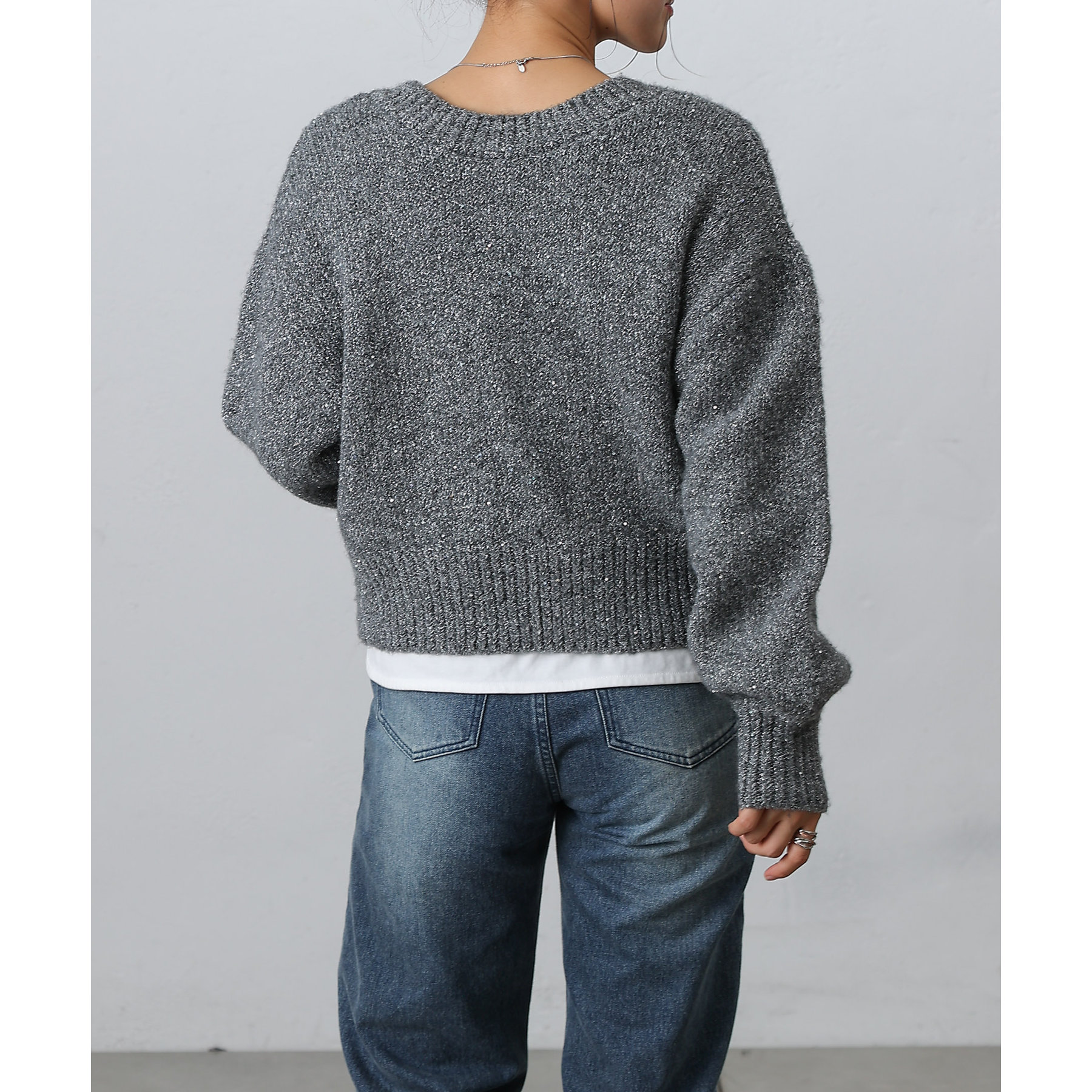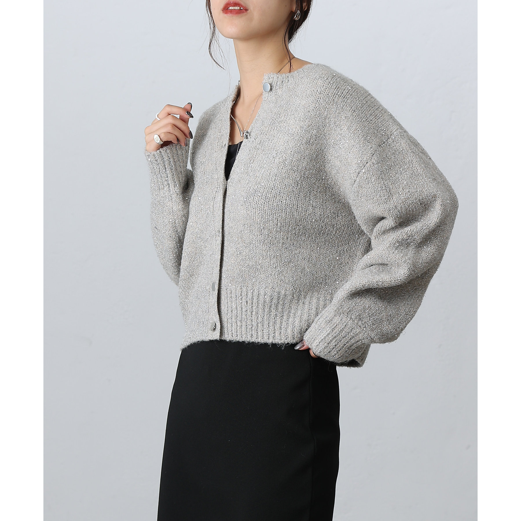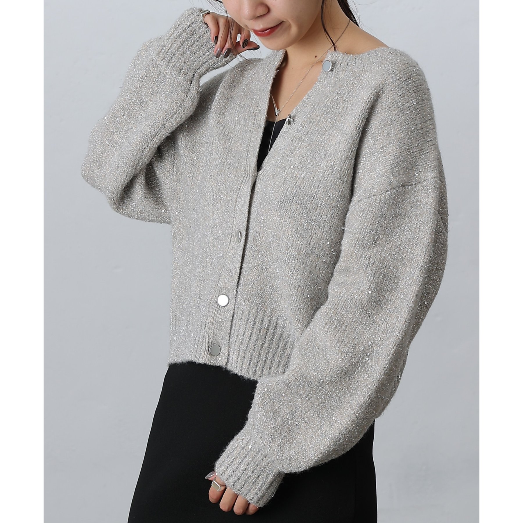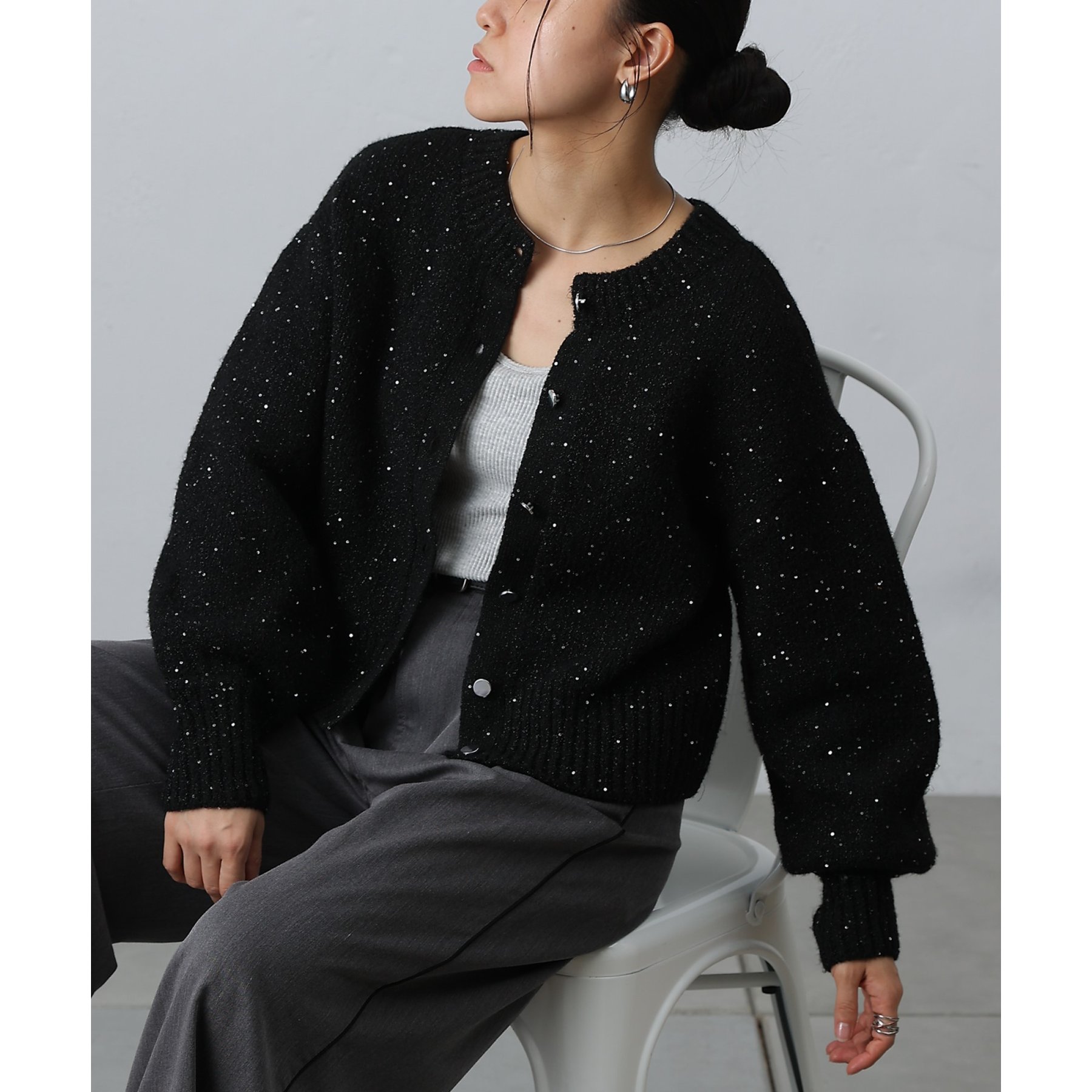 ラメとスパンコールが華やかさを演出してくれるニットカーディガン