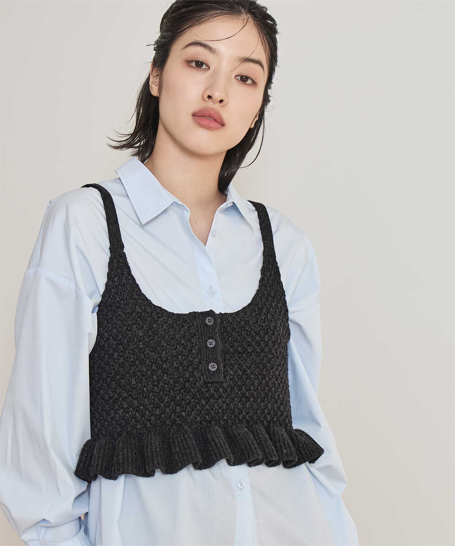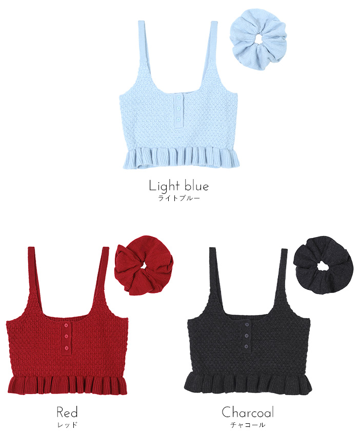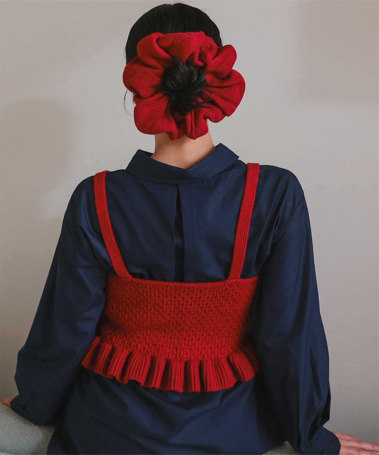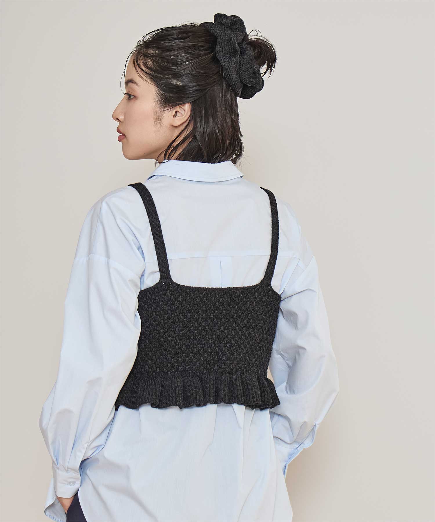 ・ふんわりとしたシュシュがセットになったニットキャミビスチェ