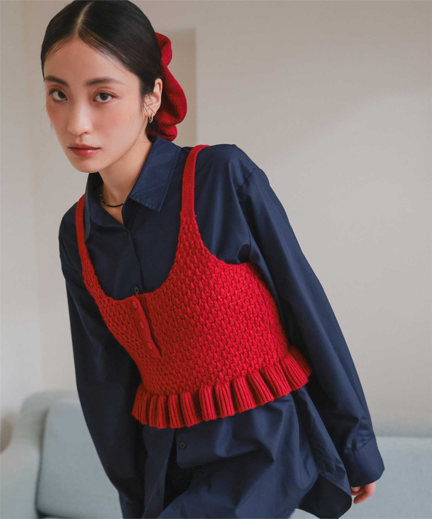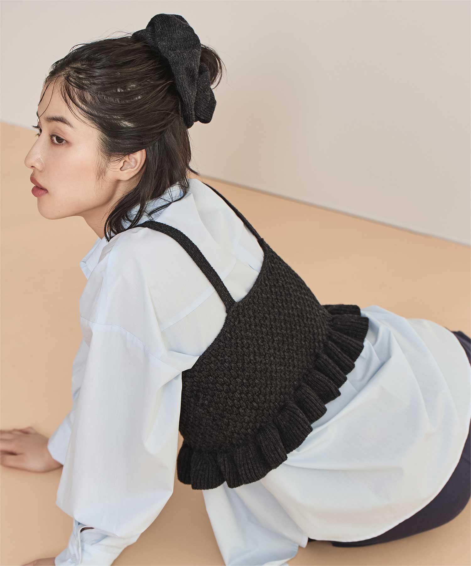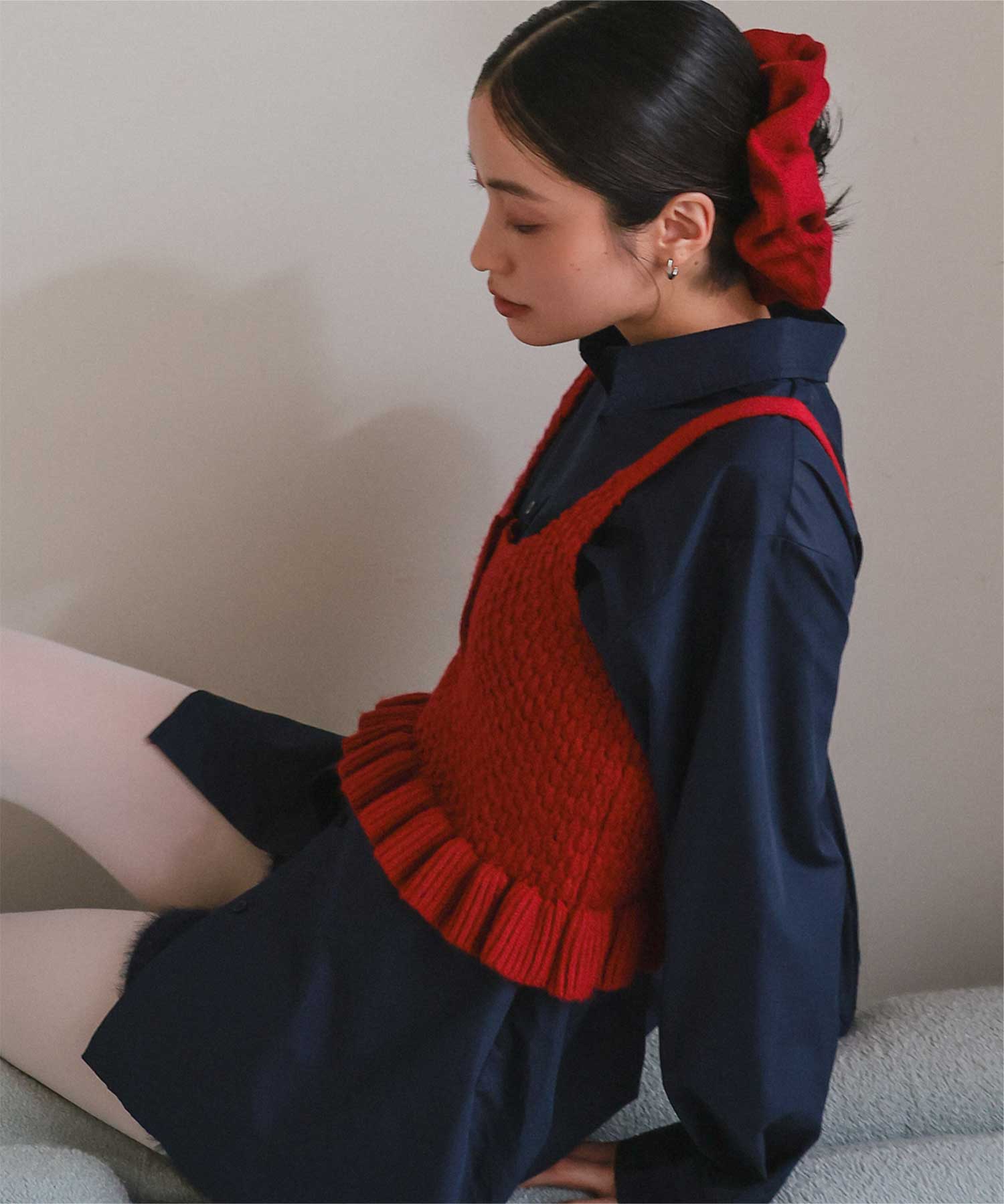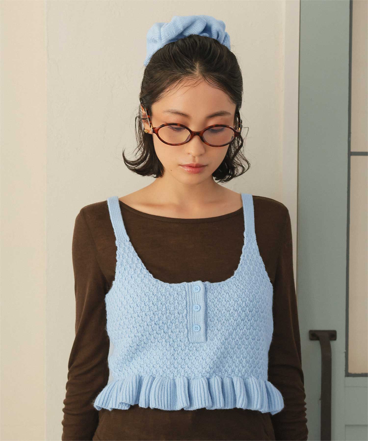 ・ふんわりとしたシュシュがセットになったニットキャミビスチェ