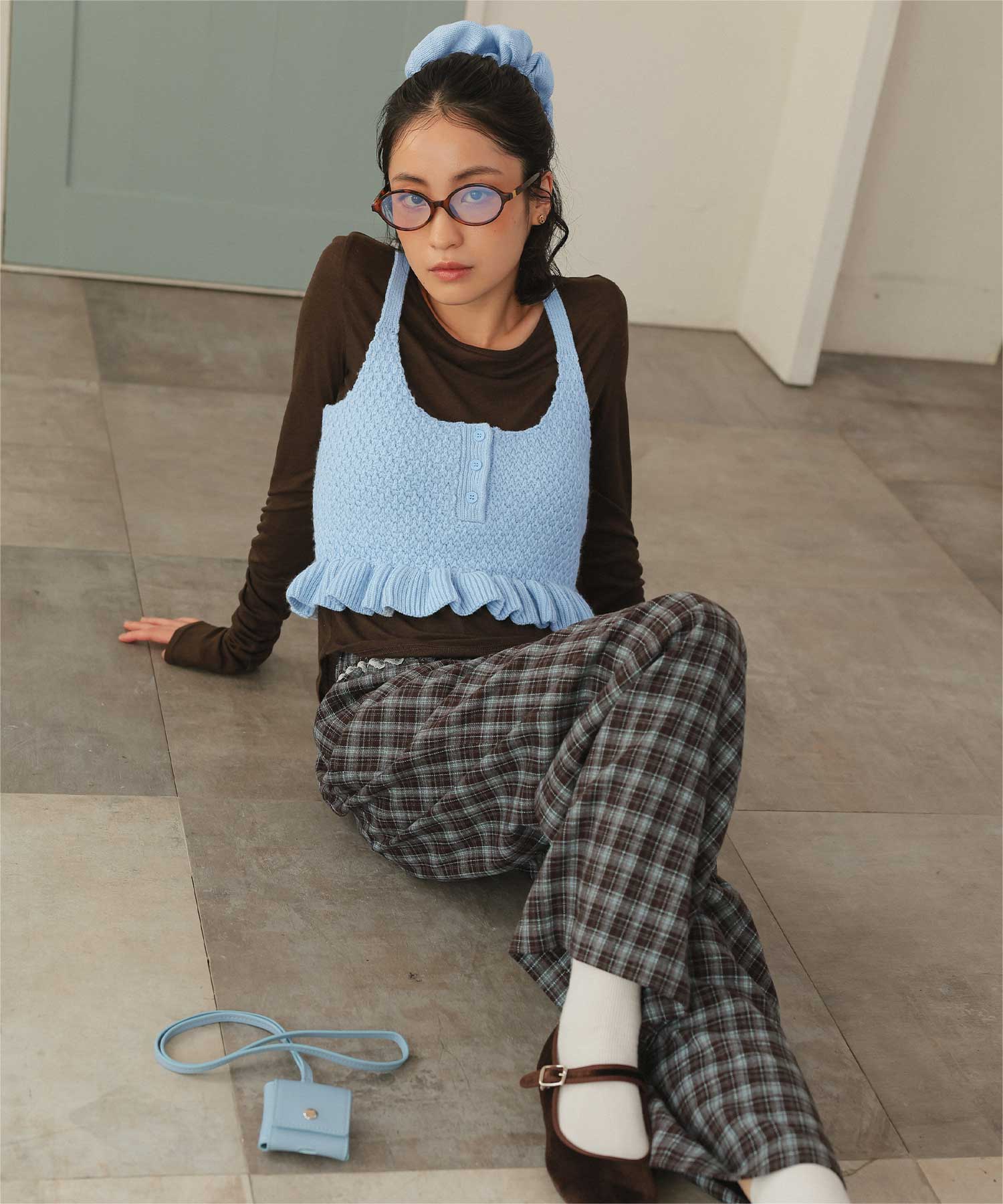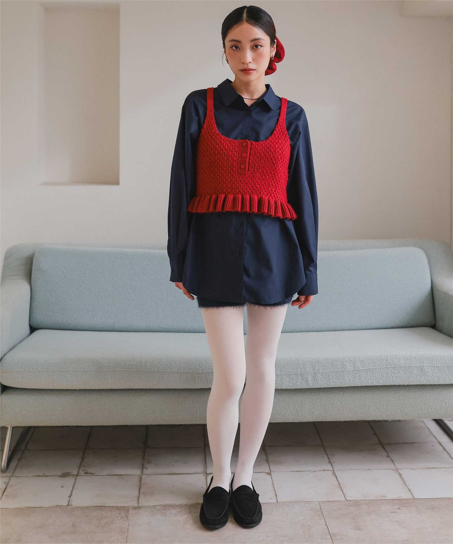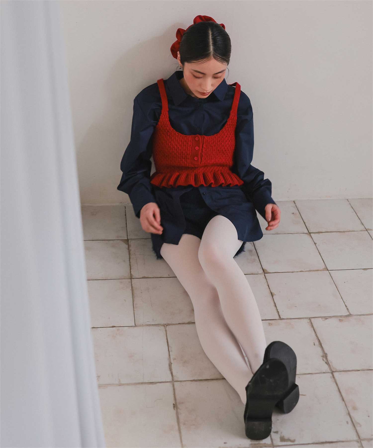 ・ふんわりとしたシュシュがセットになったニットキャミビスチェ
