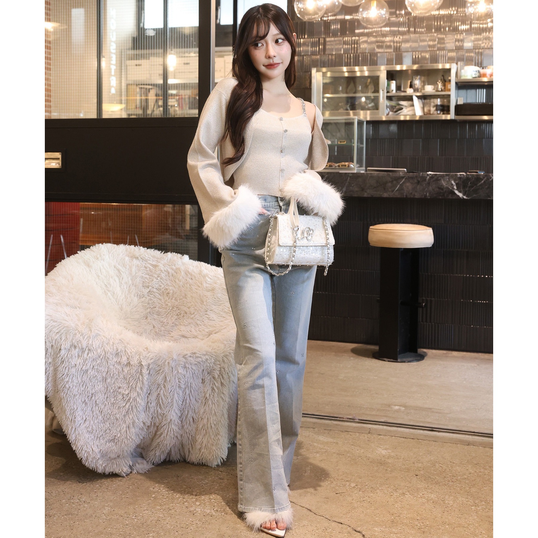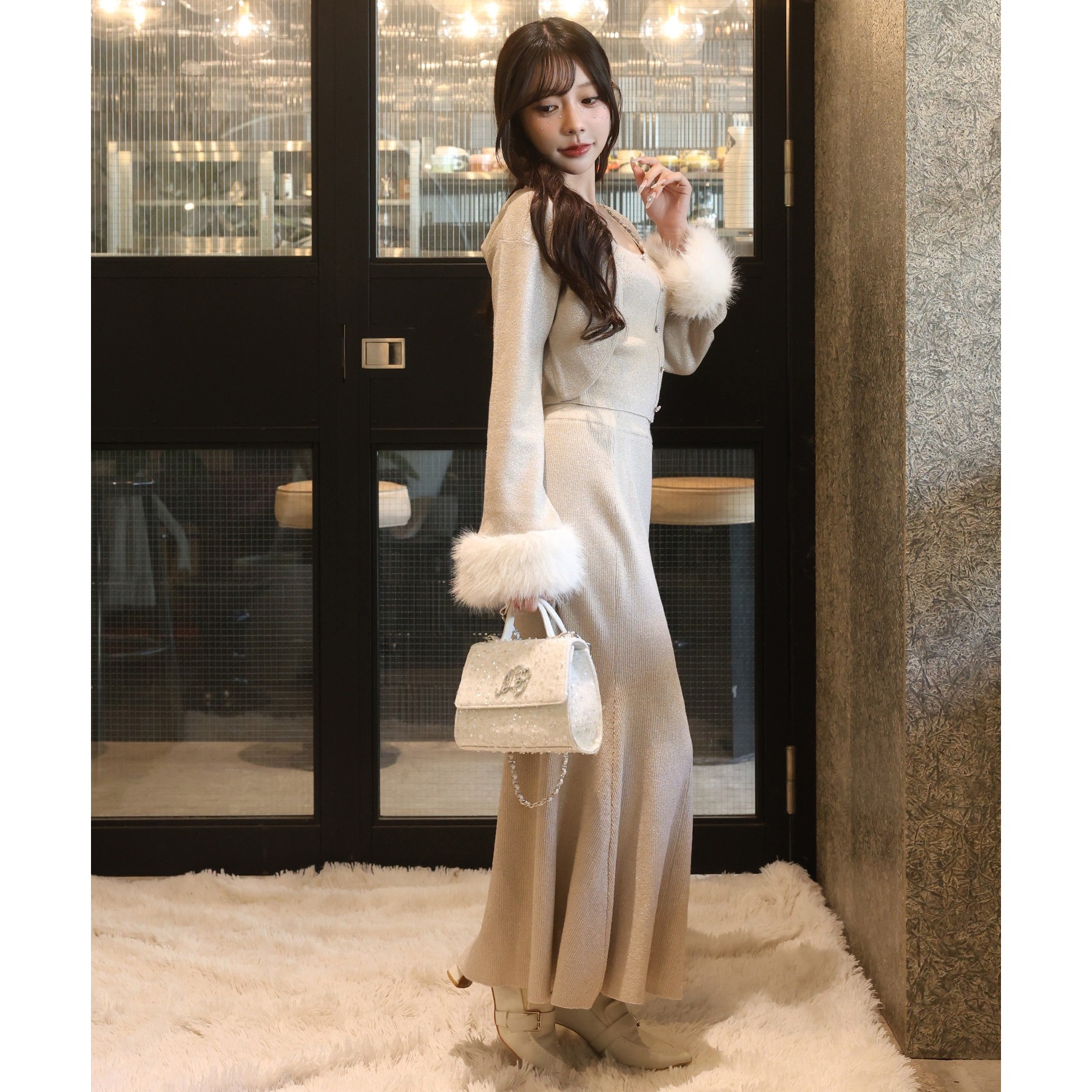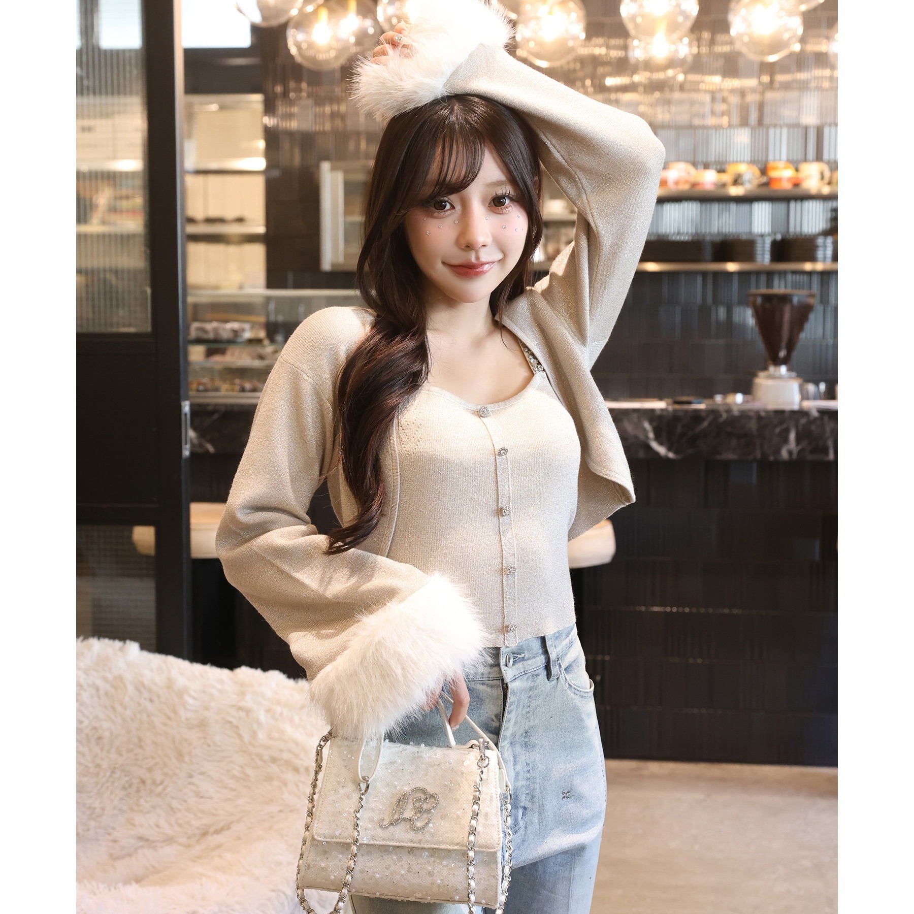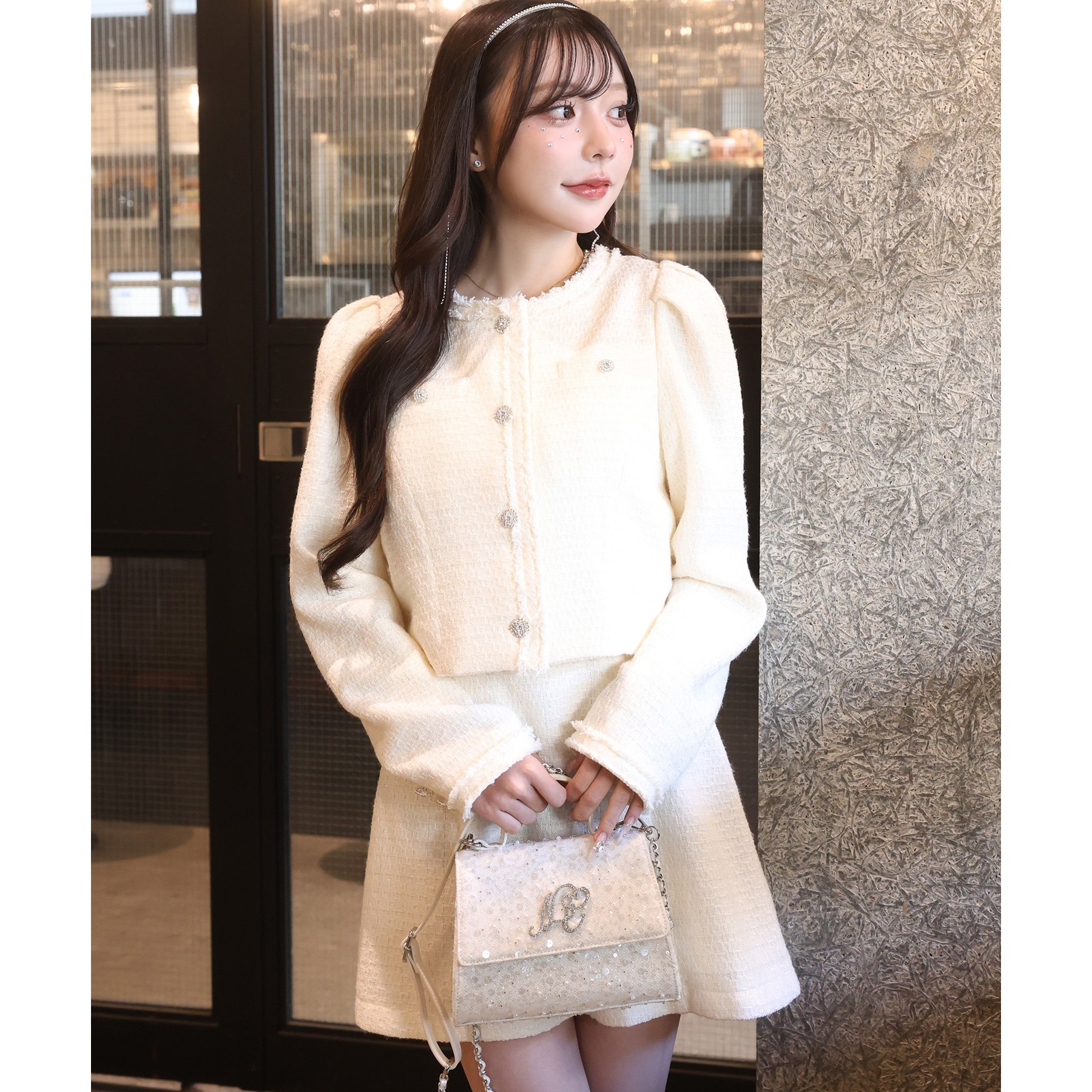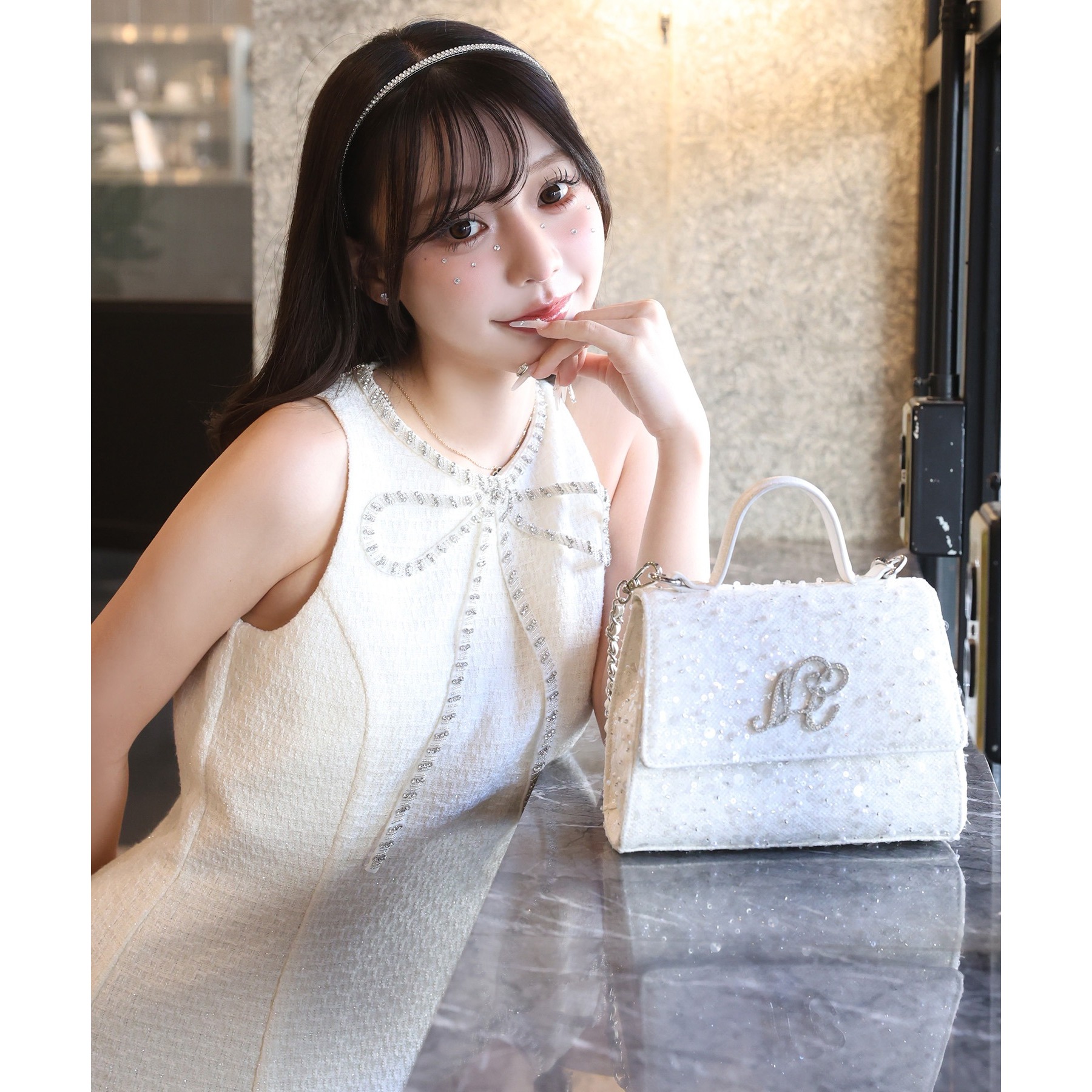 キラキラとした素材を使用し、持つだけでコーデのポイントになるショルダーバッグ。
