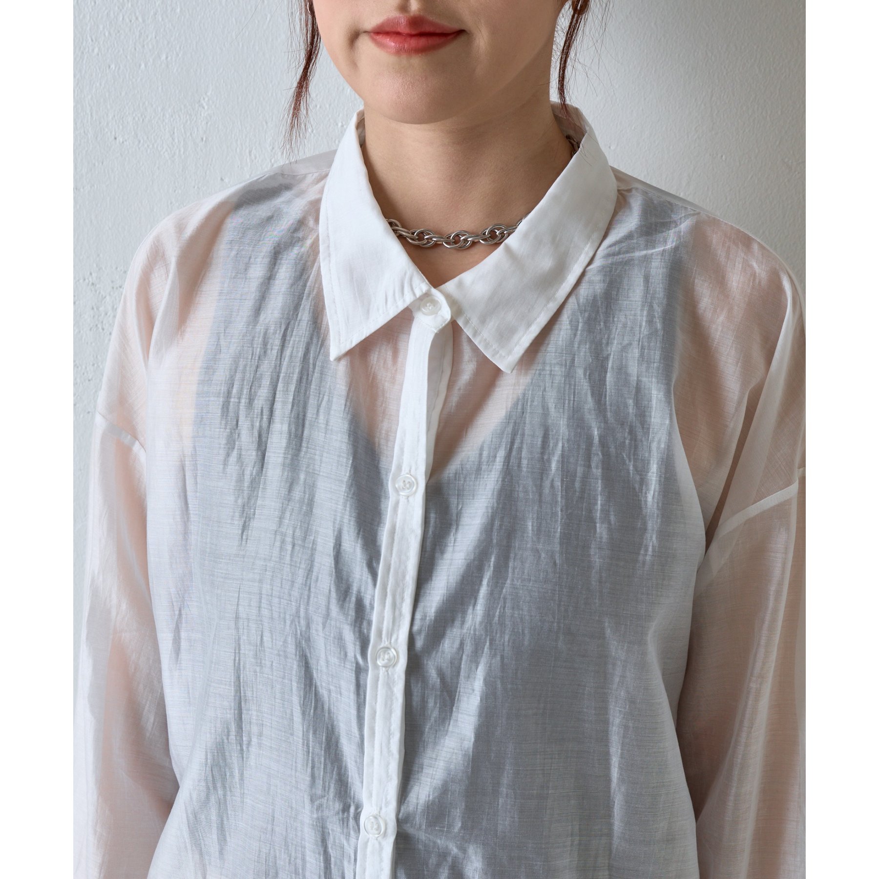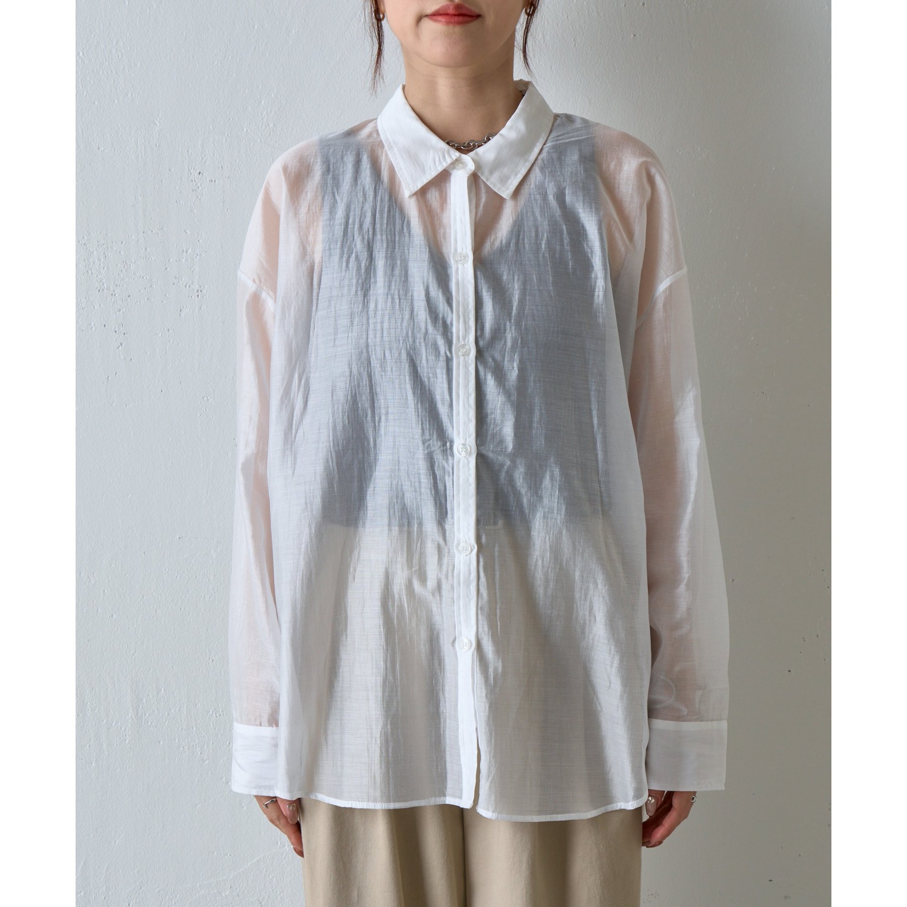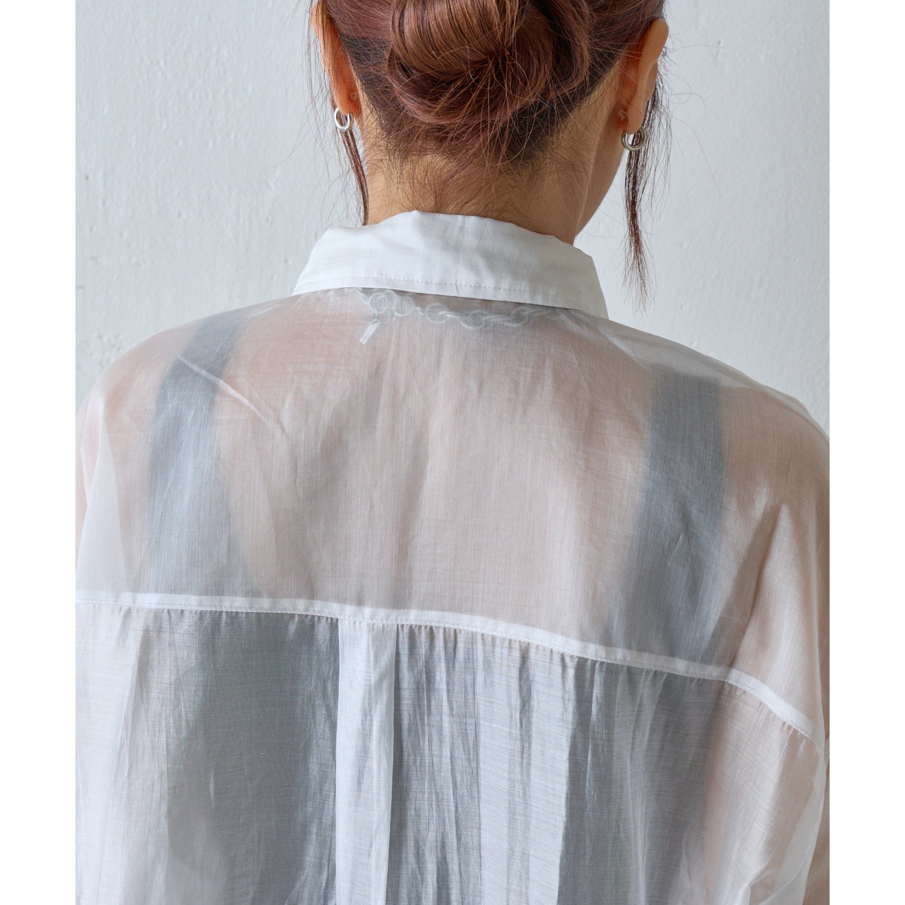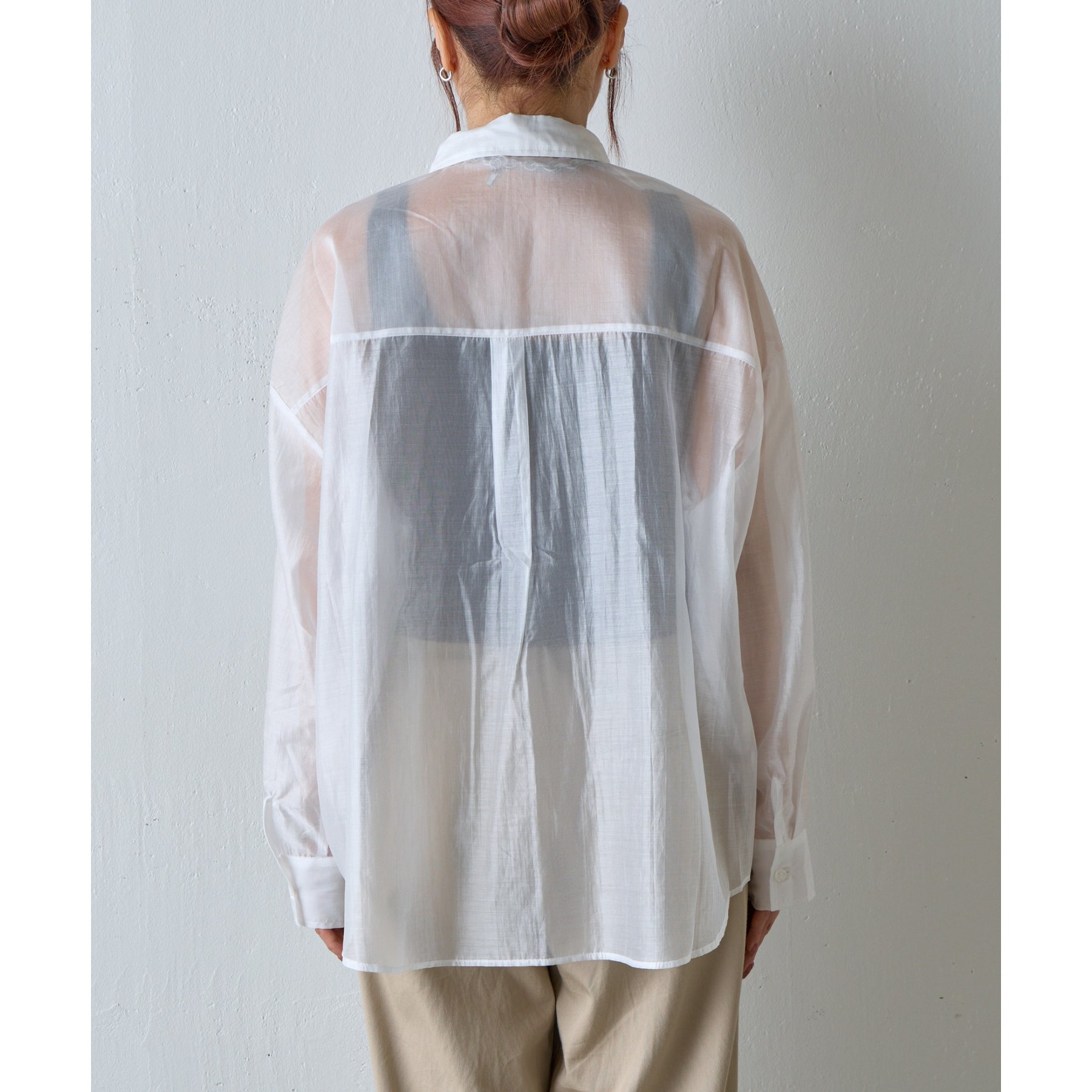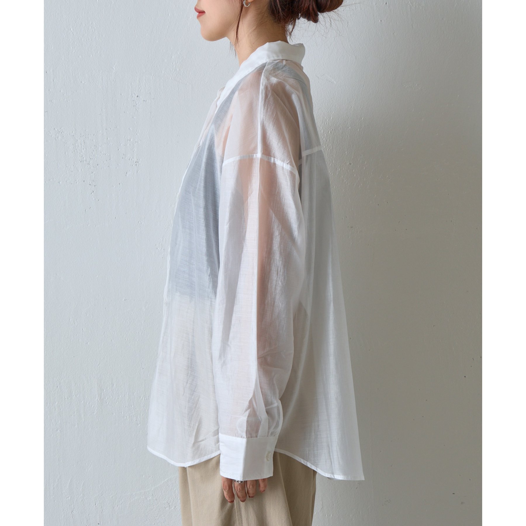 軽やかな透け感が魅力のシアーシャツ。