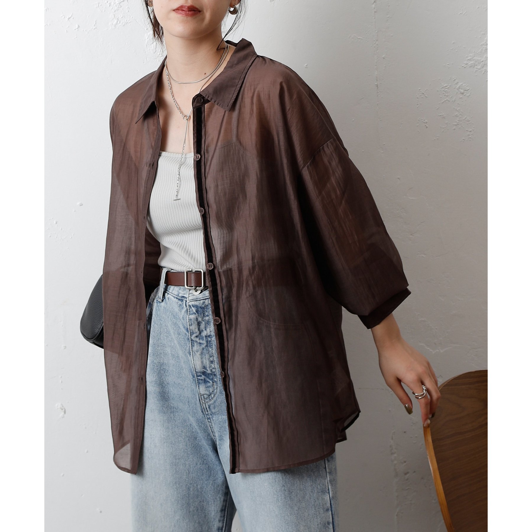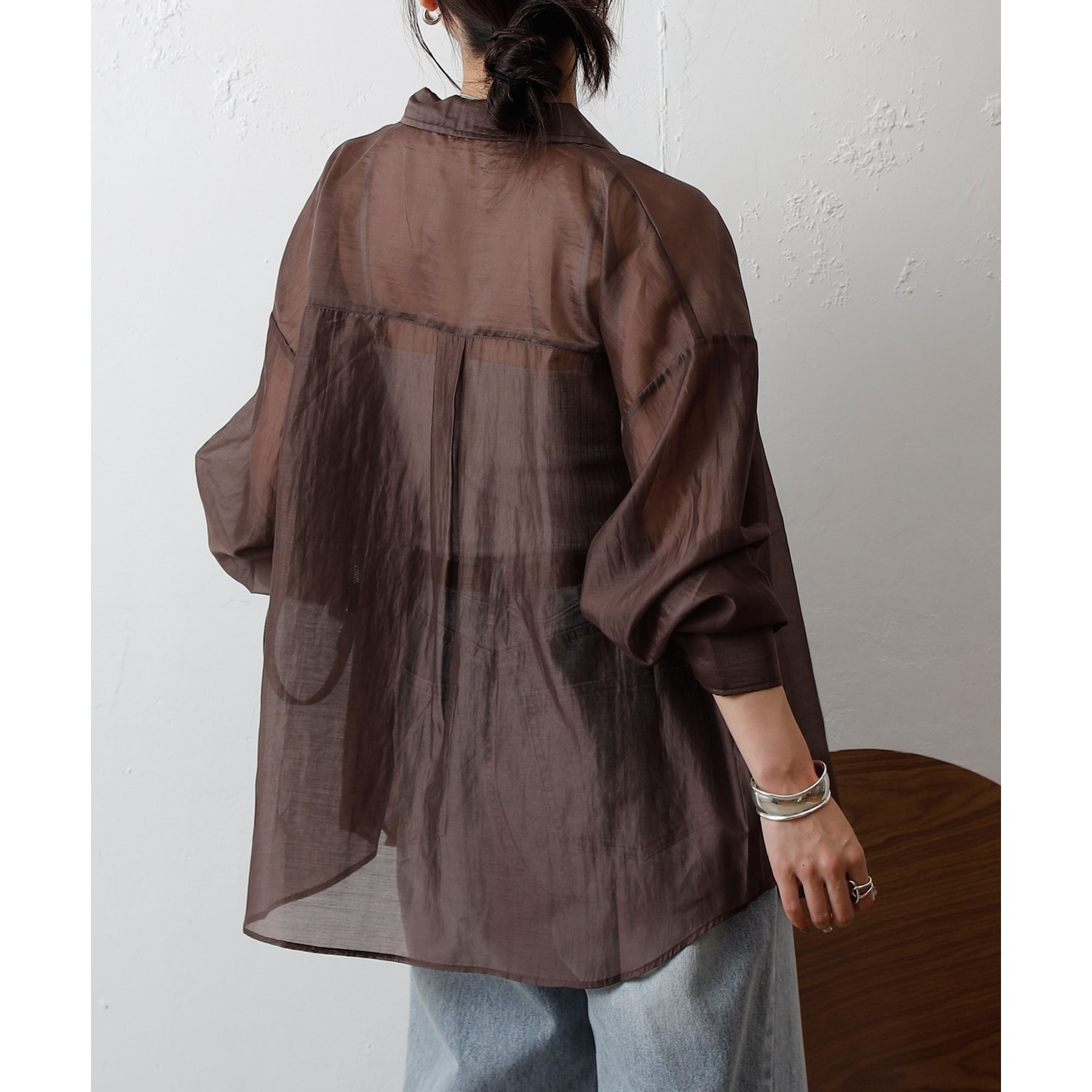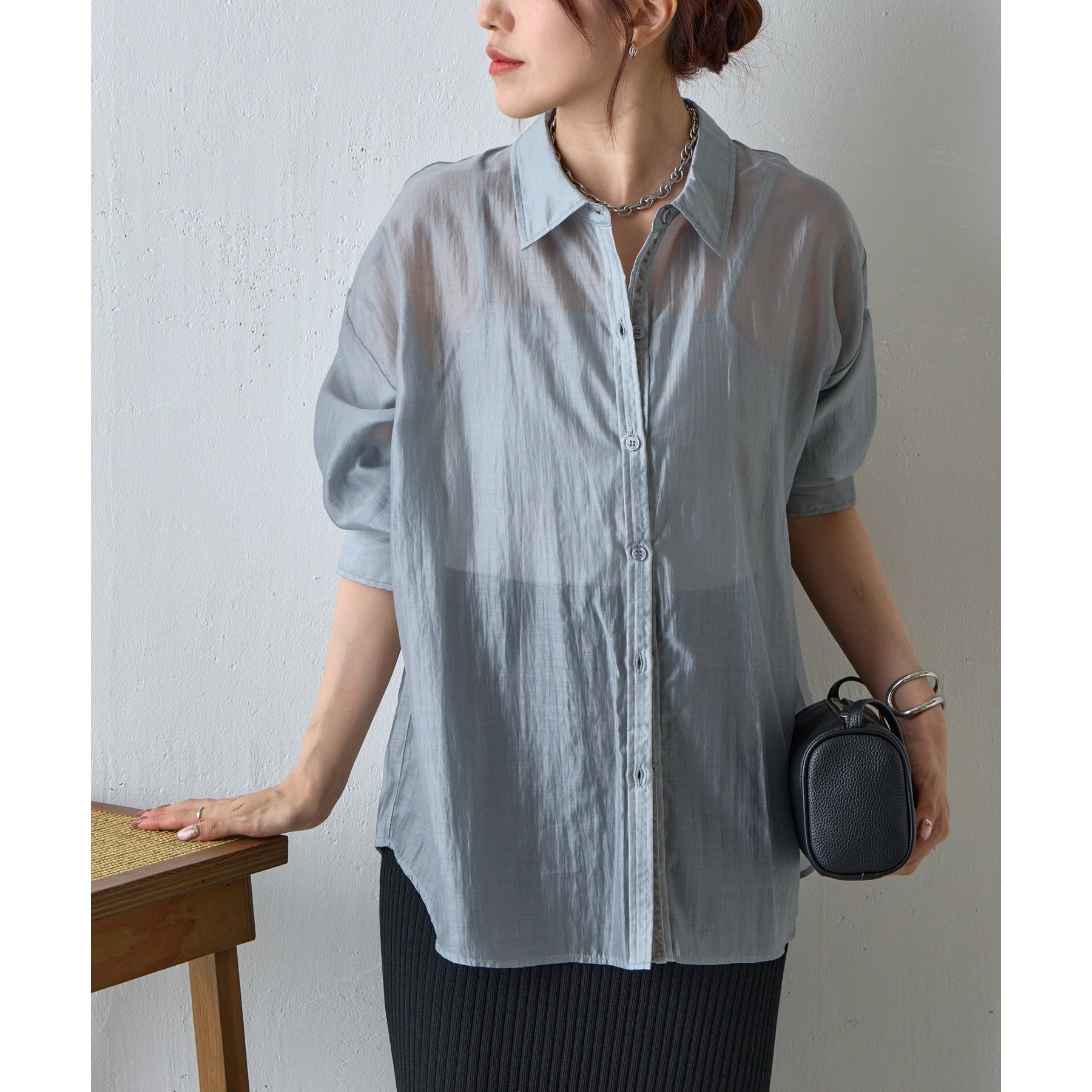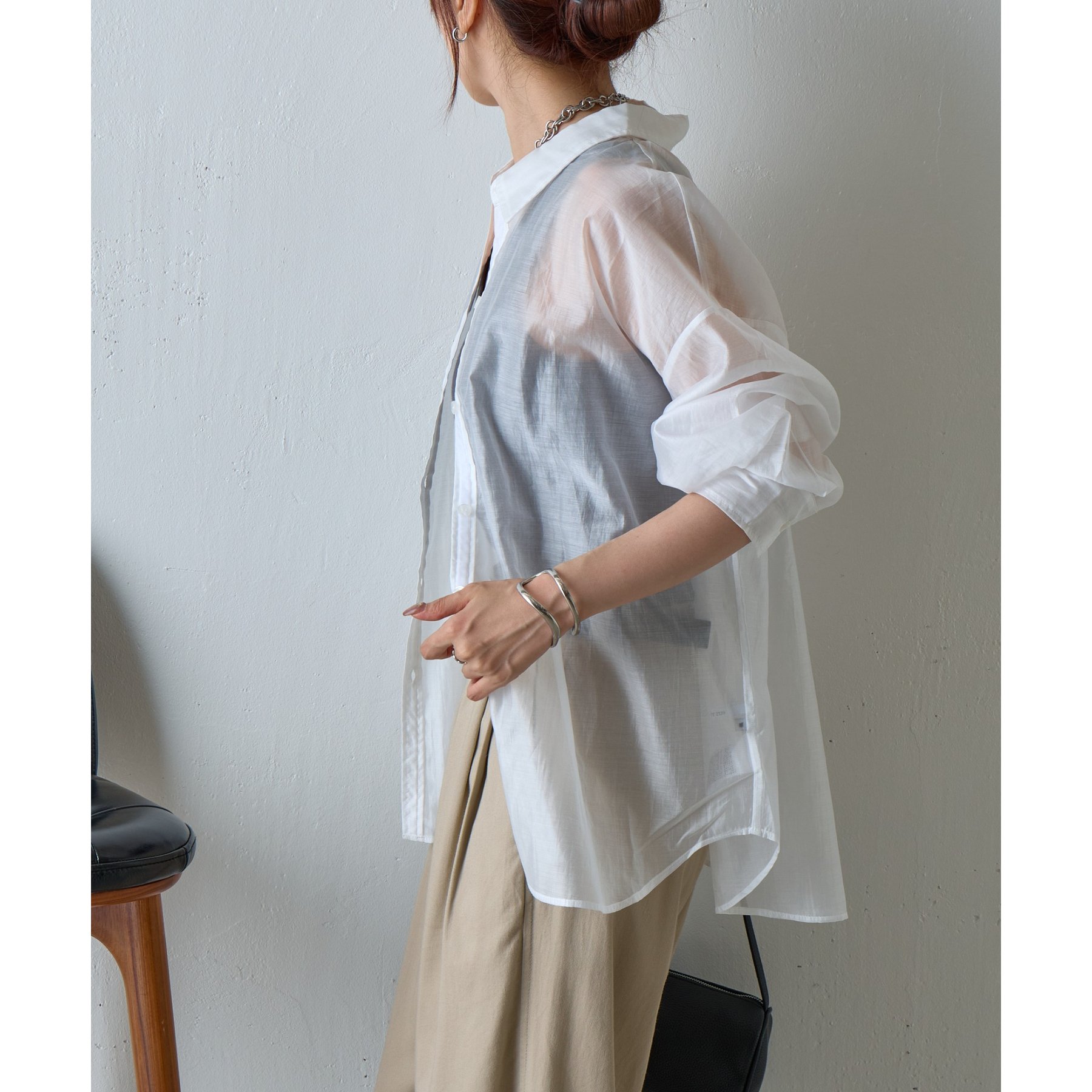 軽やかな透け感が魅力のシアーシャツ。