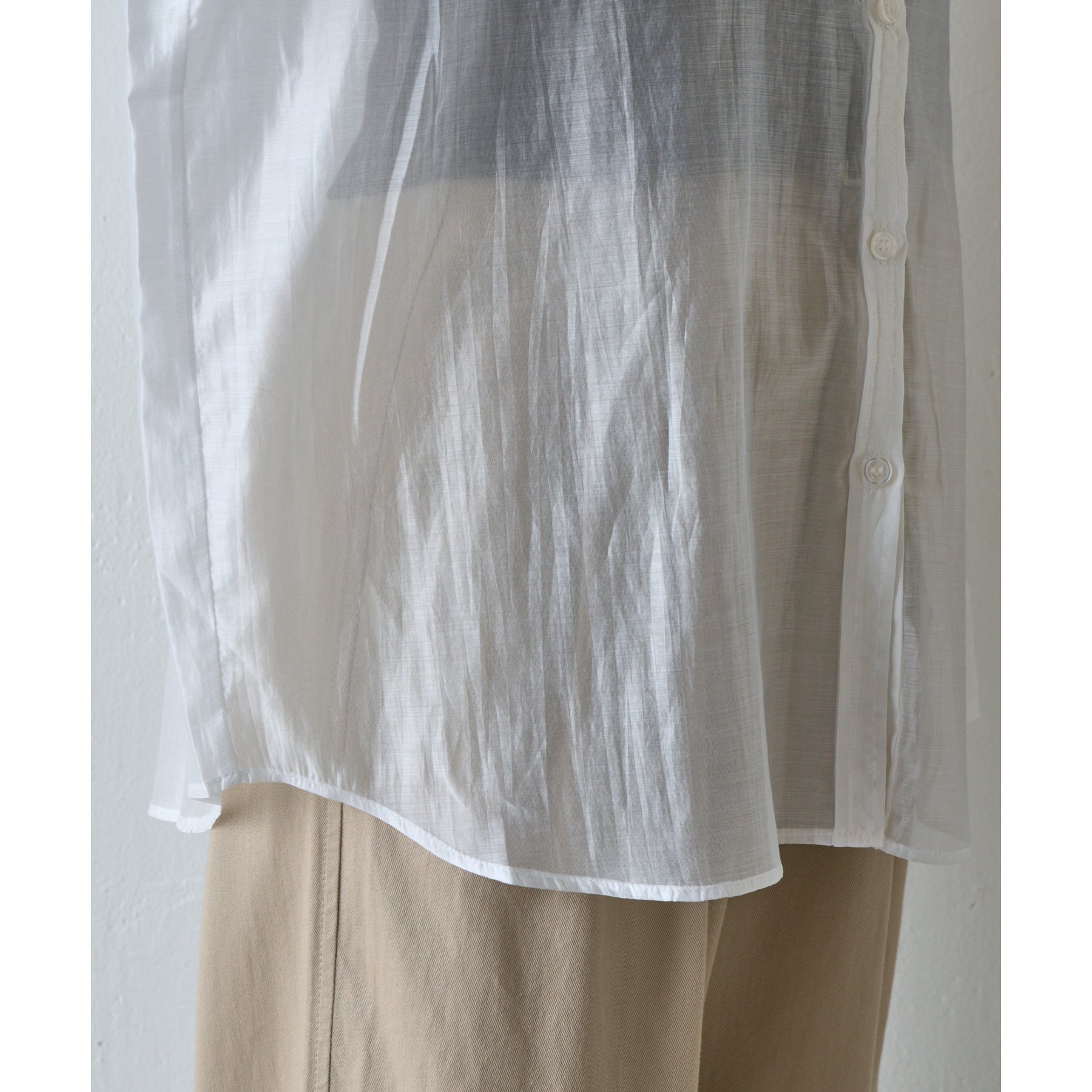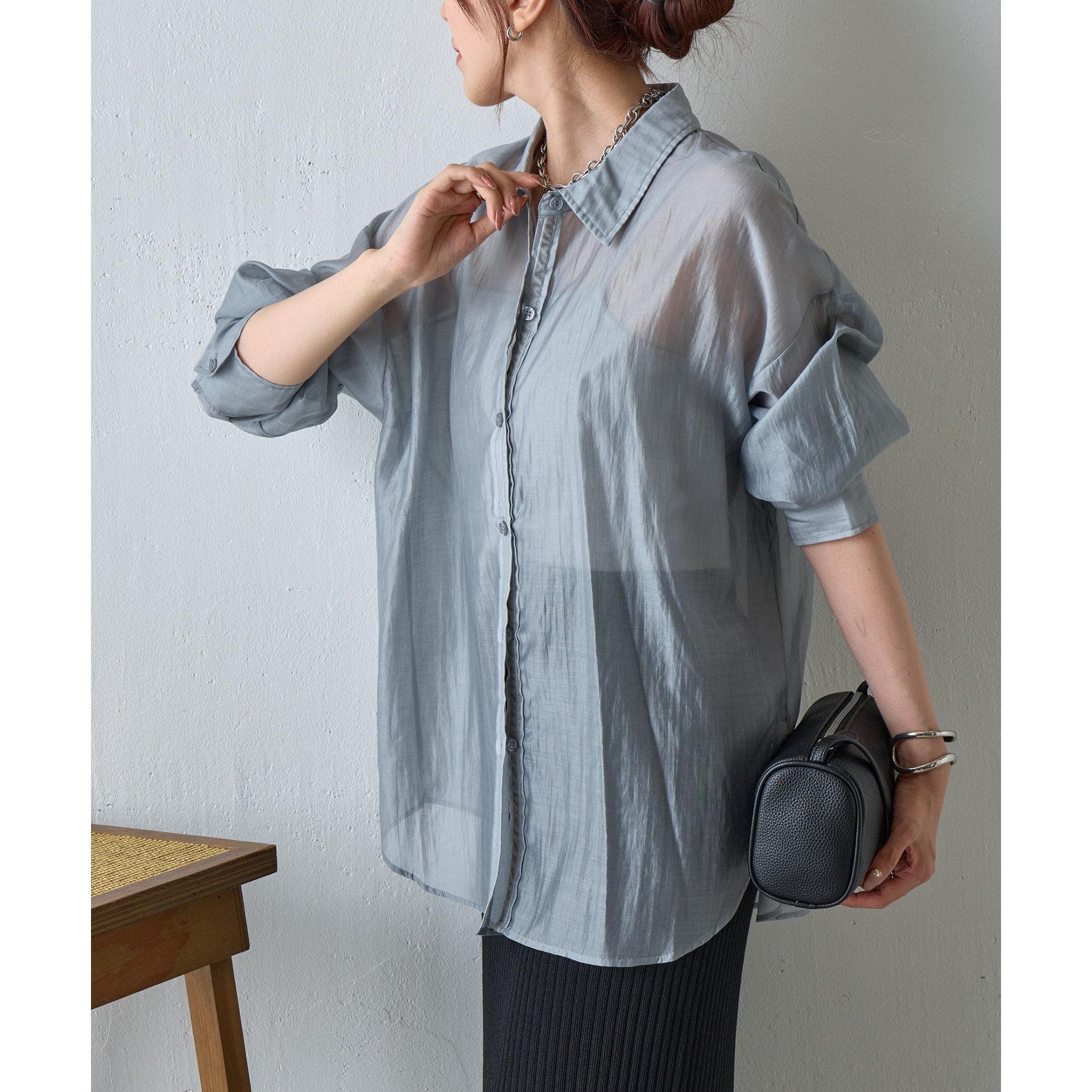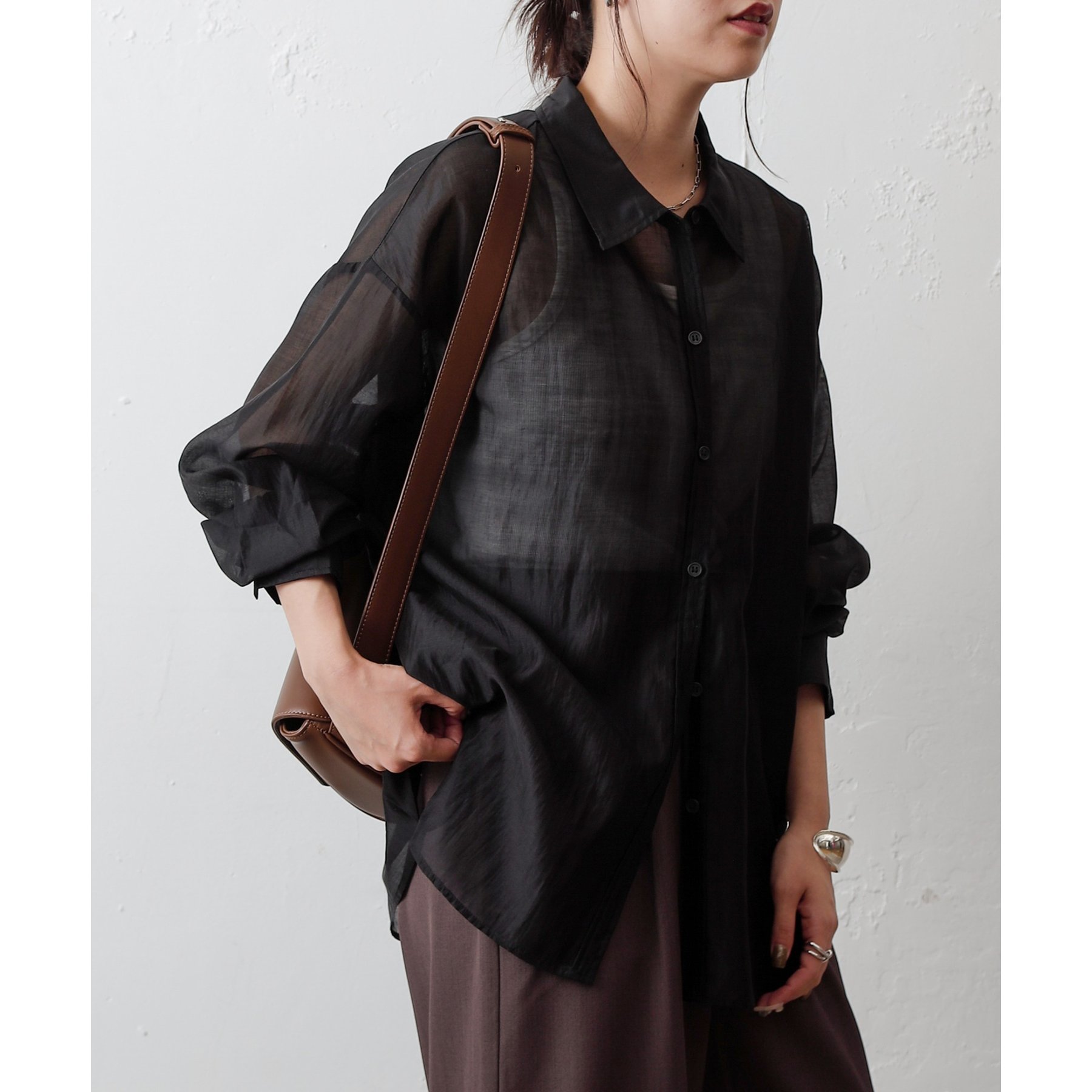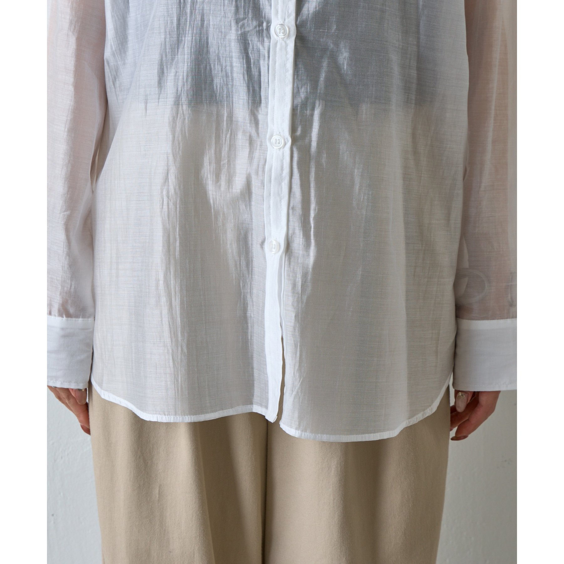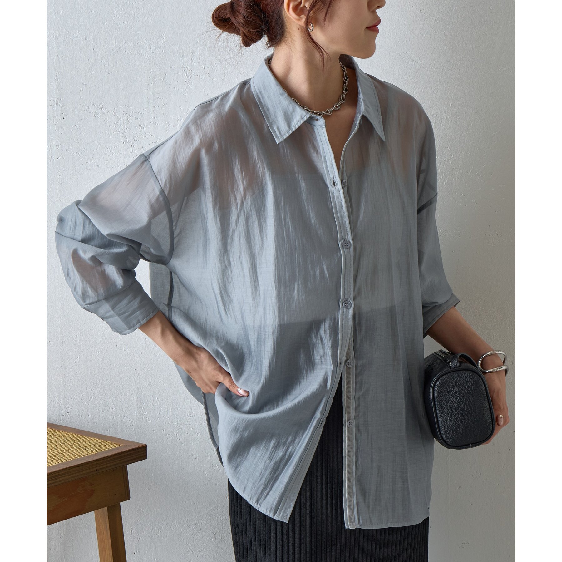 軽やかな透け感が魅力のシアーシャツ。