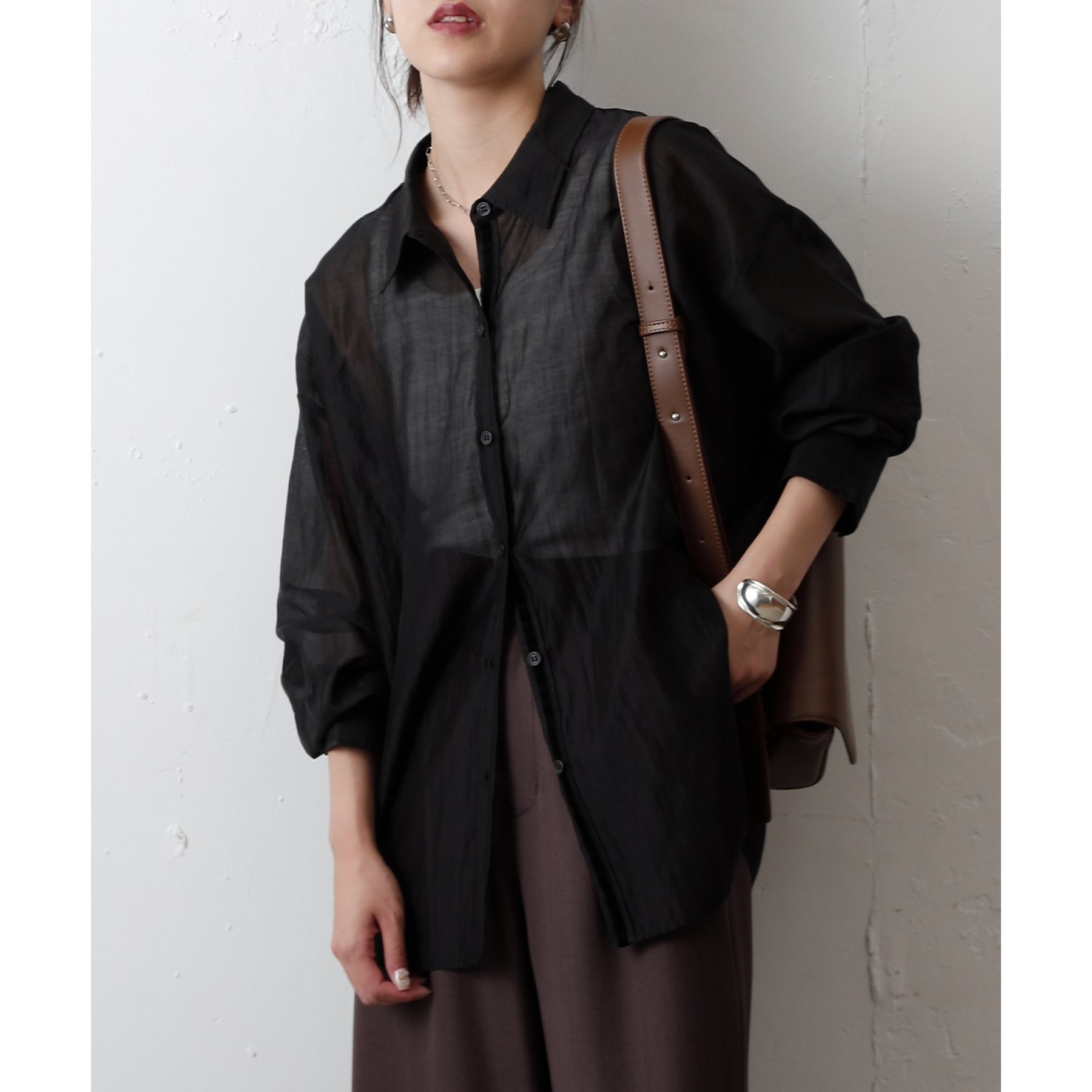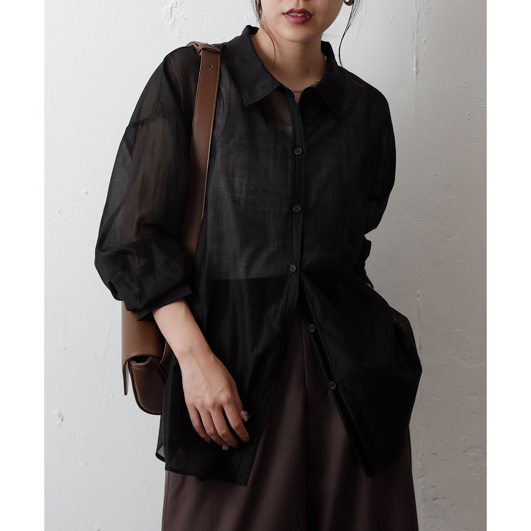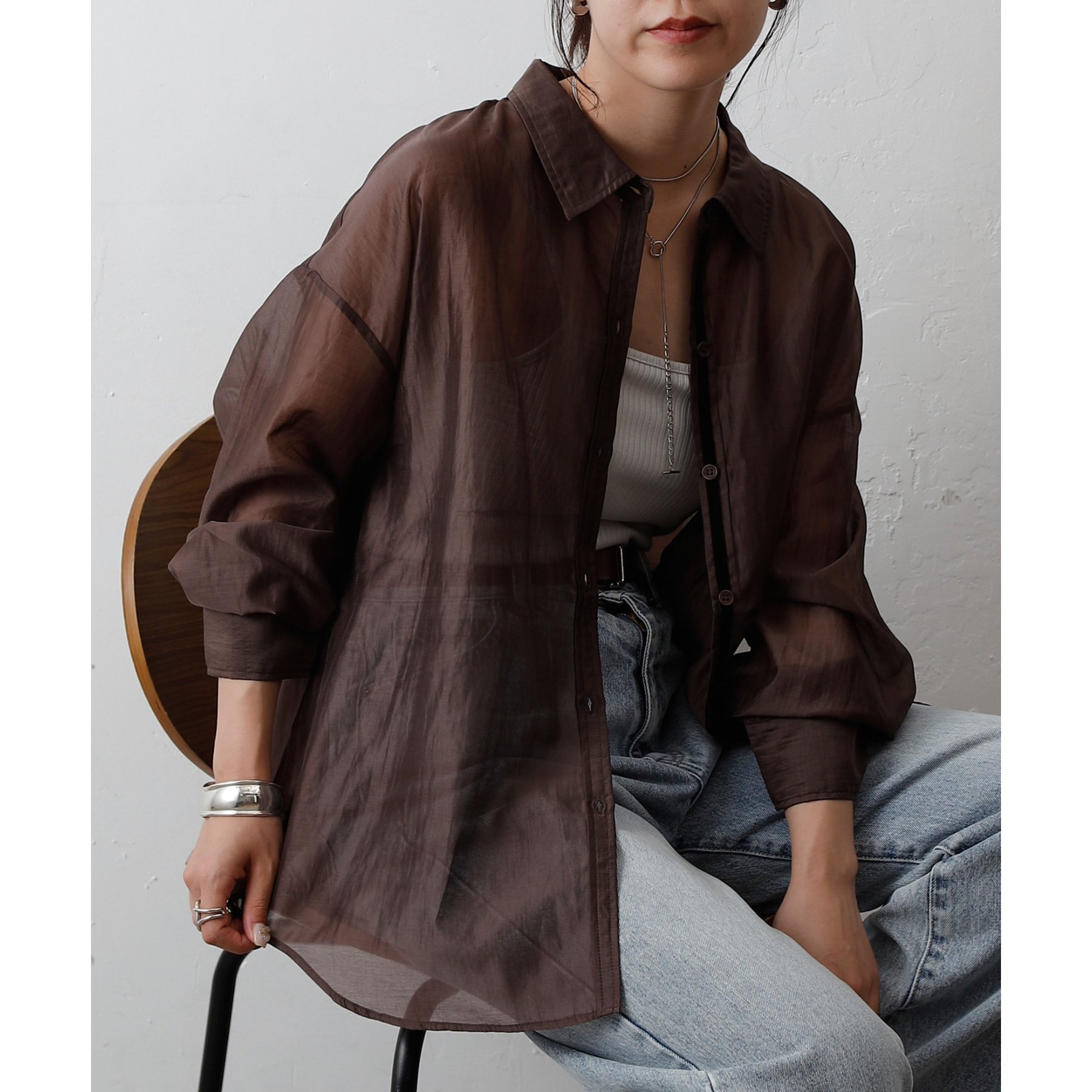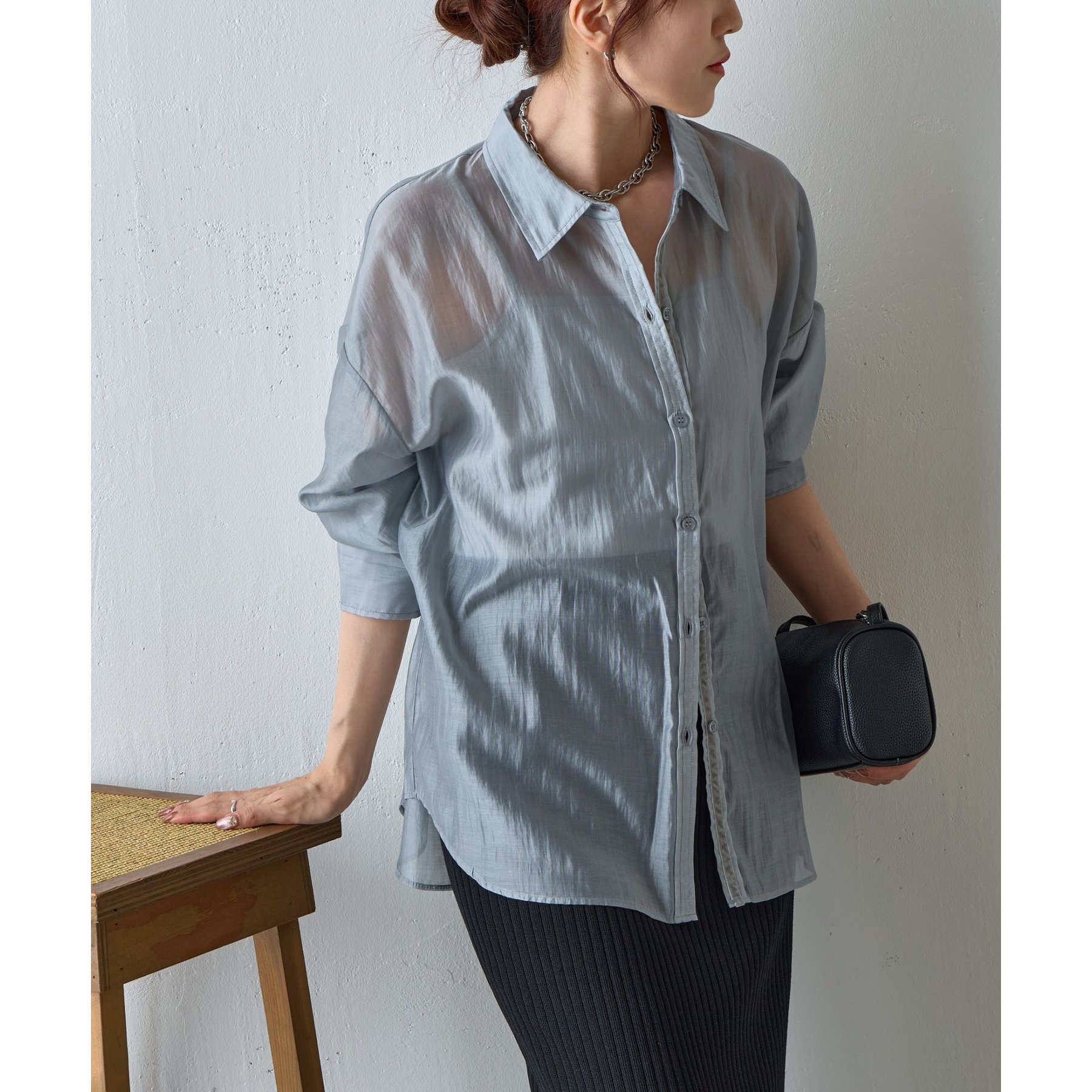 軽やかな透け感が魅力のシアーシャツ。