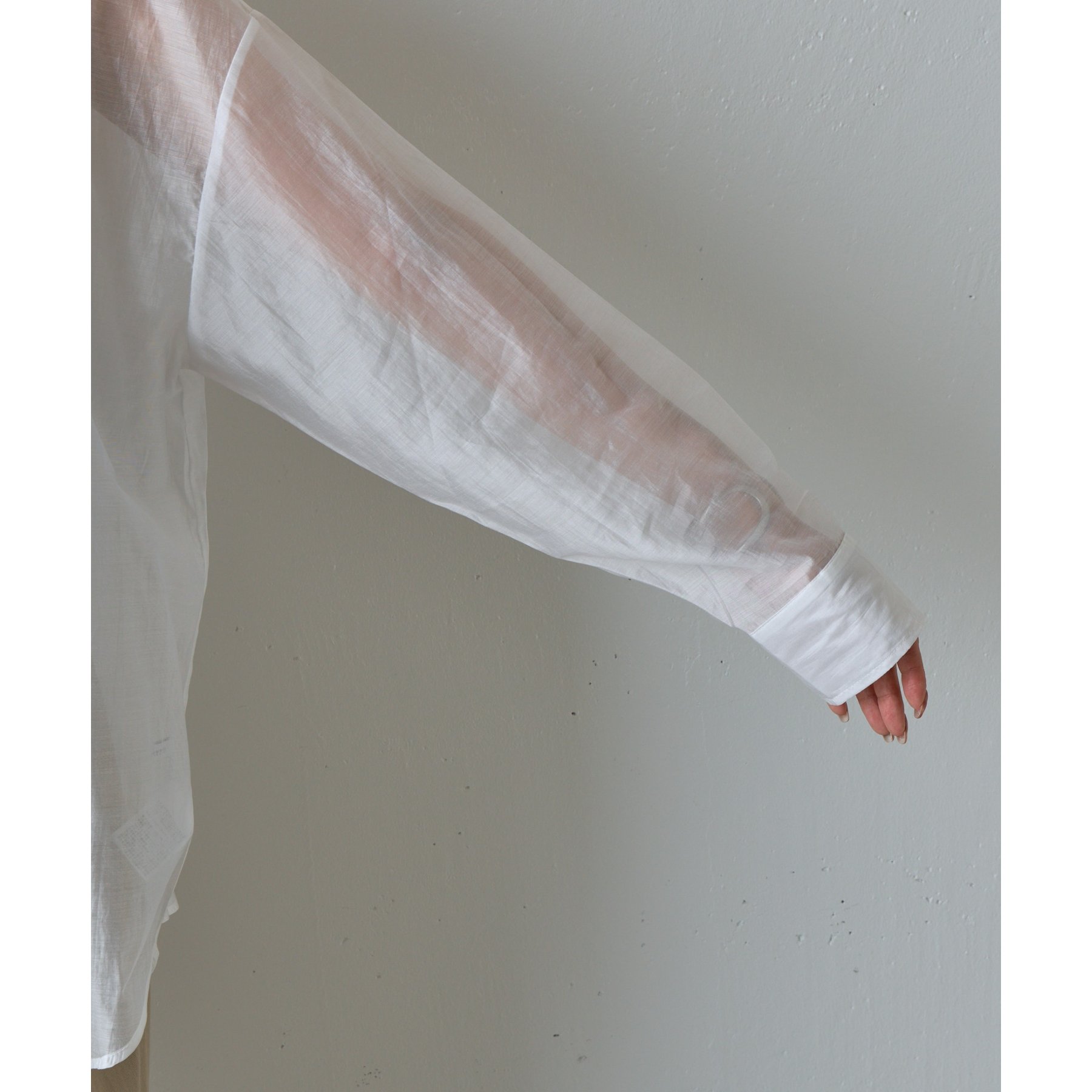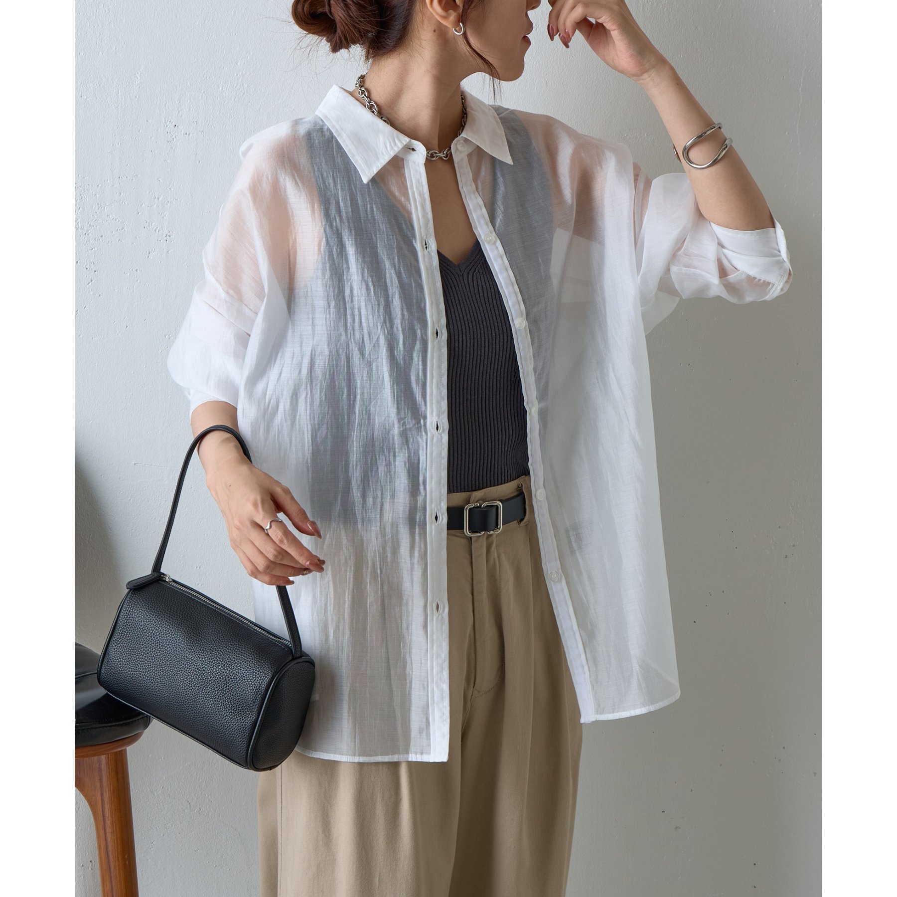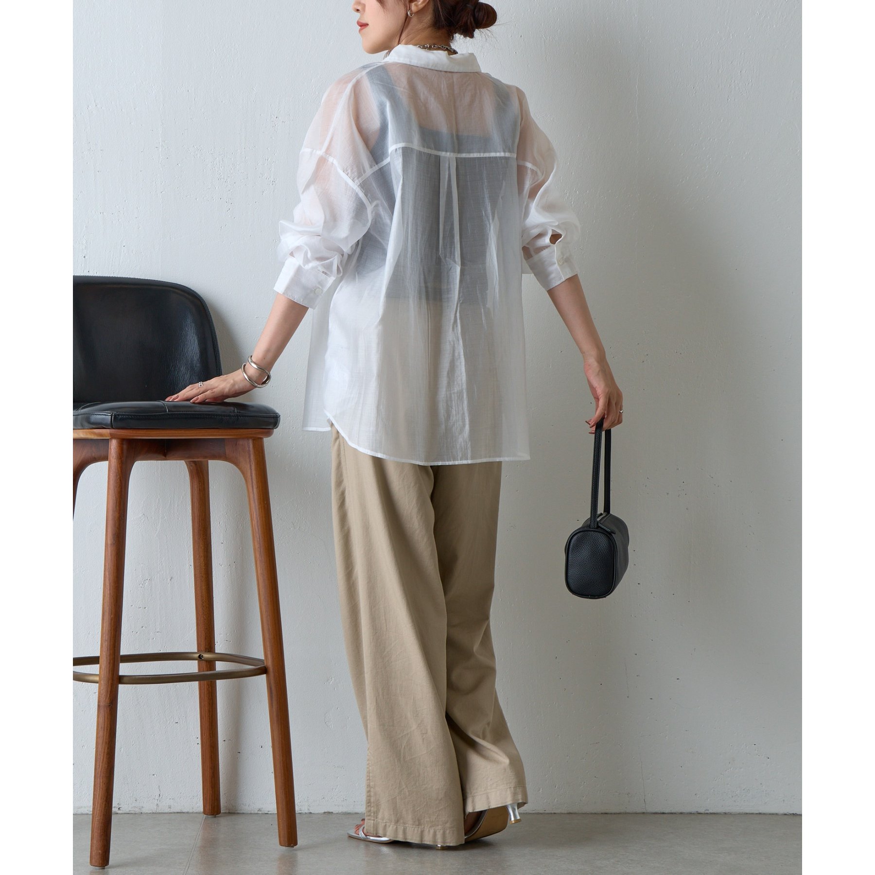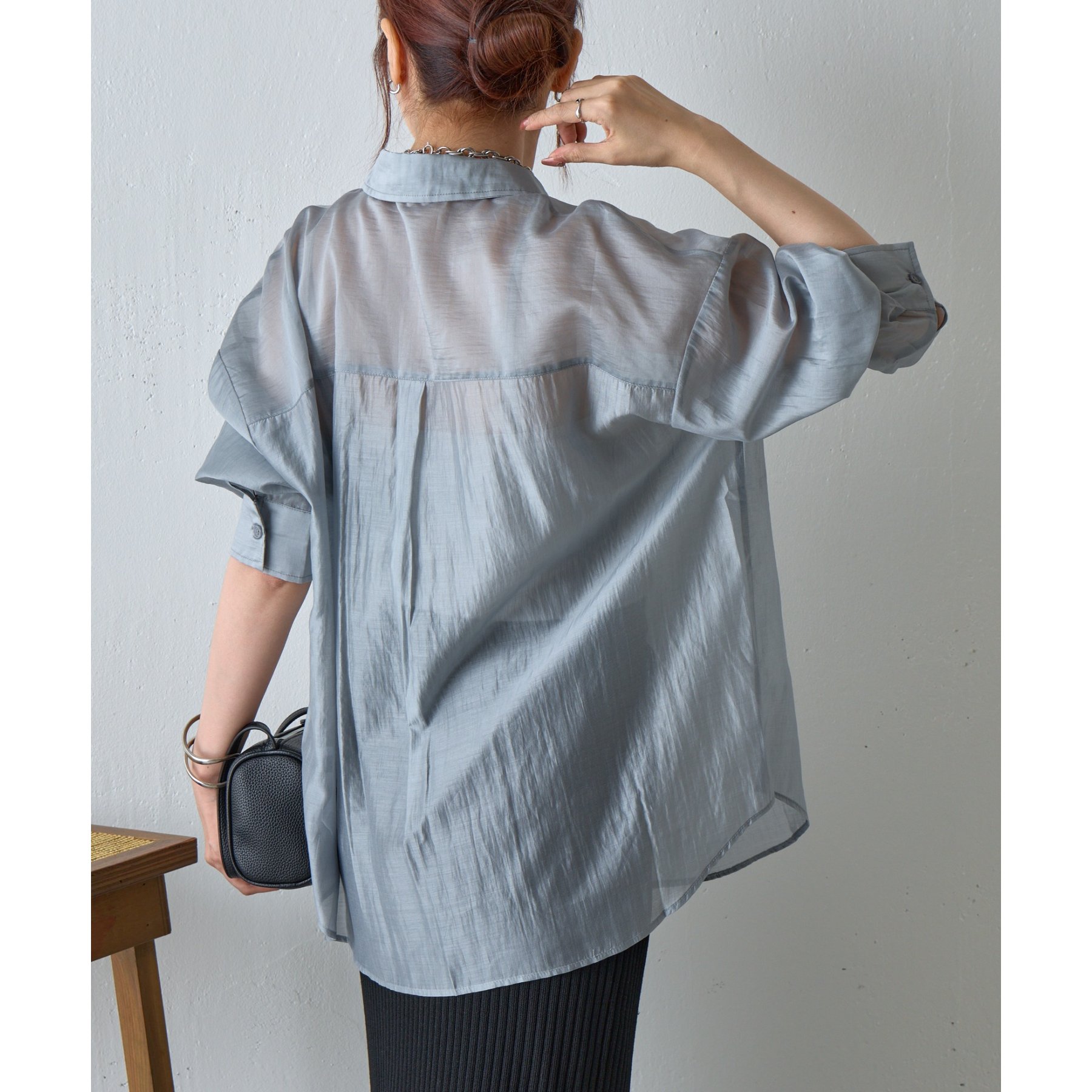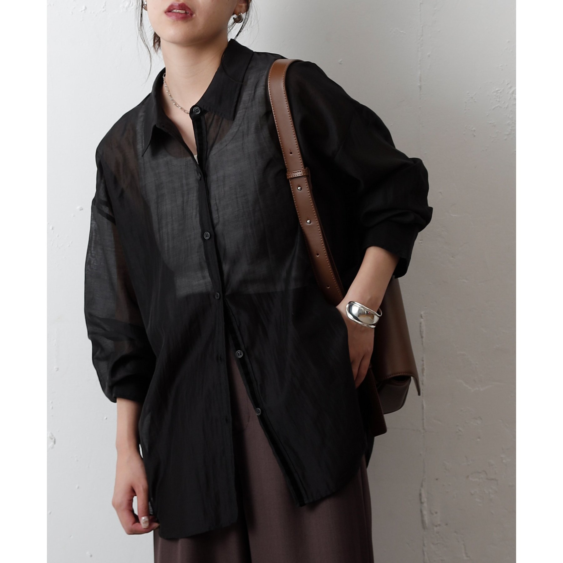 軽やかな透け感が魅力のシアーシャツ。