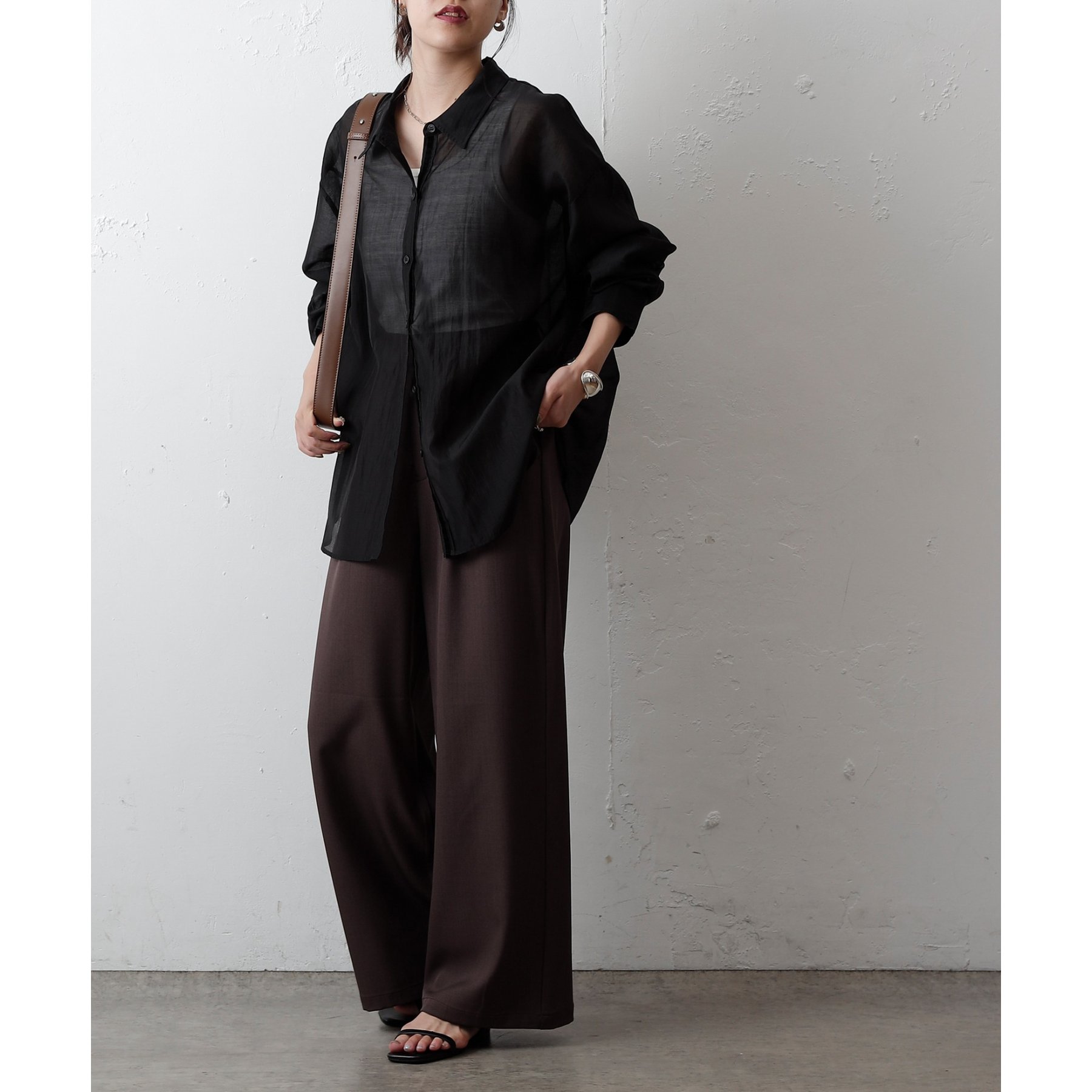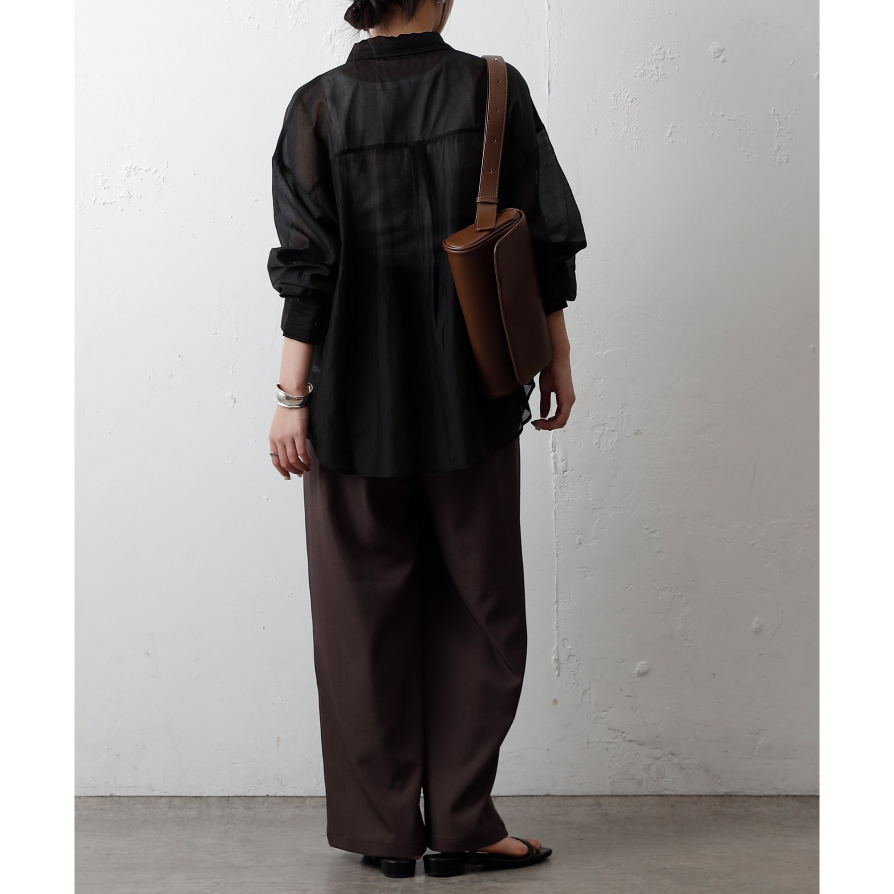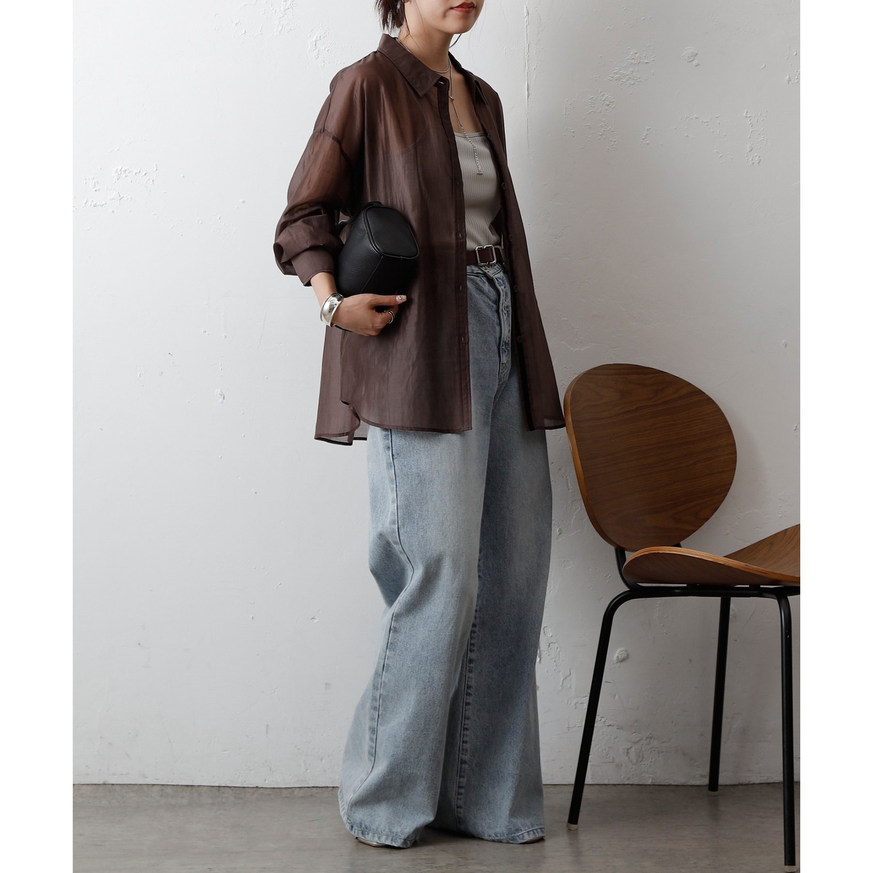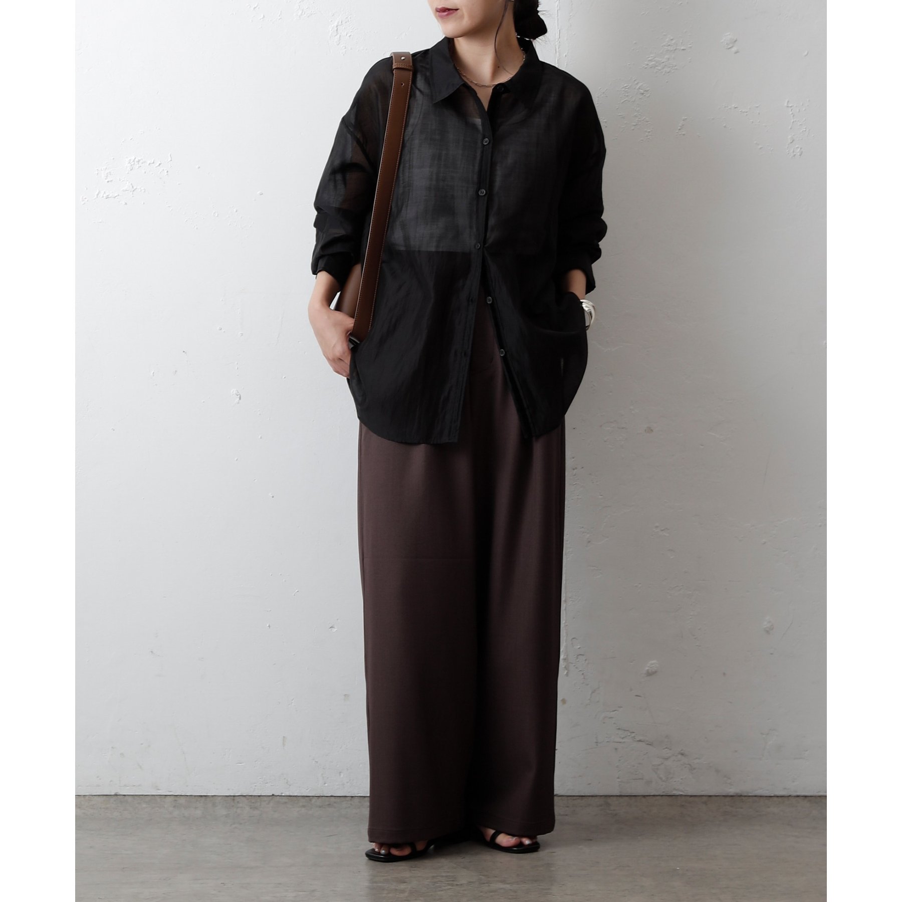 軽やかな透け感が魅力のシアーシャツ。