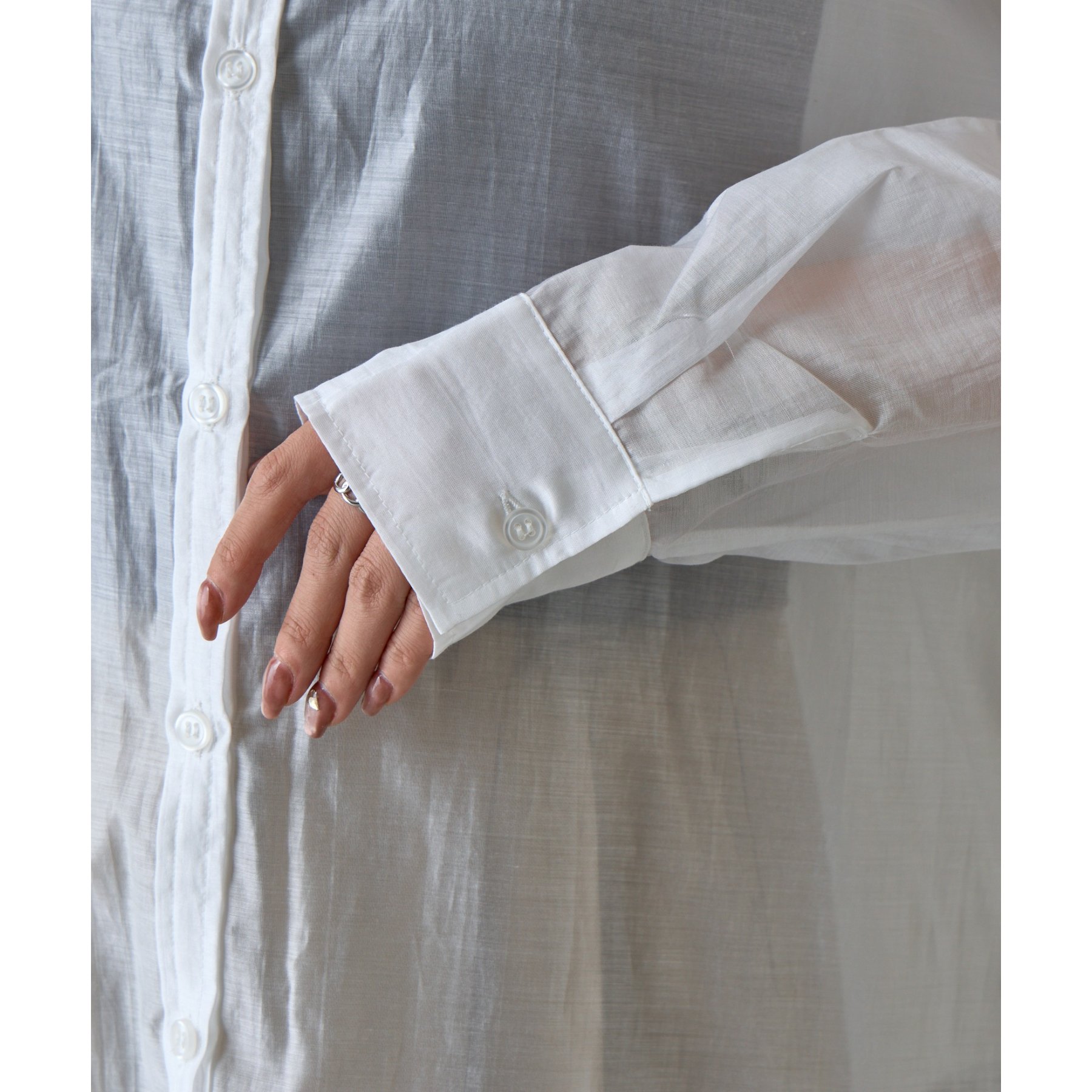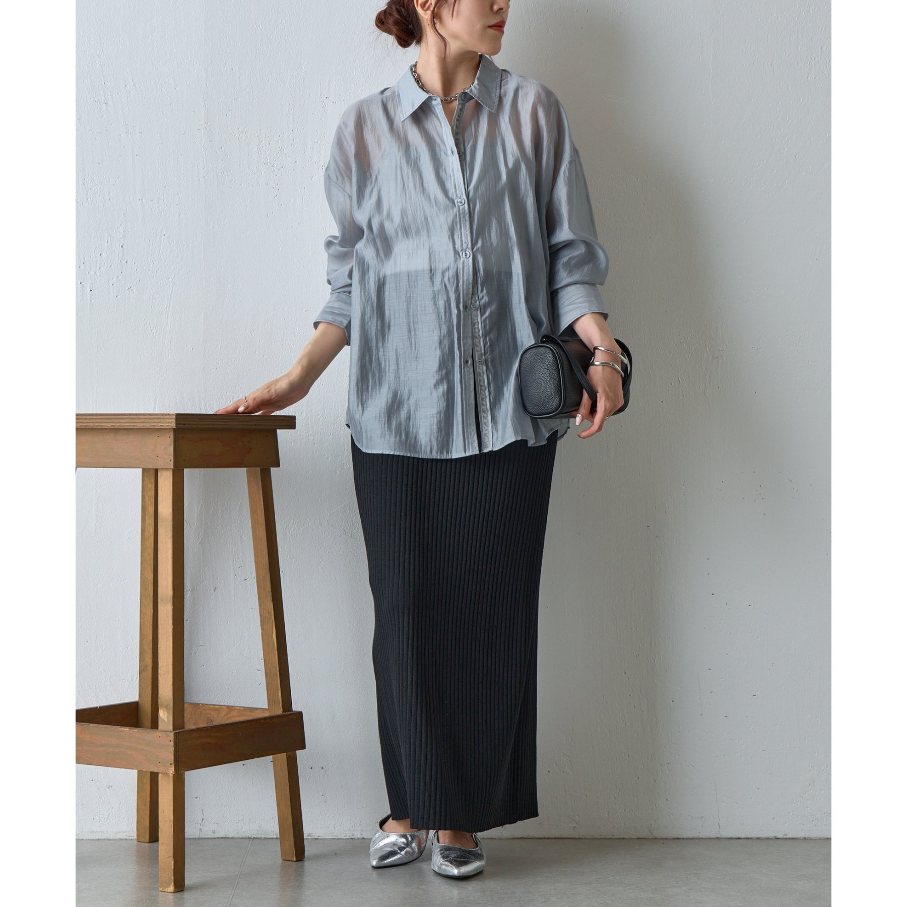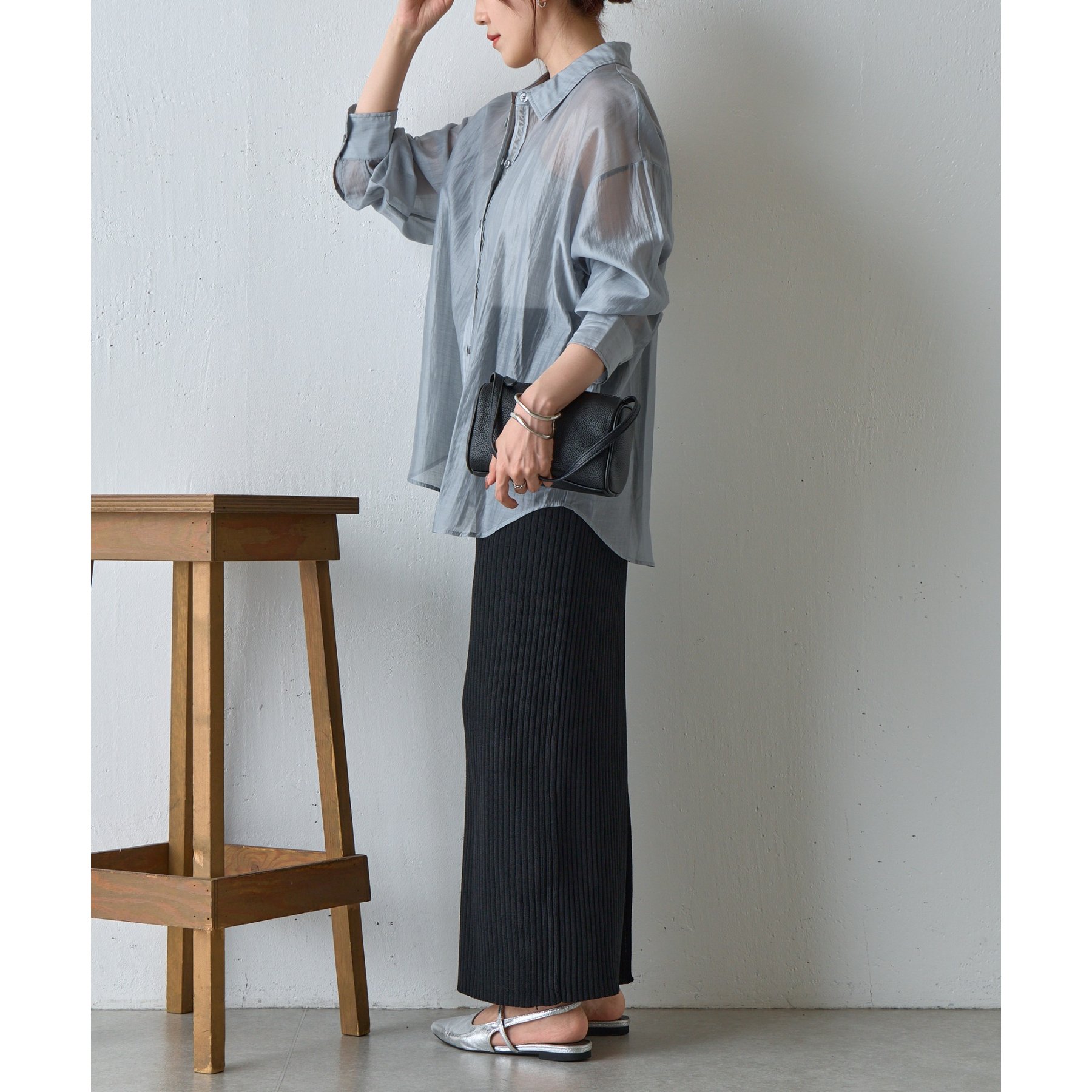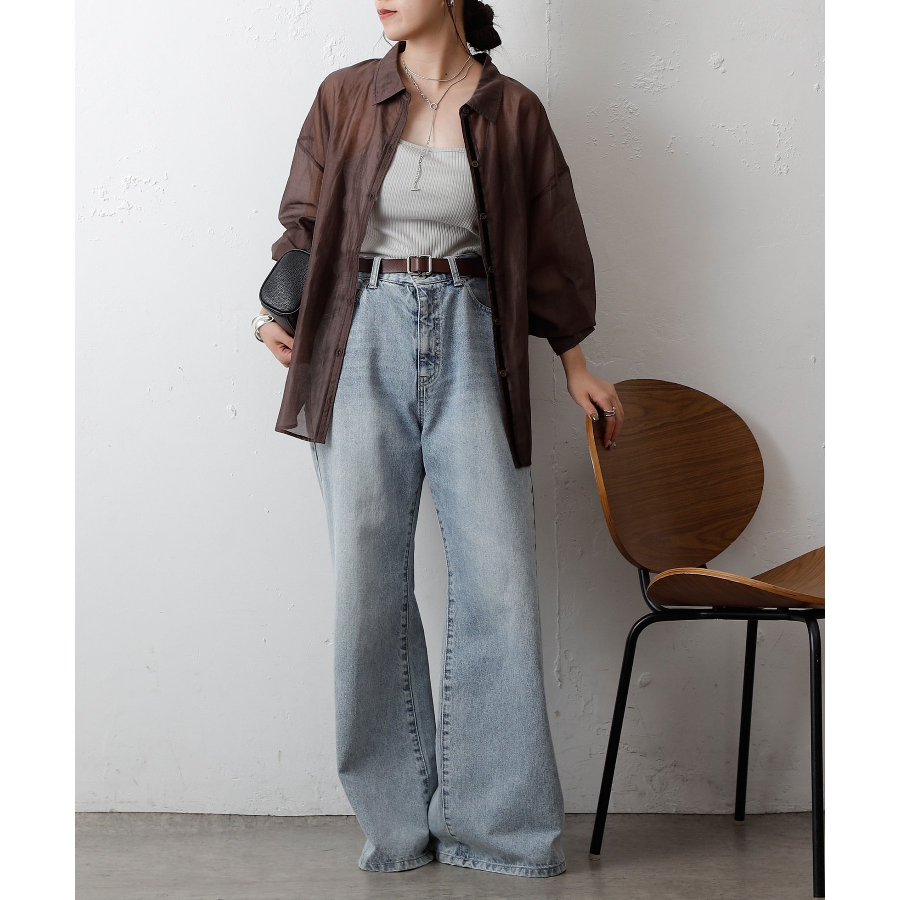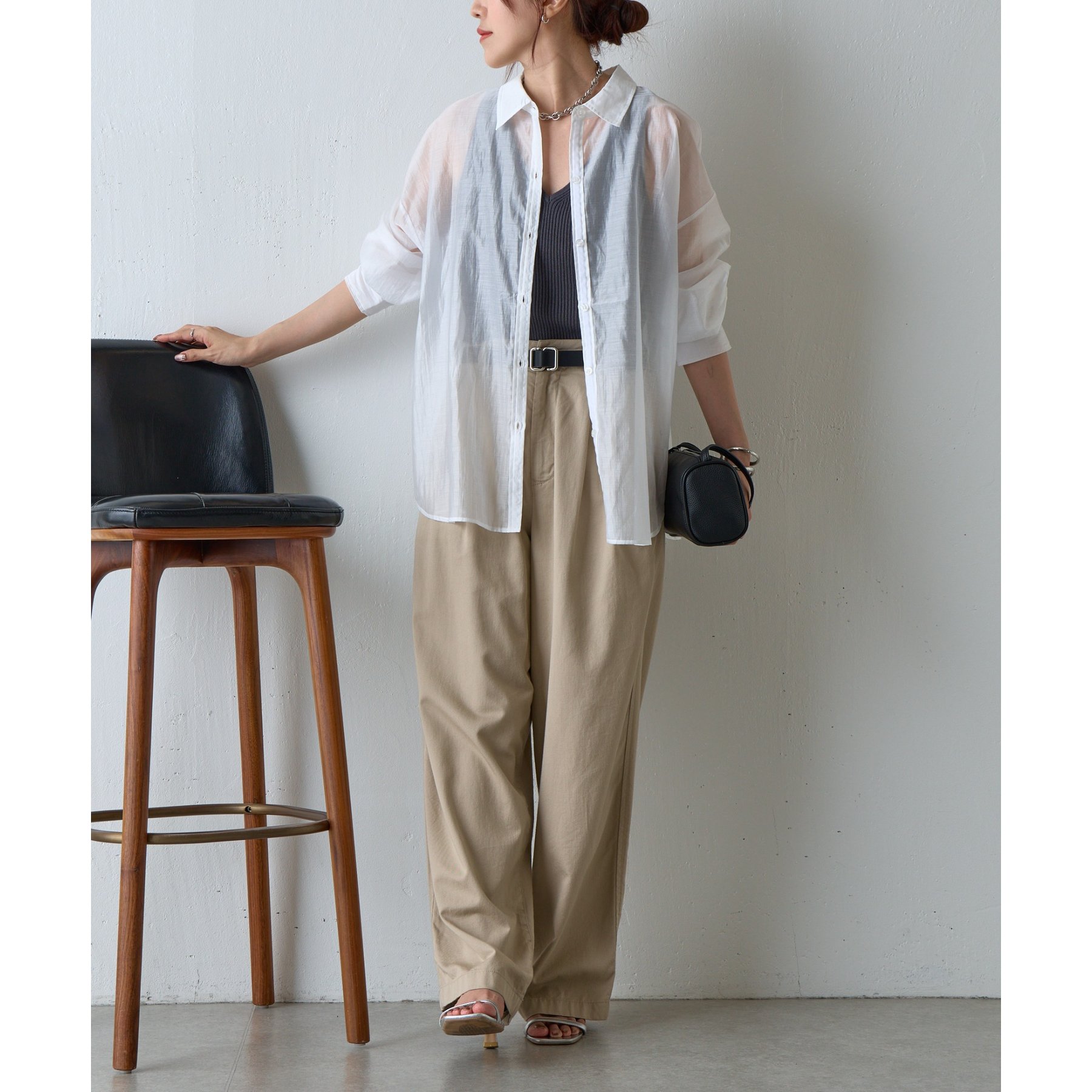 軽やかな透け感が魅力のシアーシャツ。