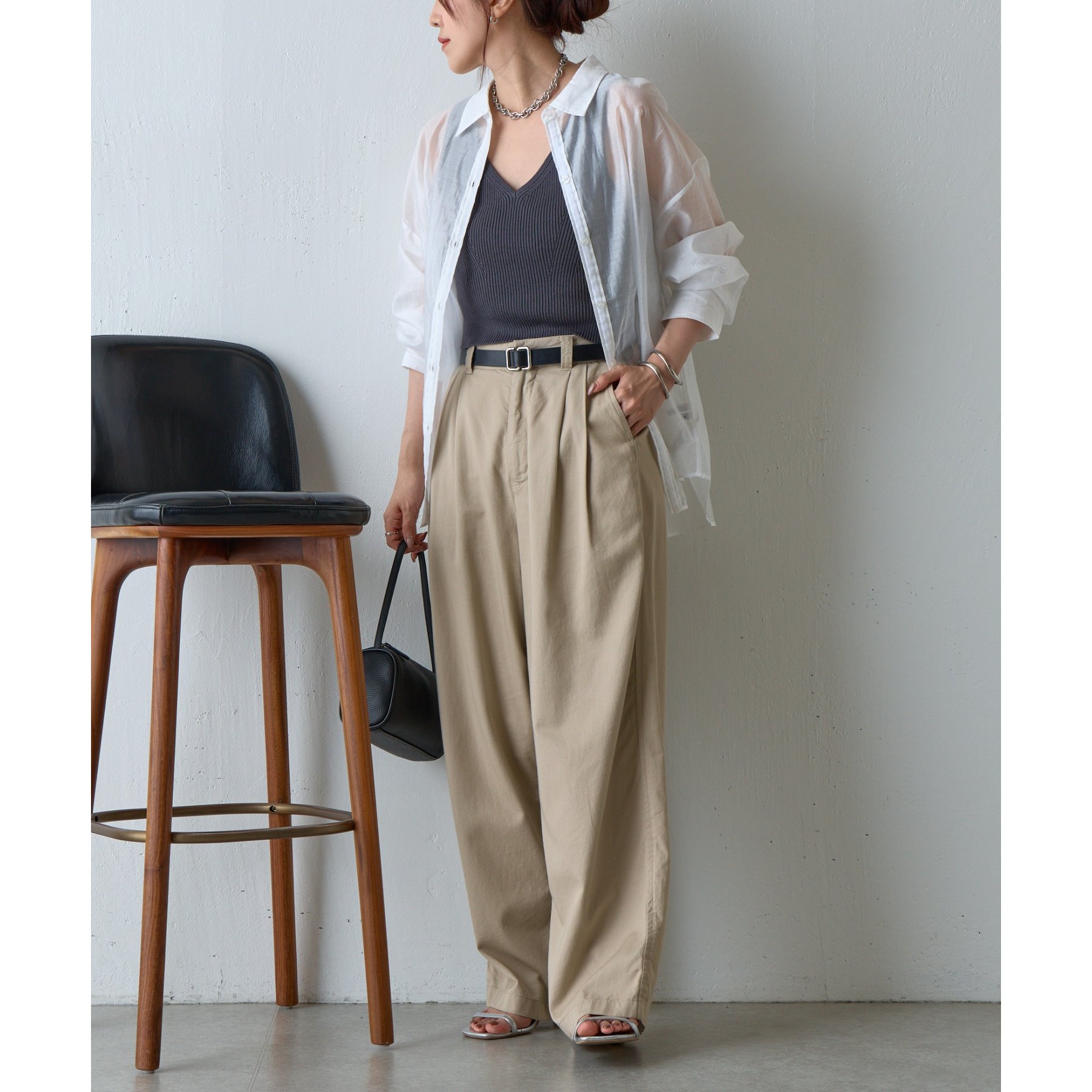 涼しげで抜け感のある素材感がコーディネートにトレンド感と女性らしさをプラスします。