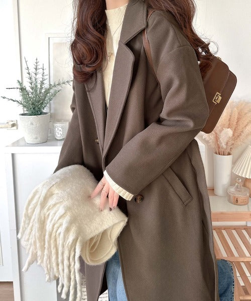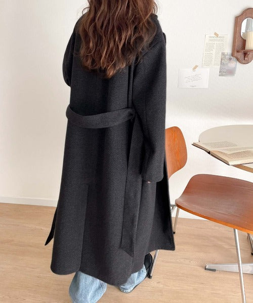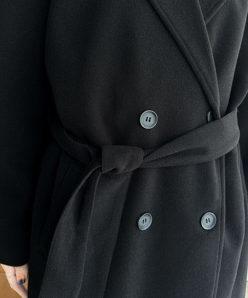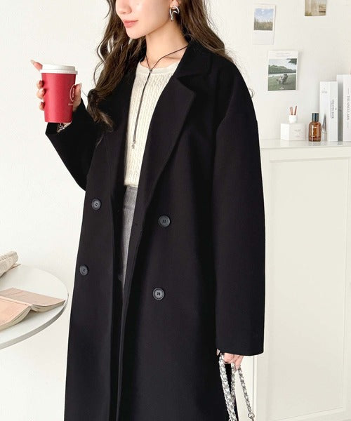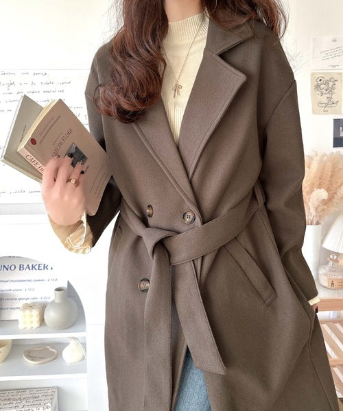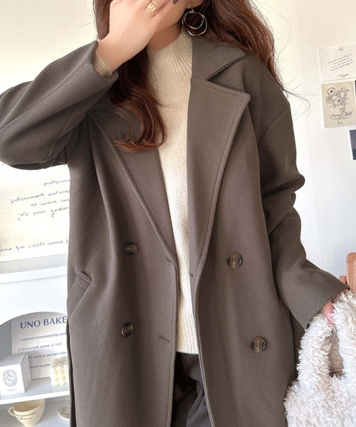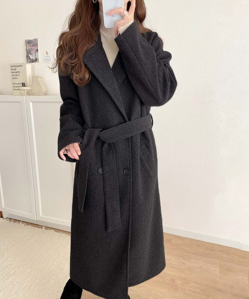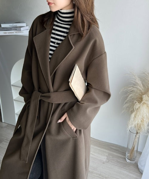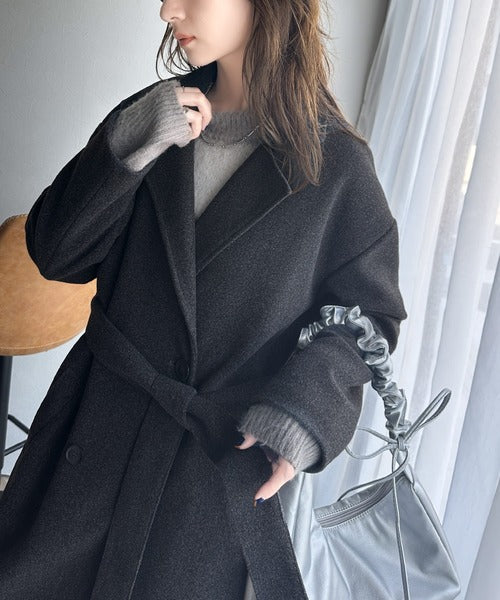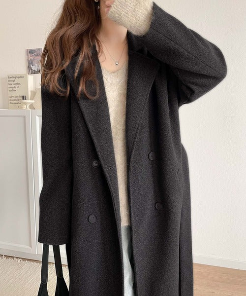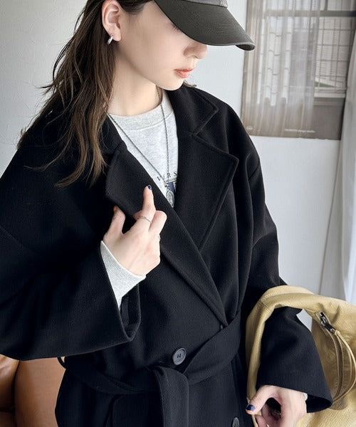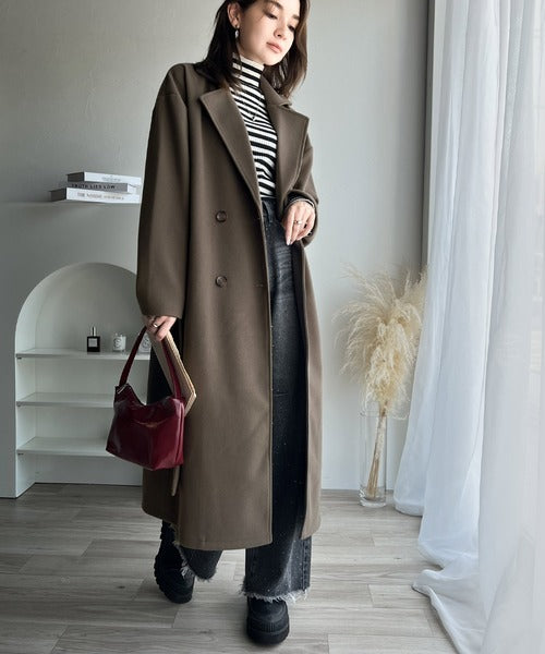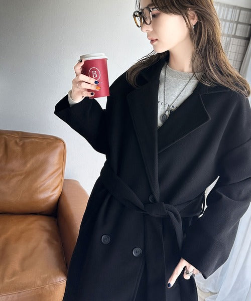 洗練された秋冬スタイルを彩る。フェイクウールベルト付きダブルチェスターコート(ロング丈) ce1010355