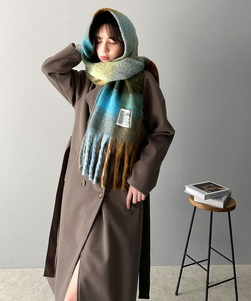 フェイクウールチェック柄大判ボリュームマフラー(ce0420125)を合わせると、