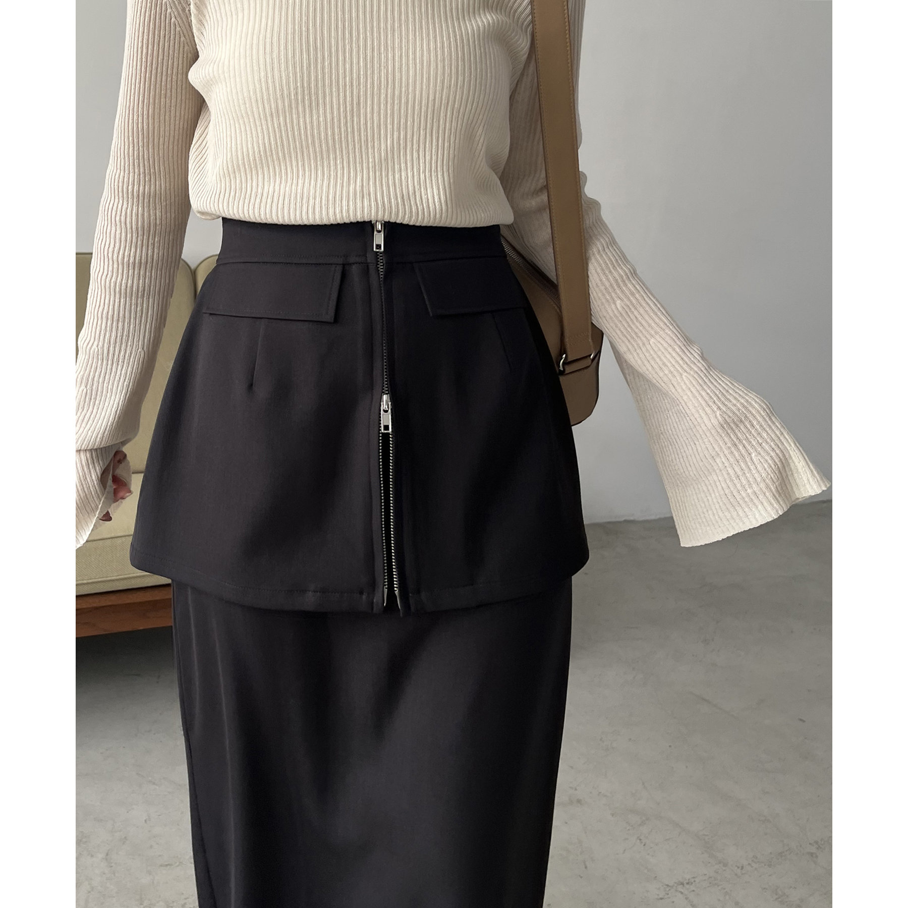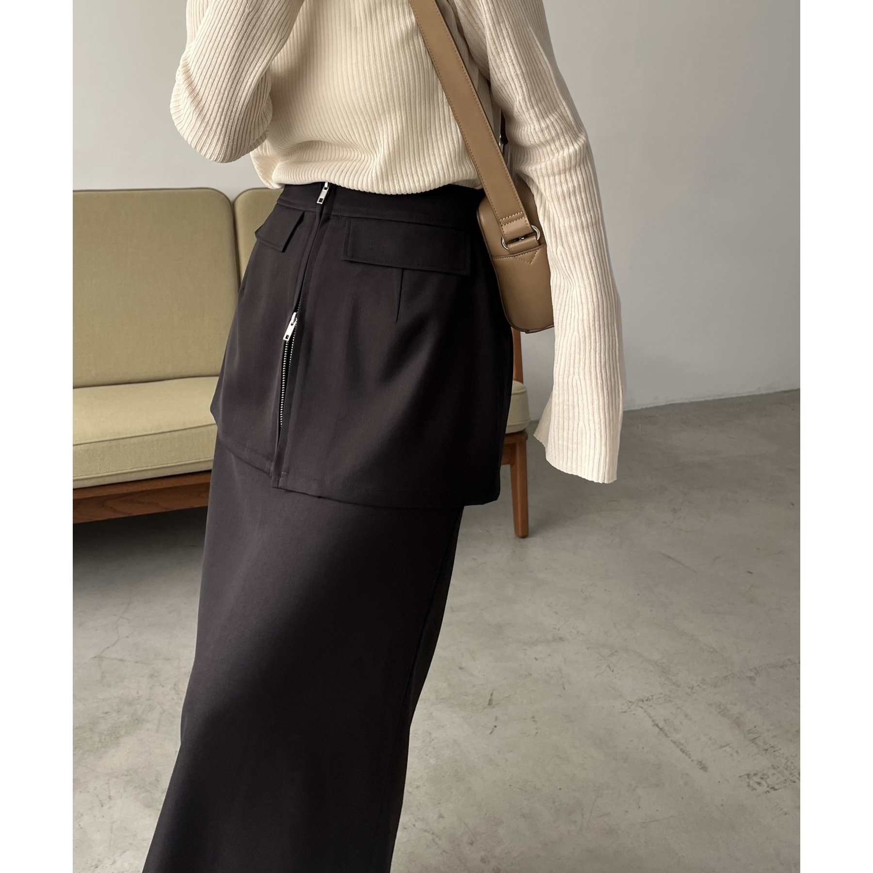 ミニスカートとIラインスカートがセットになったデザインスカート