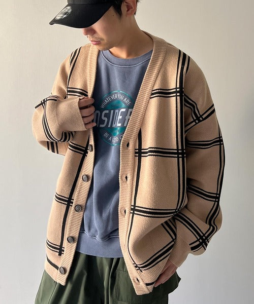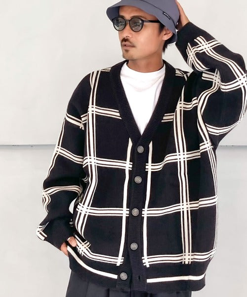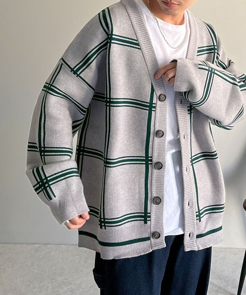 《メンズもお揃いで着れちゃうチェック柄カーディガン》