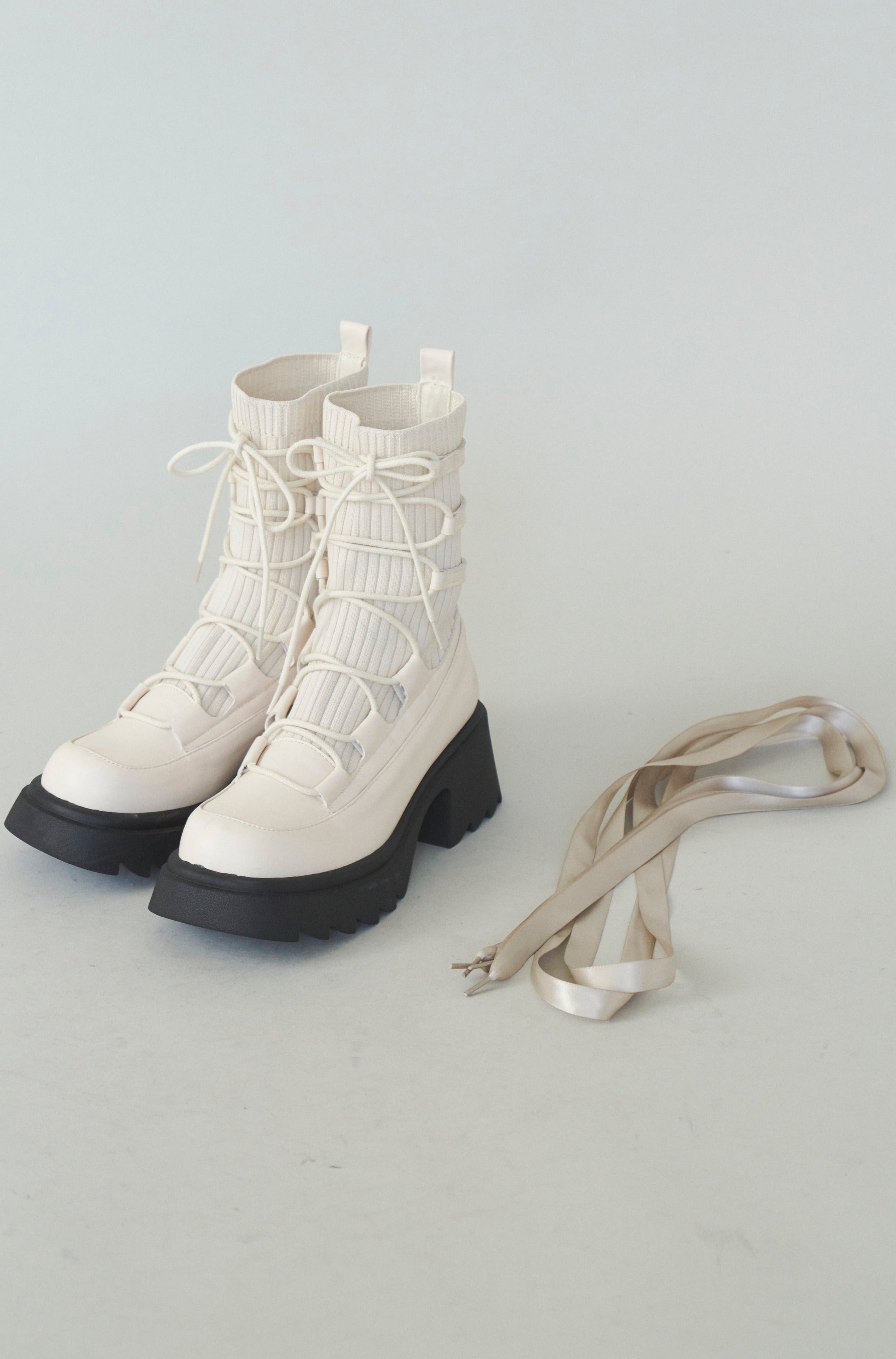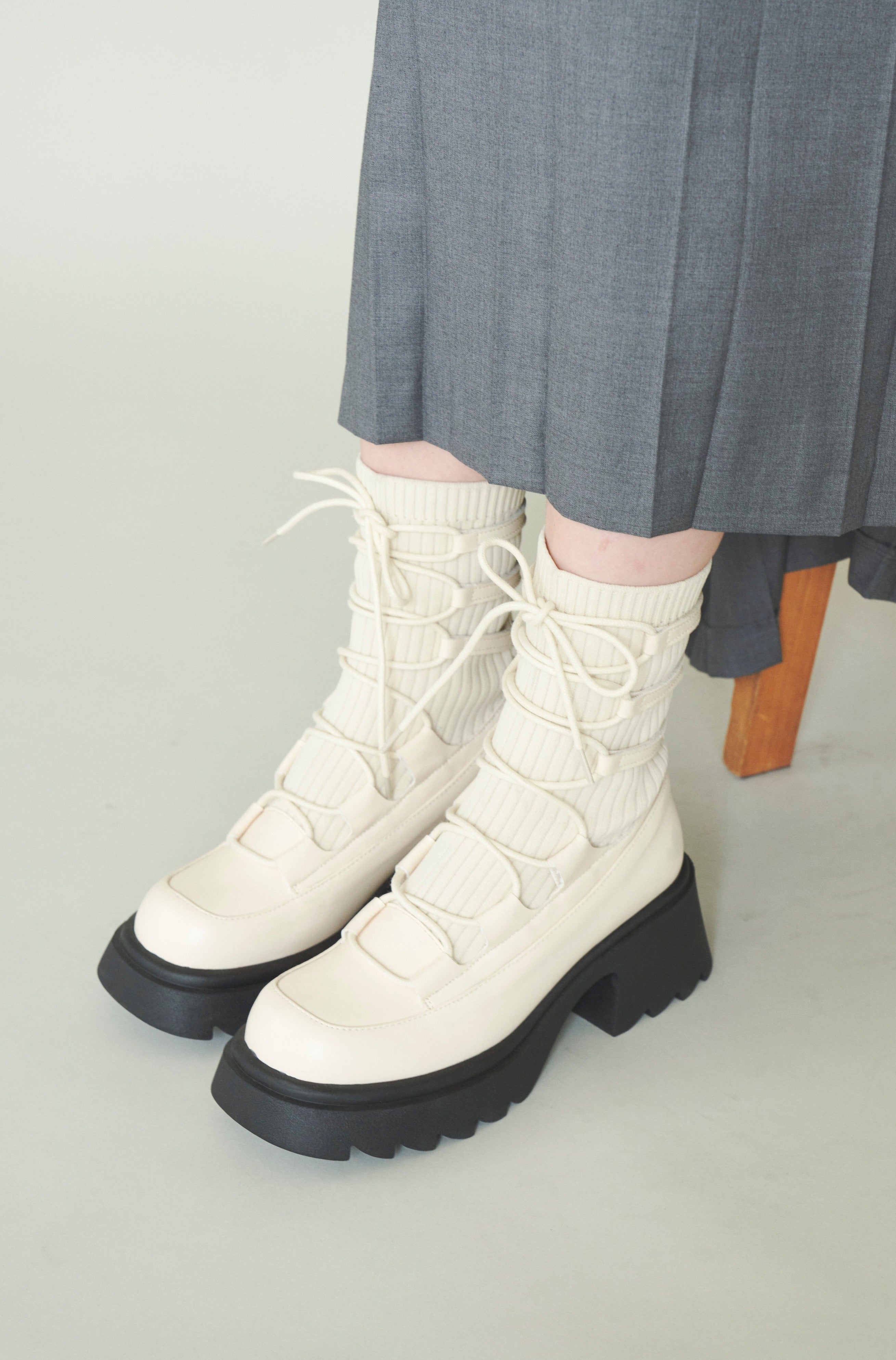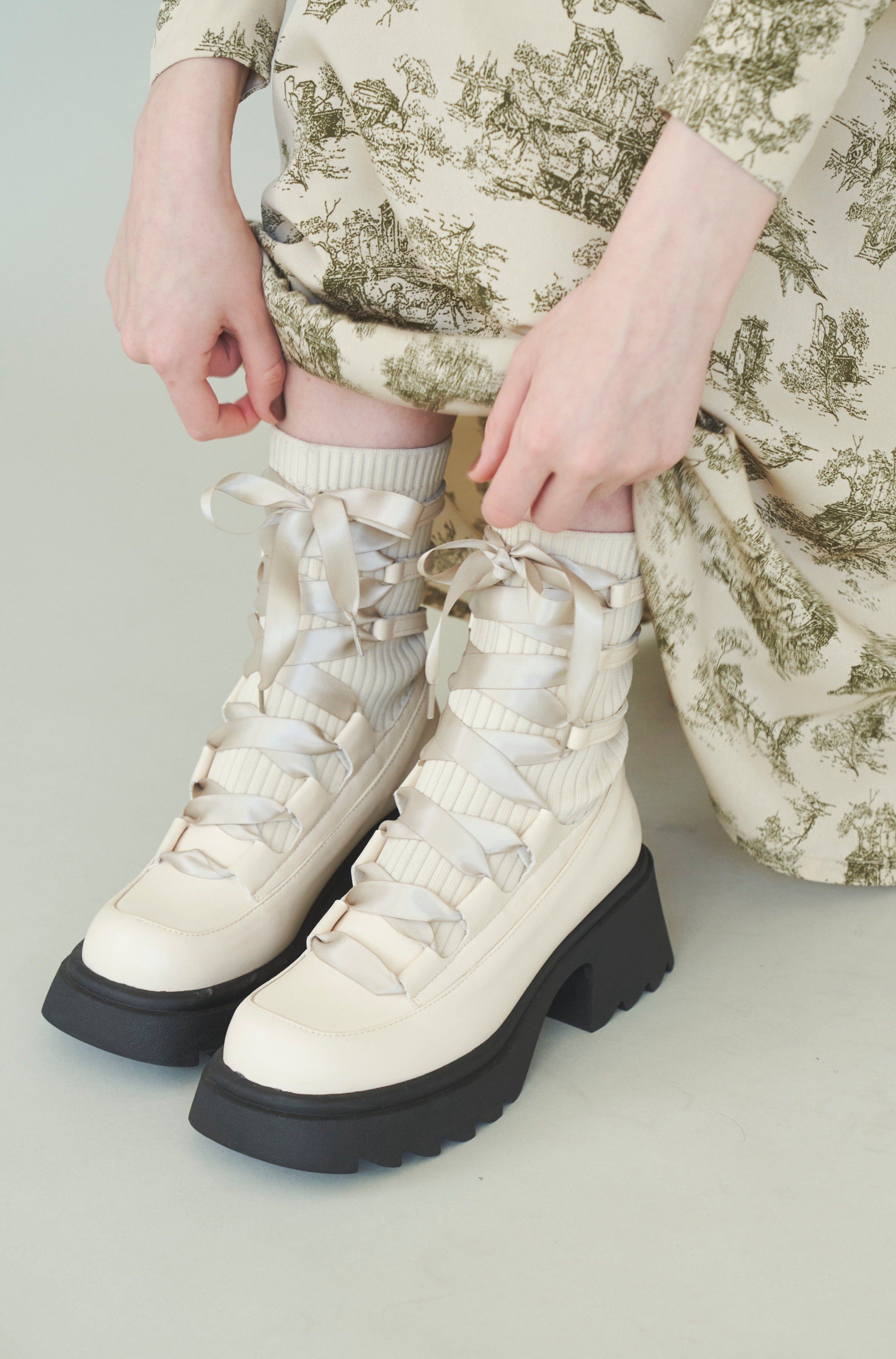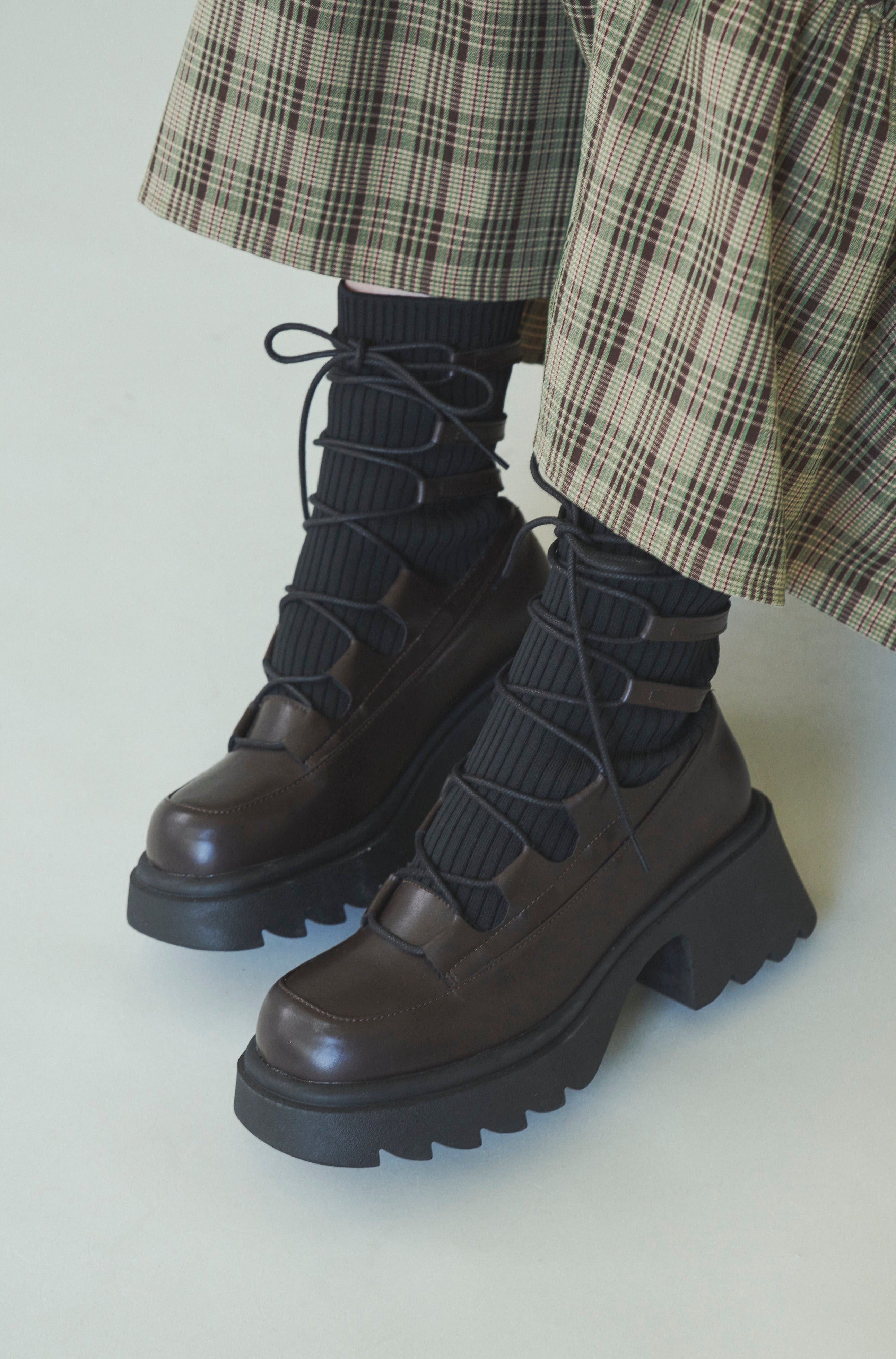 編み上げリボンと、ボリュームのある厚底。