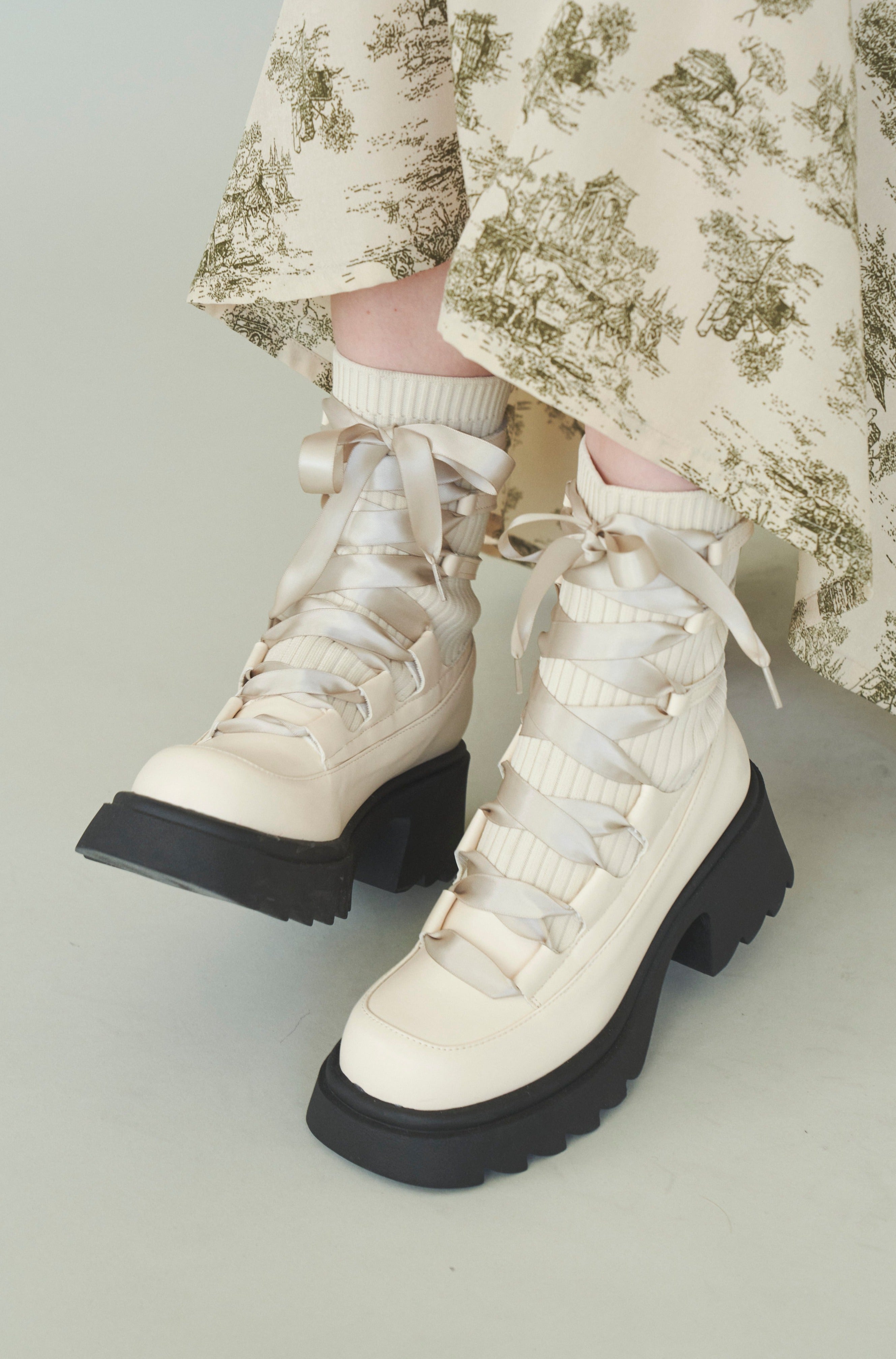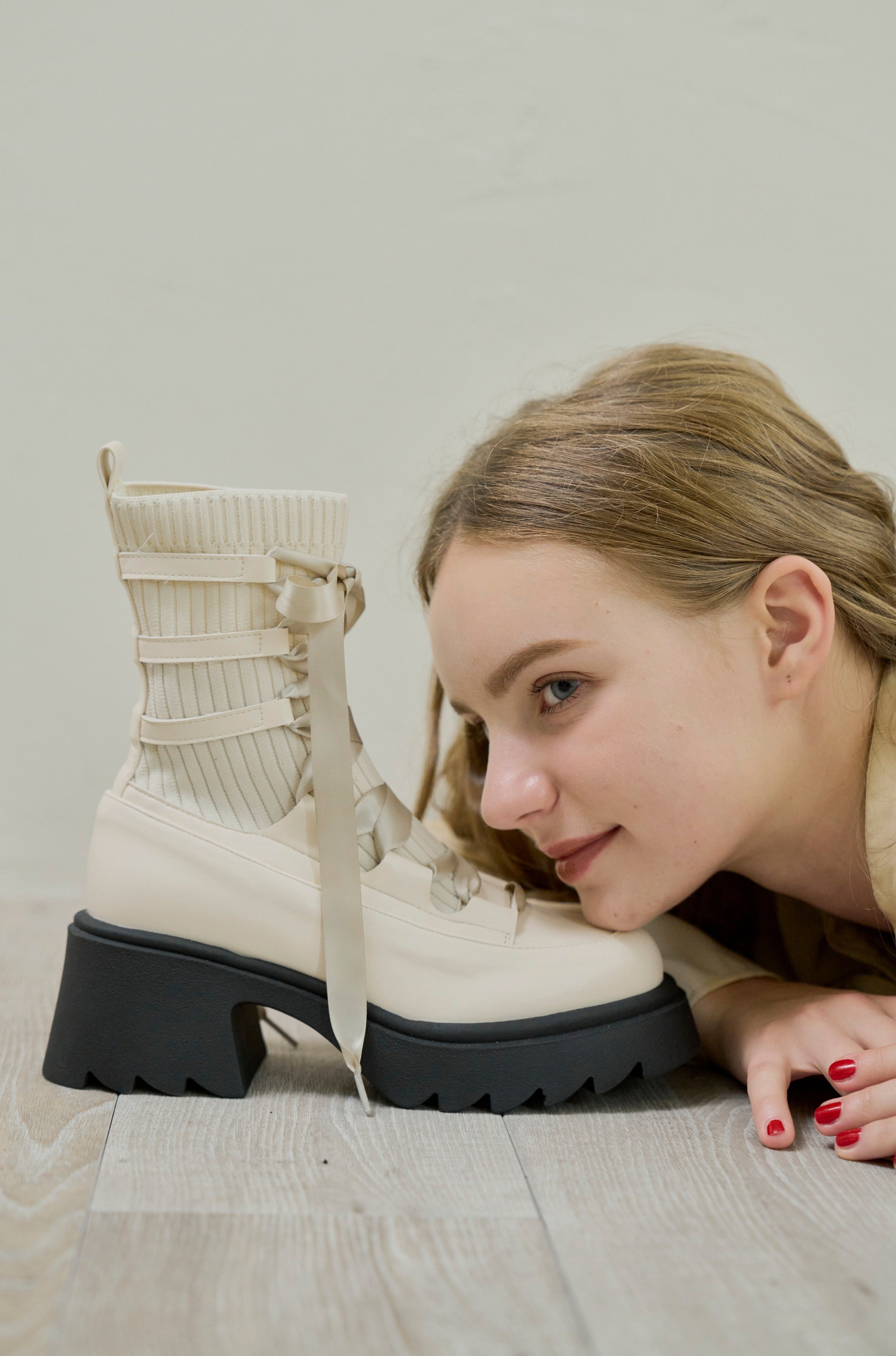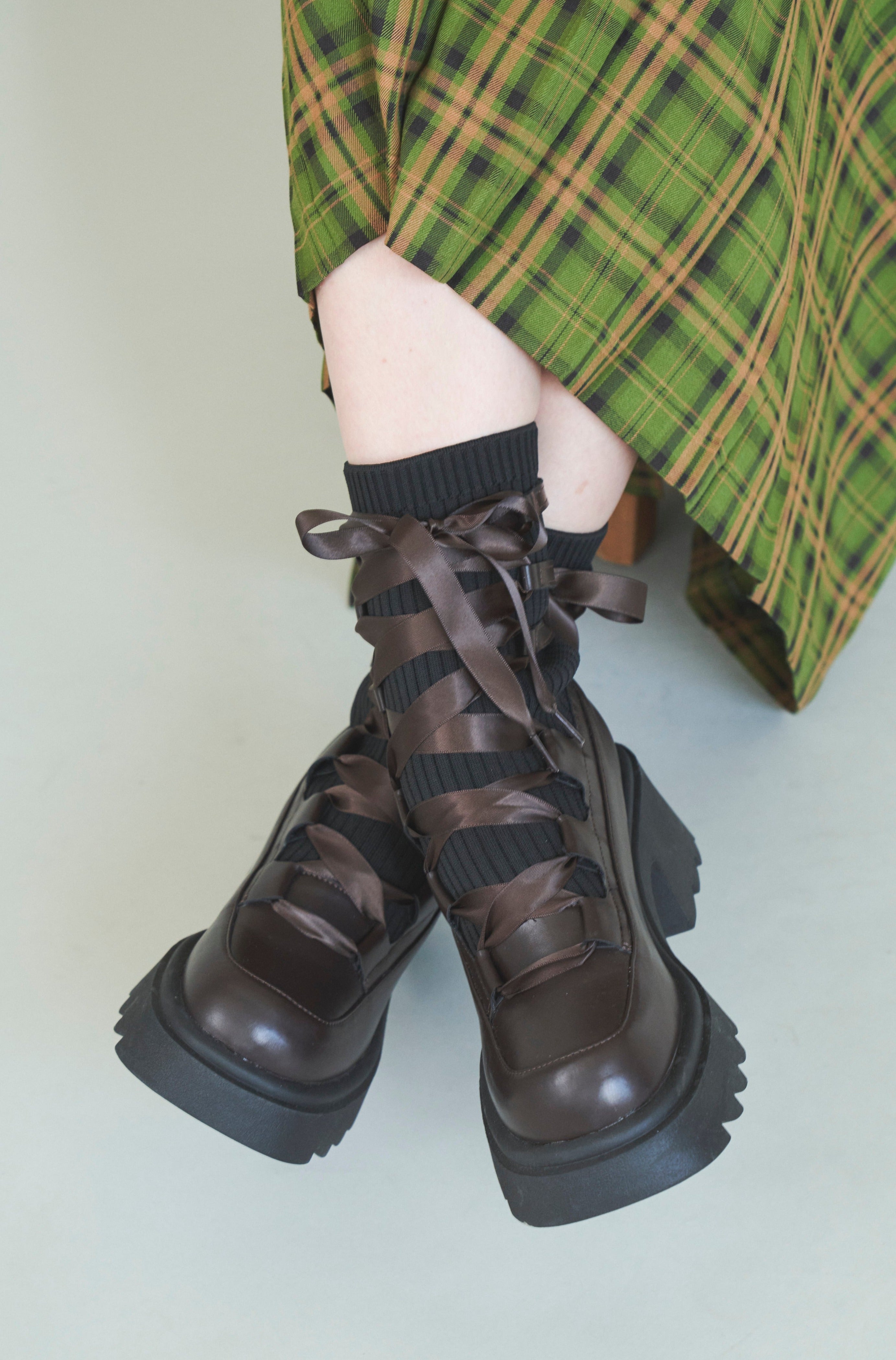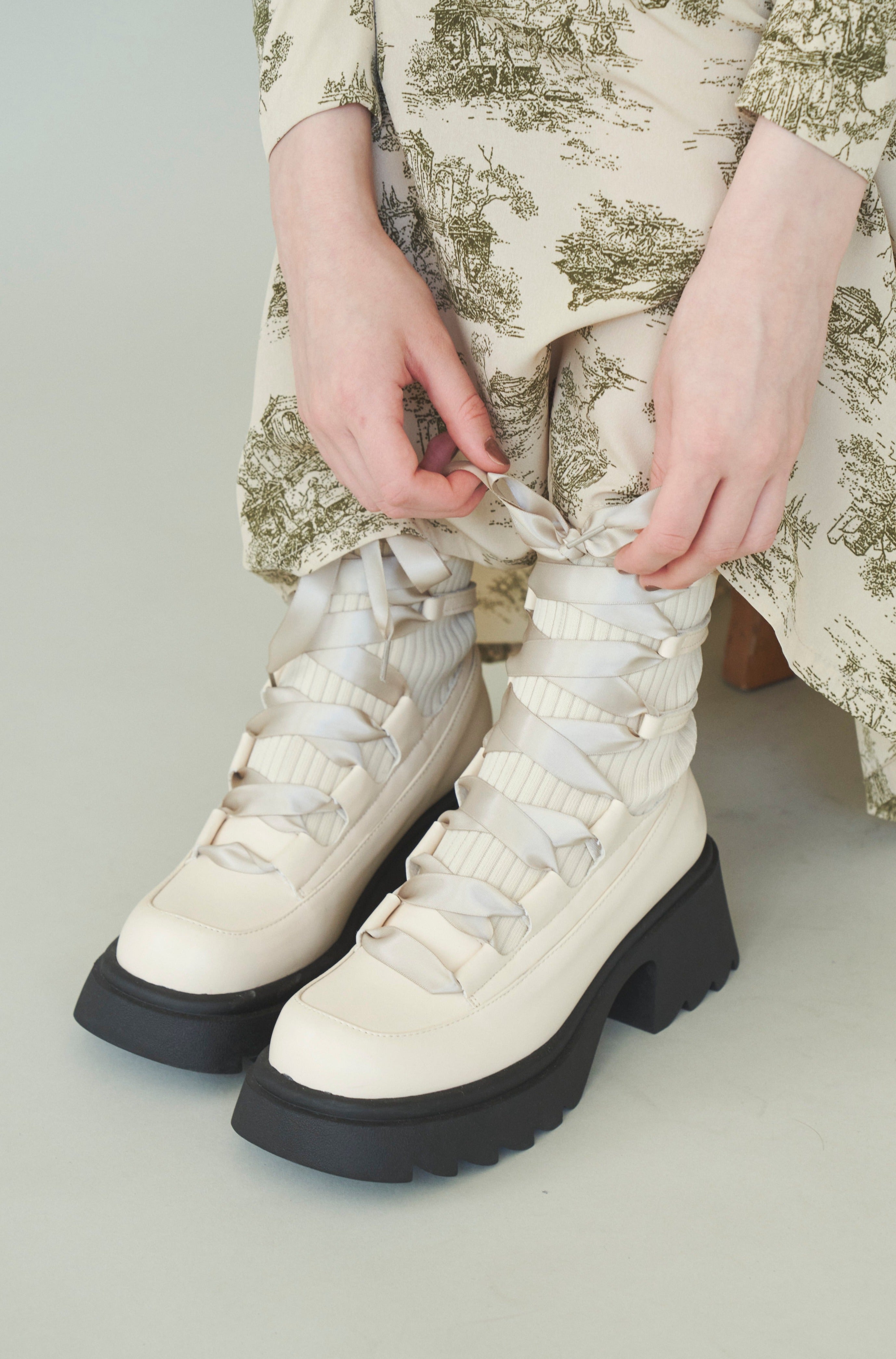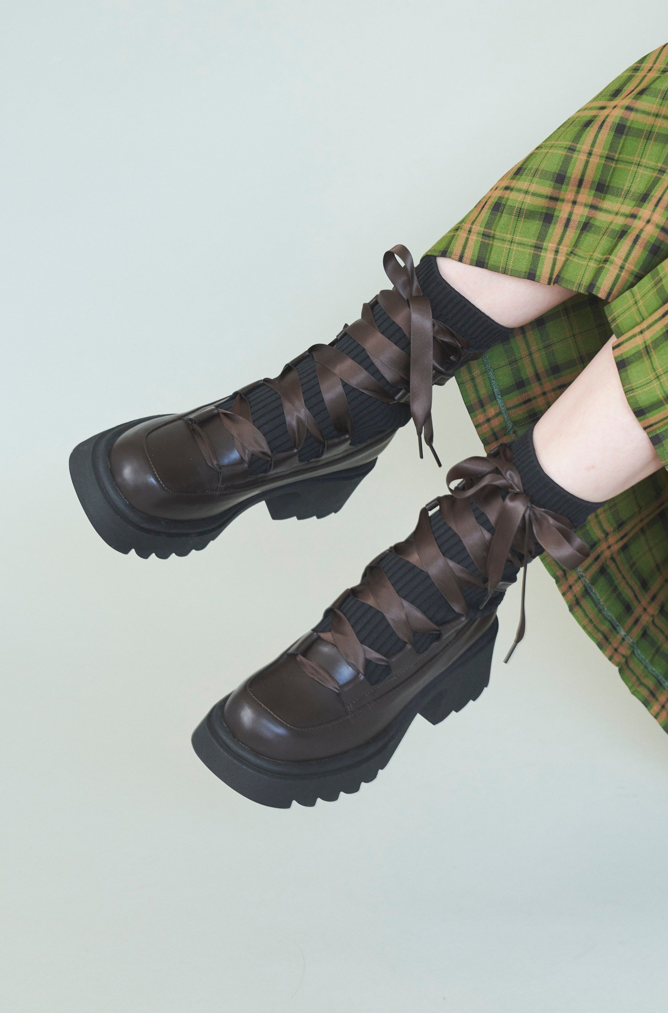 編み上げリボンと、ボリュームのある厚底。