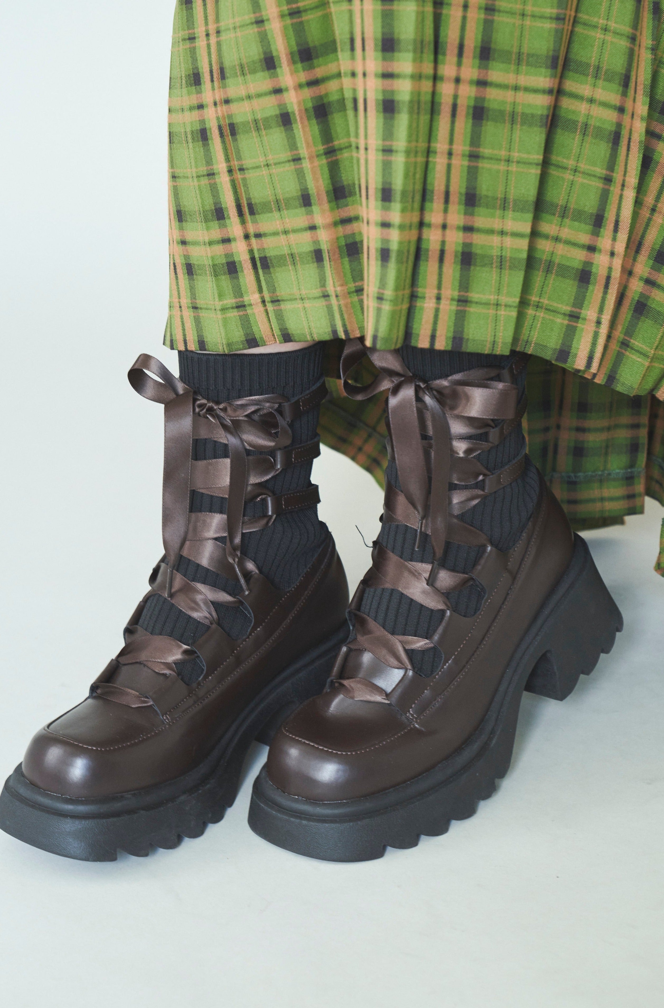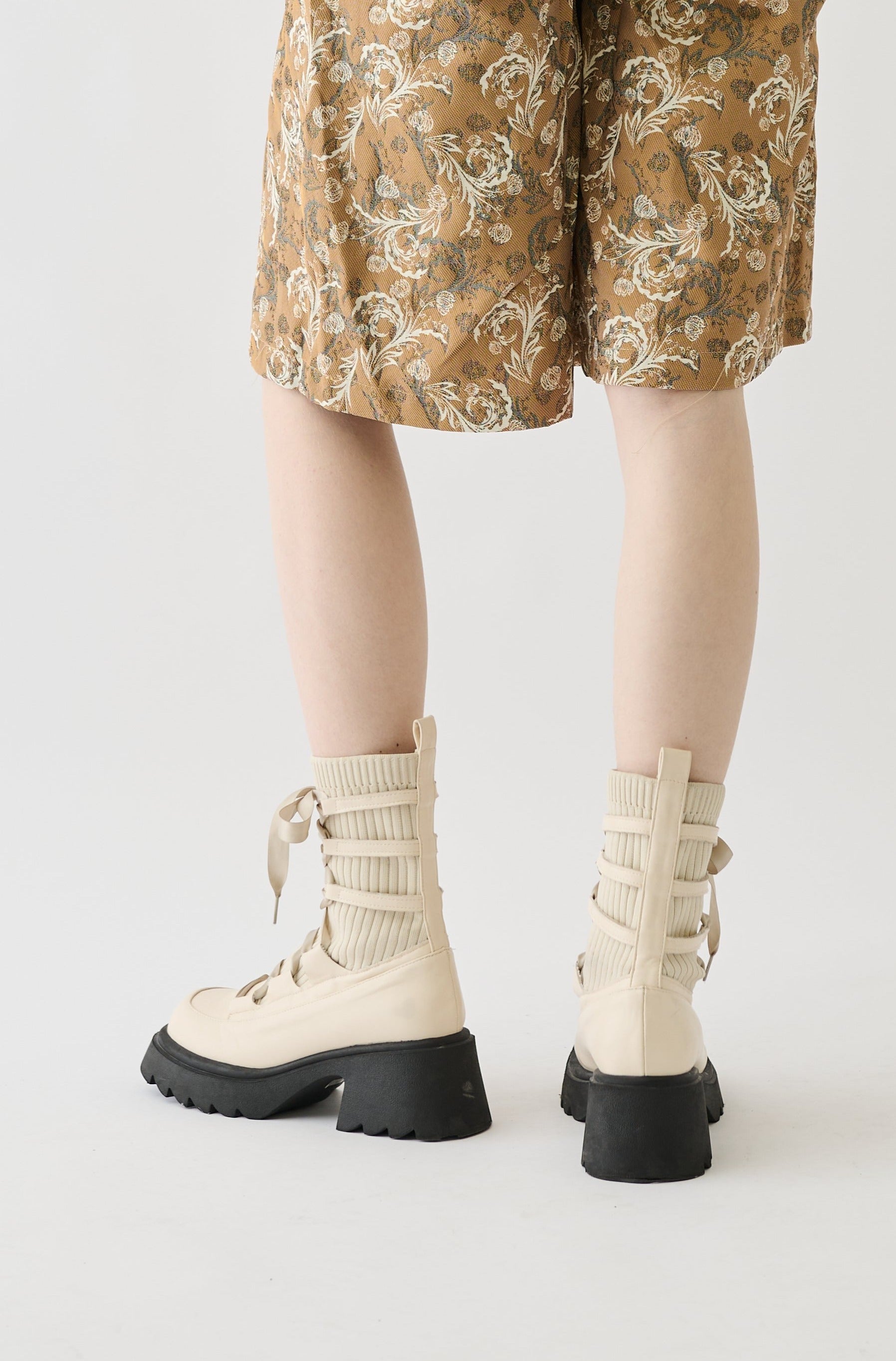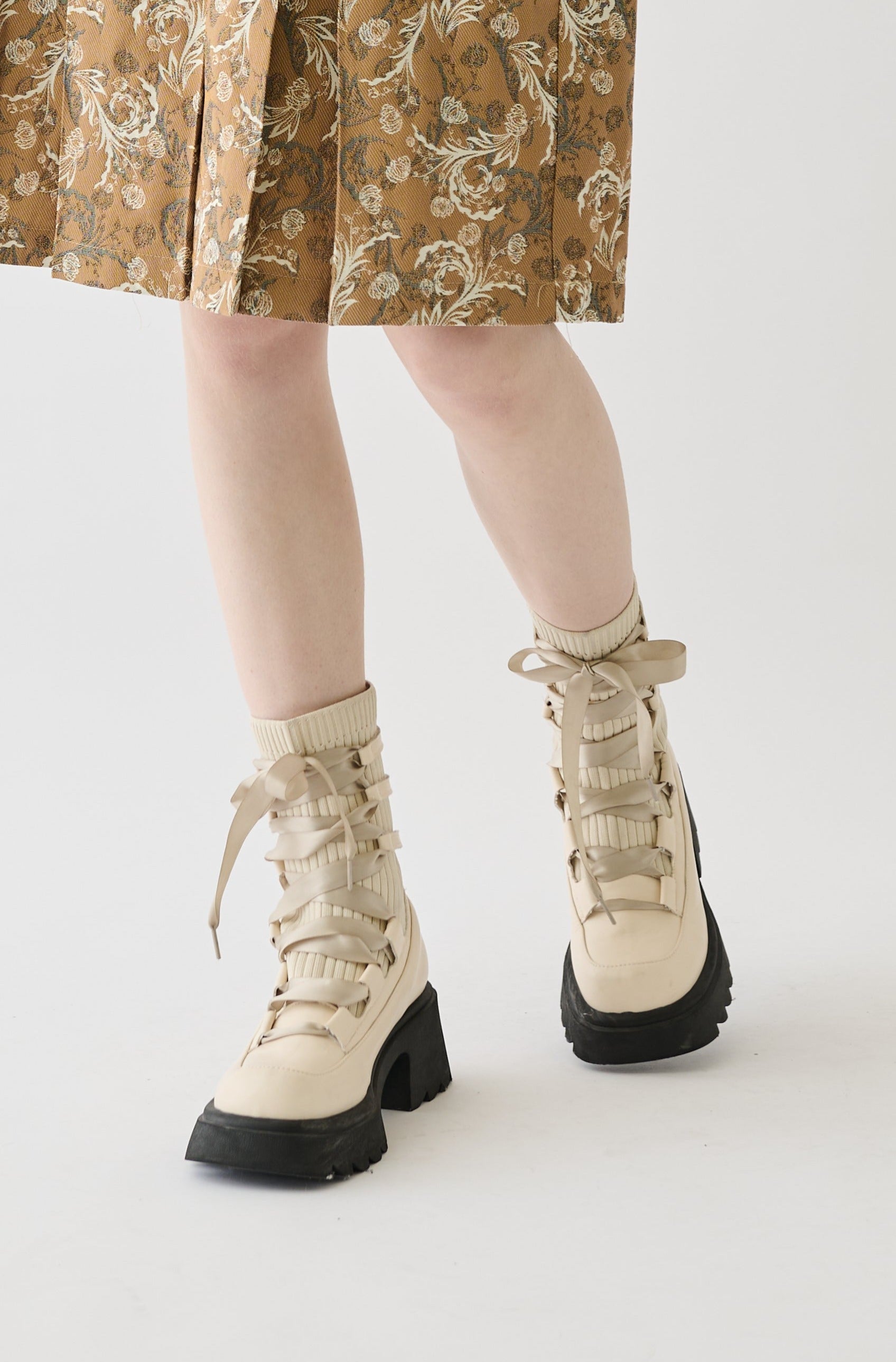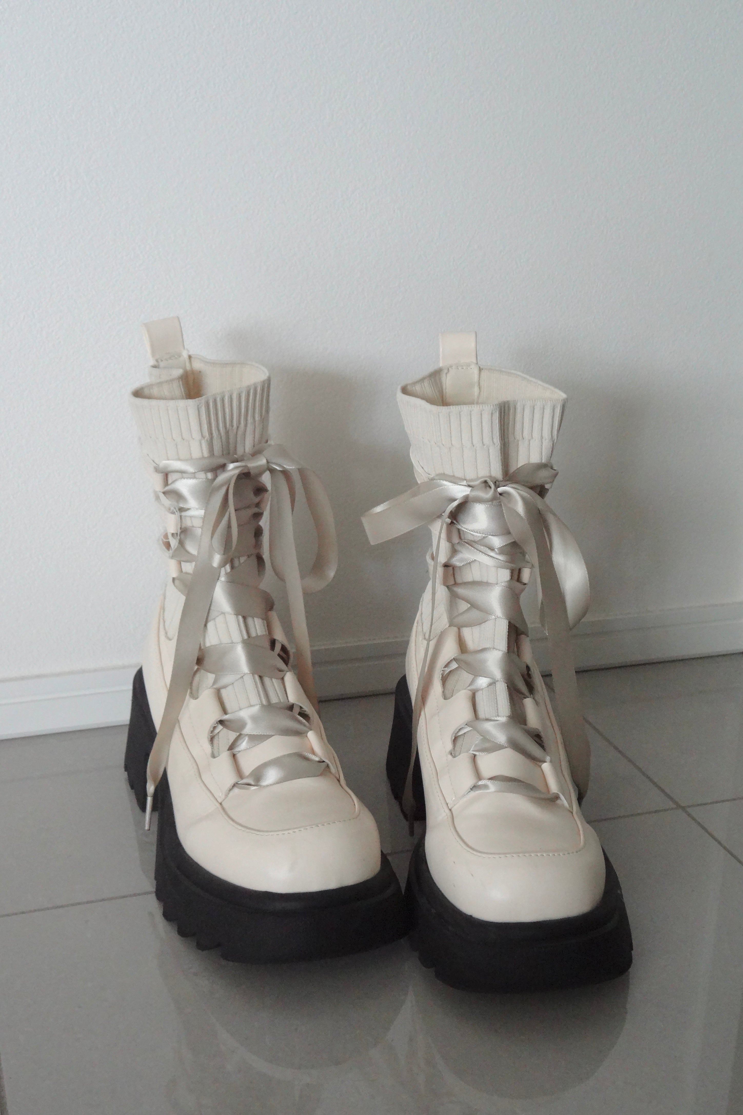 編み上げリボンと、ボリュームのある厚底。