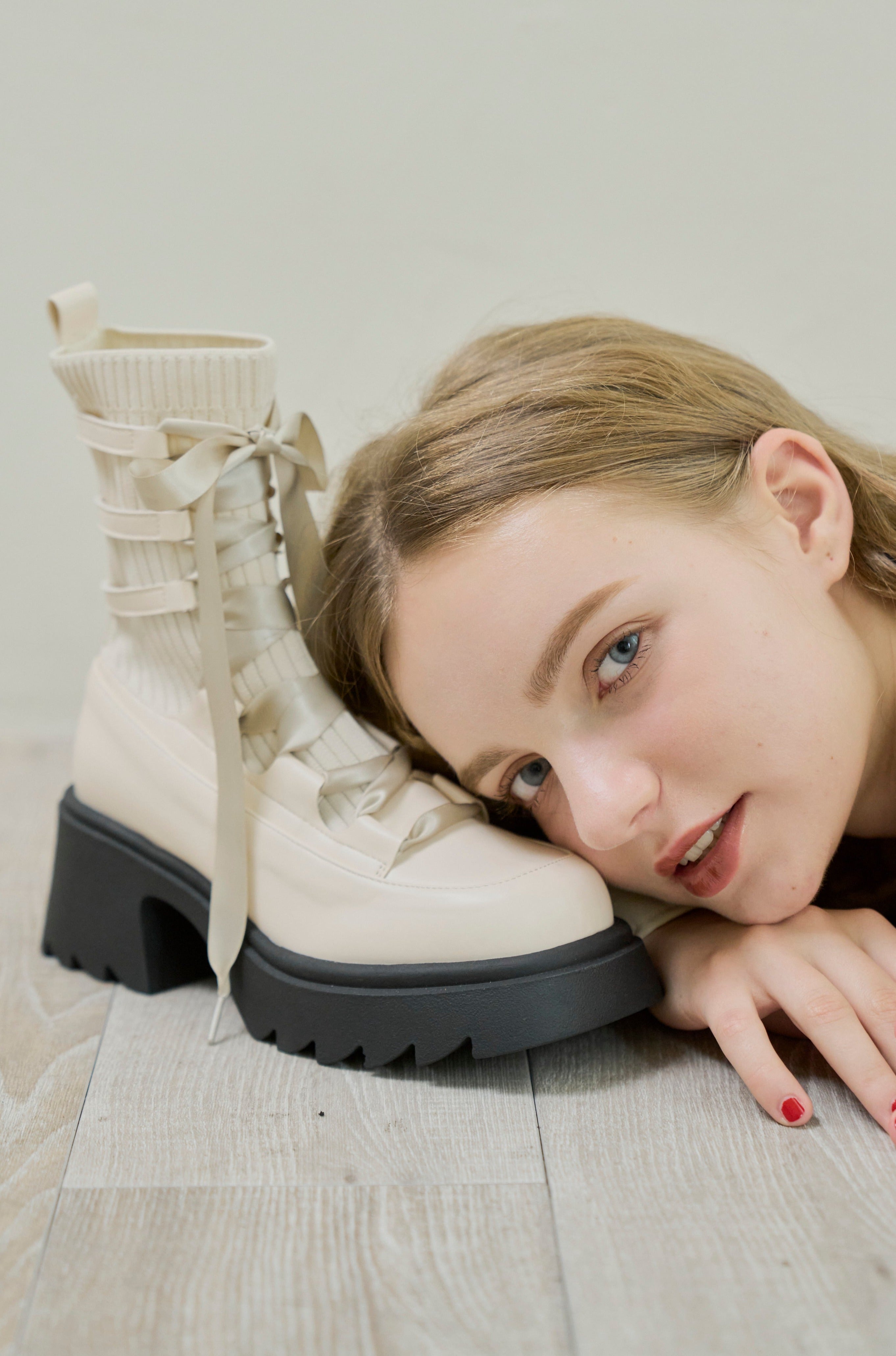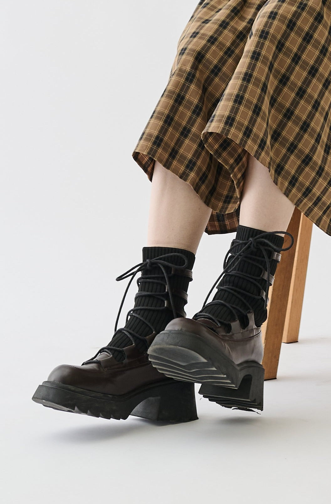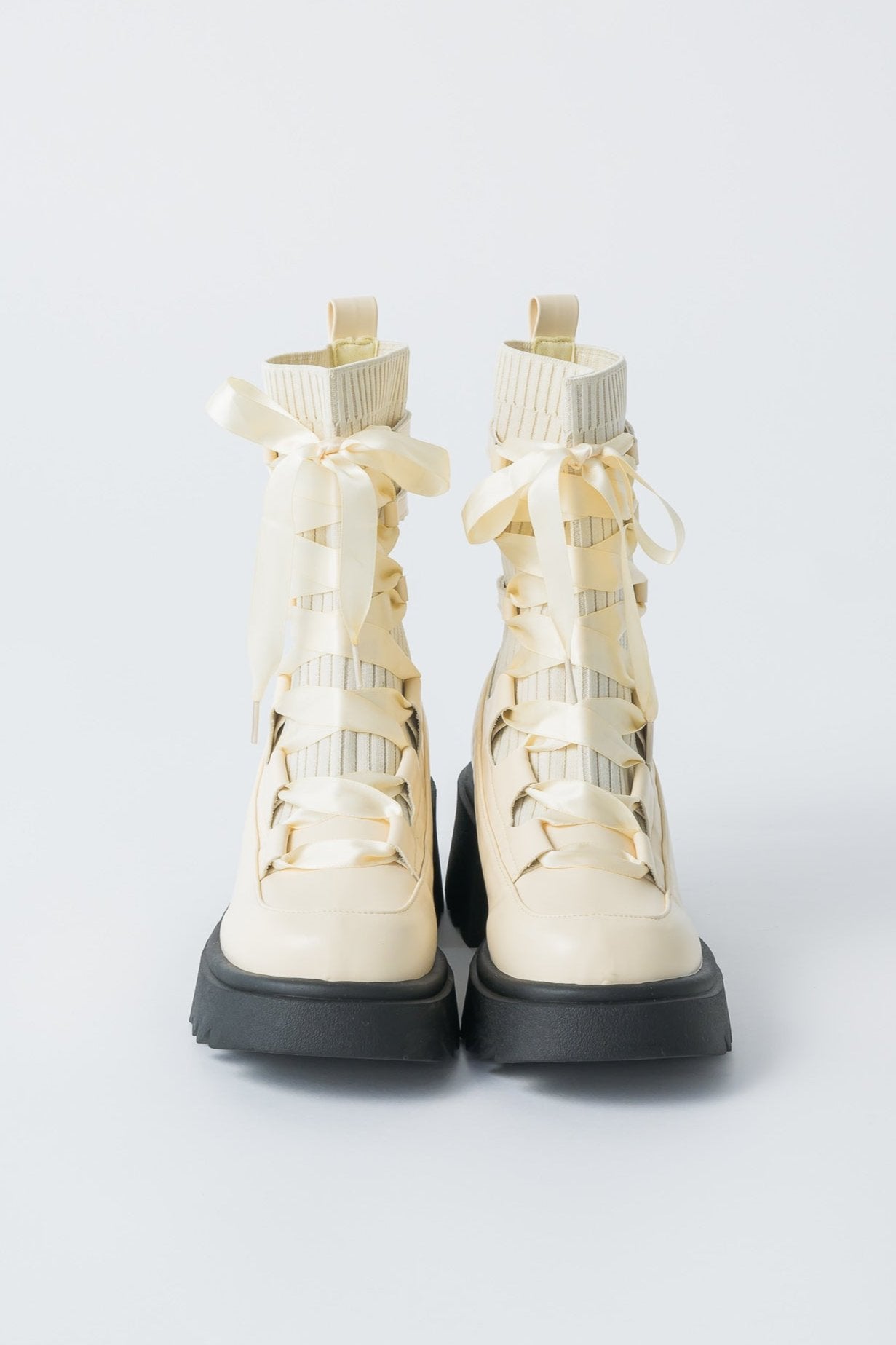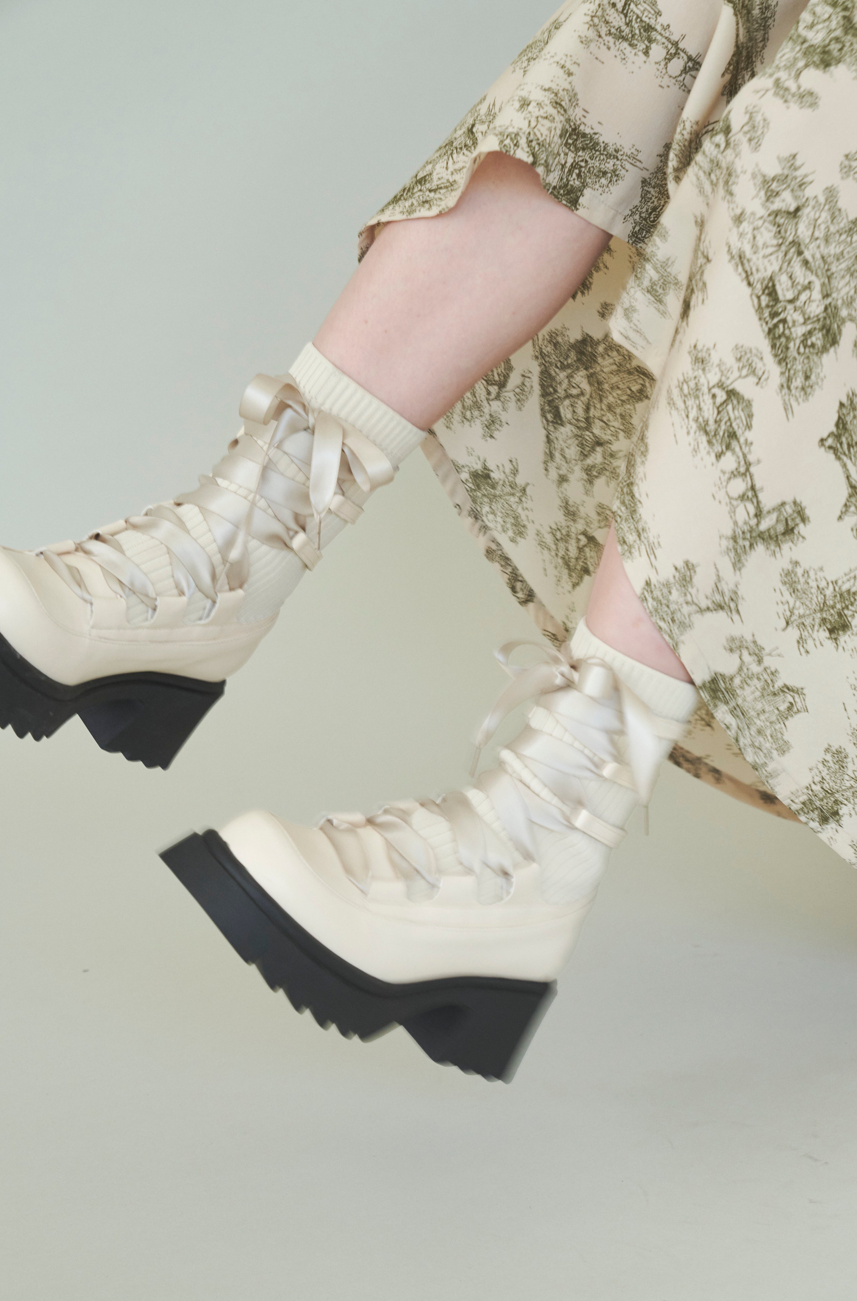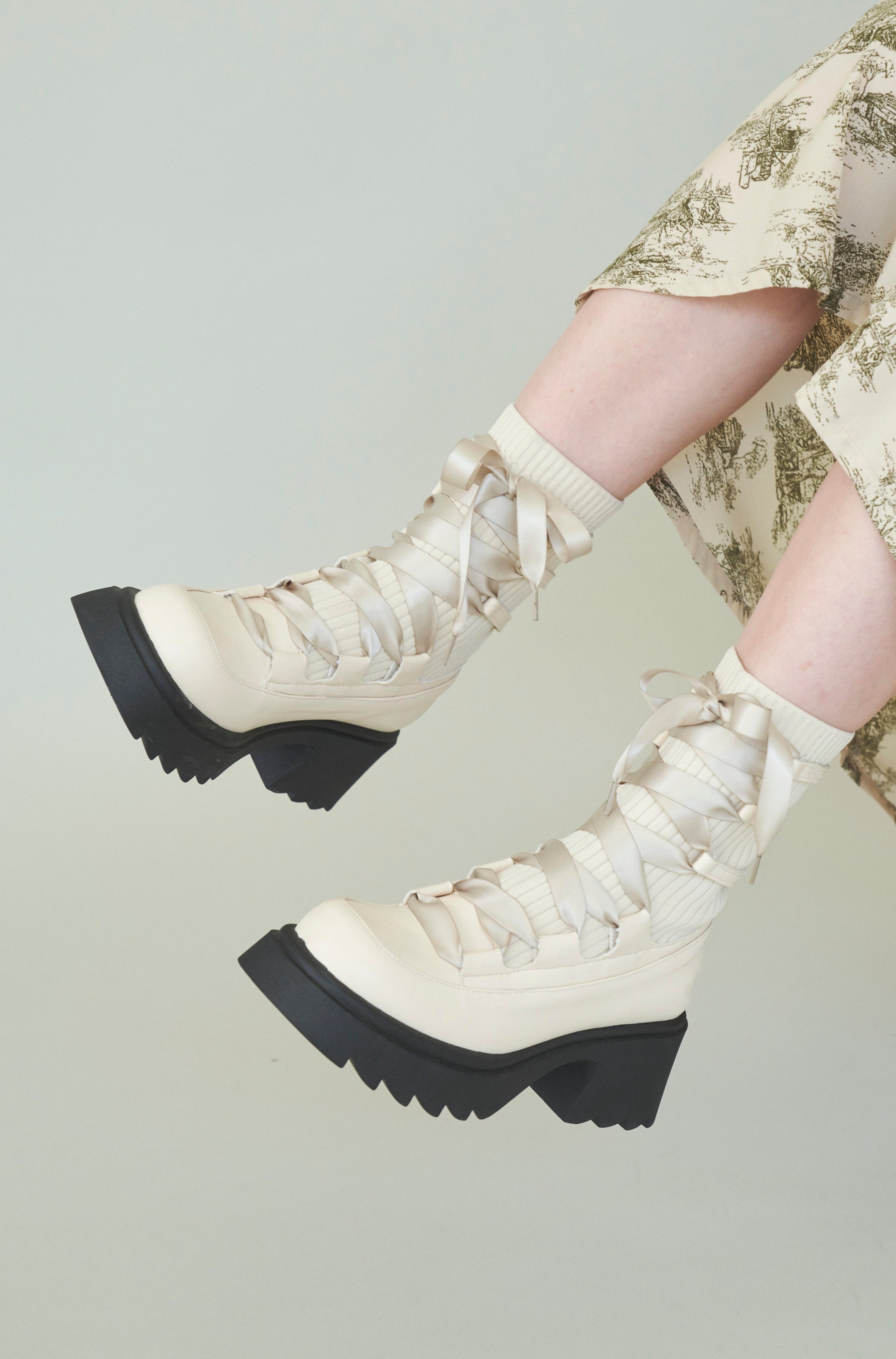 編み上げリボンと、ボリュームのある厚底。