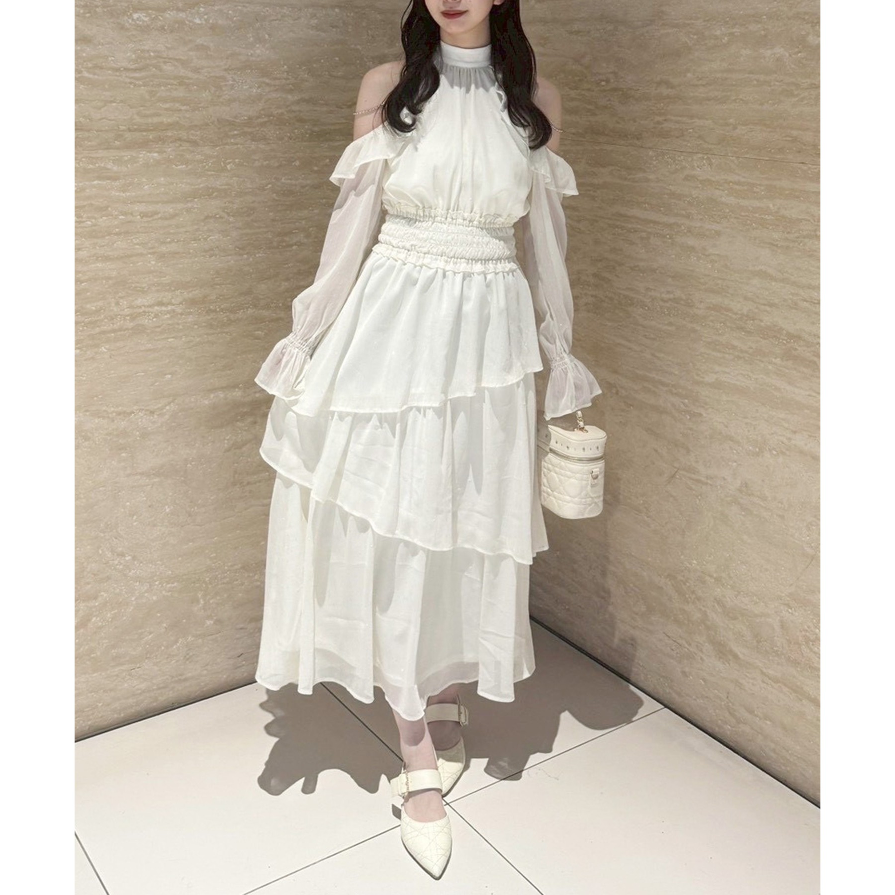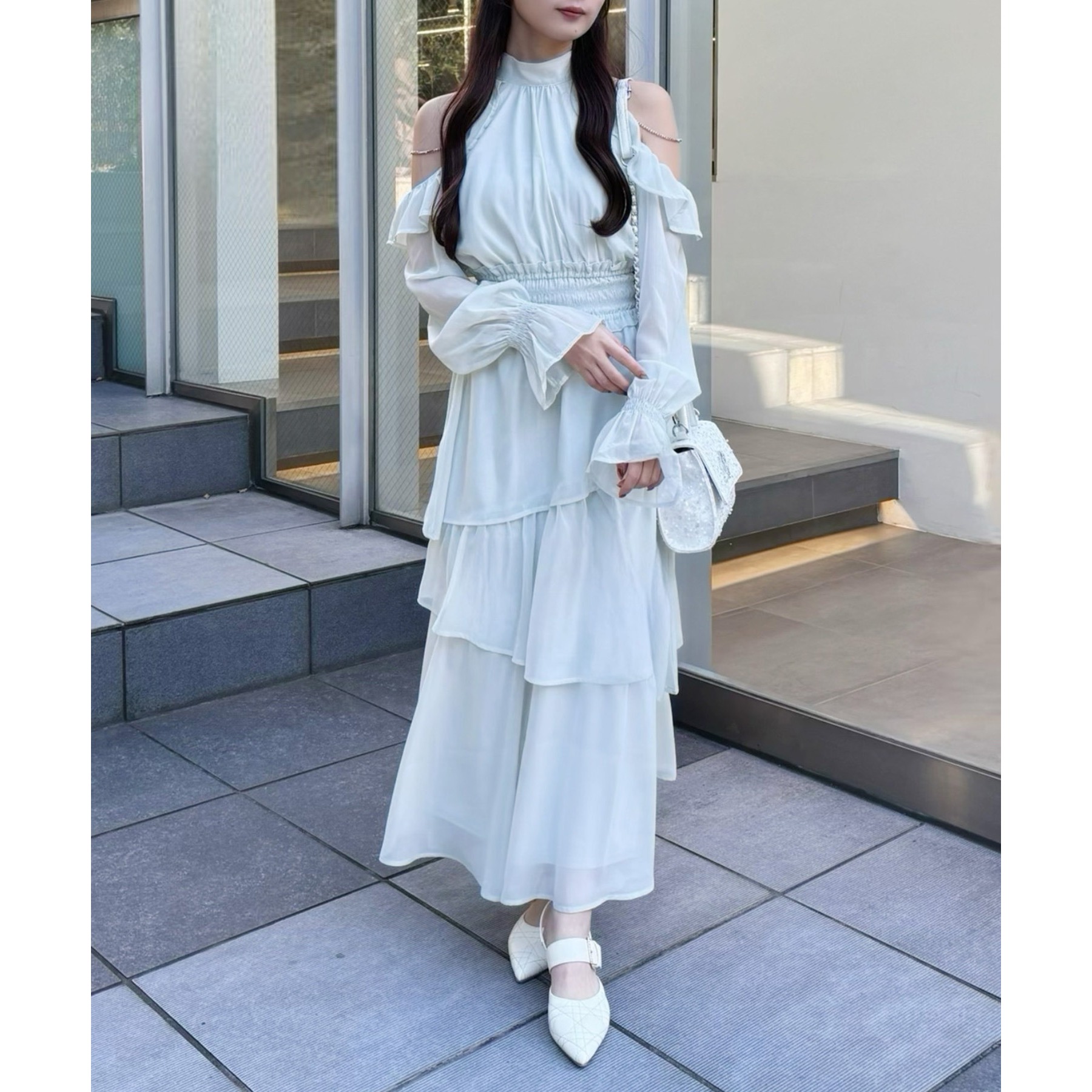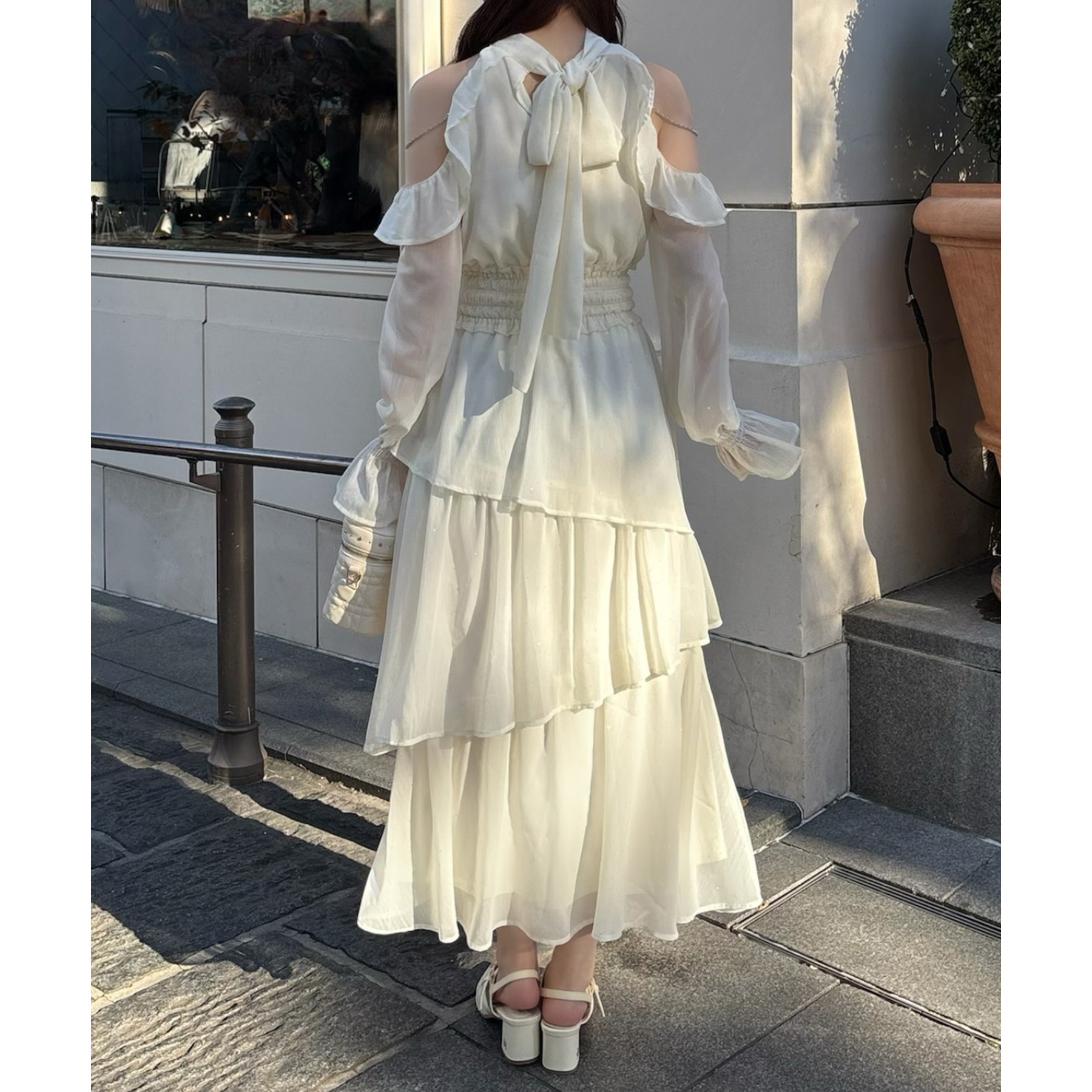 揺れ感が魅力のティアードロングワンピース。