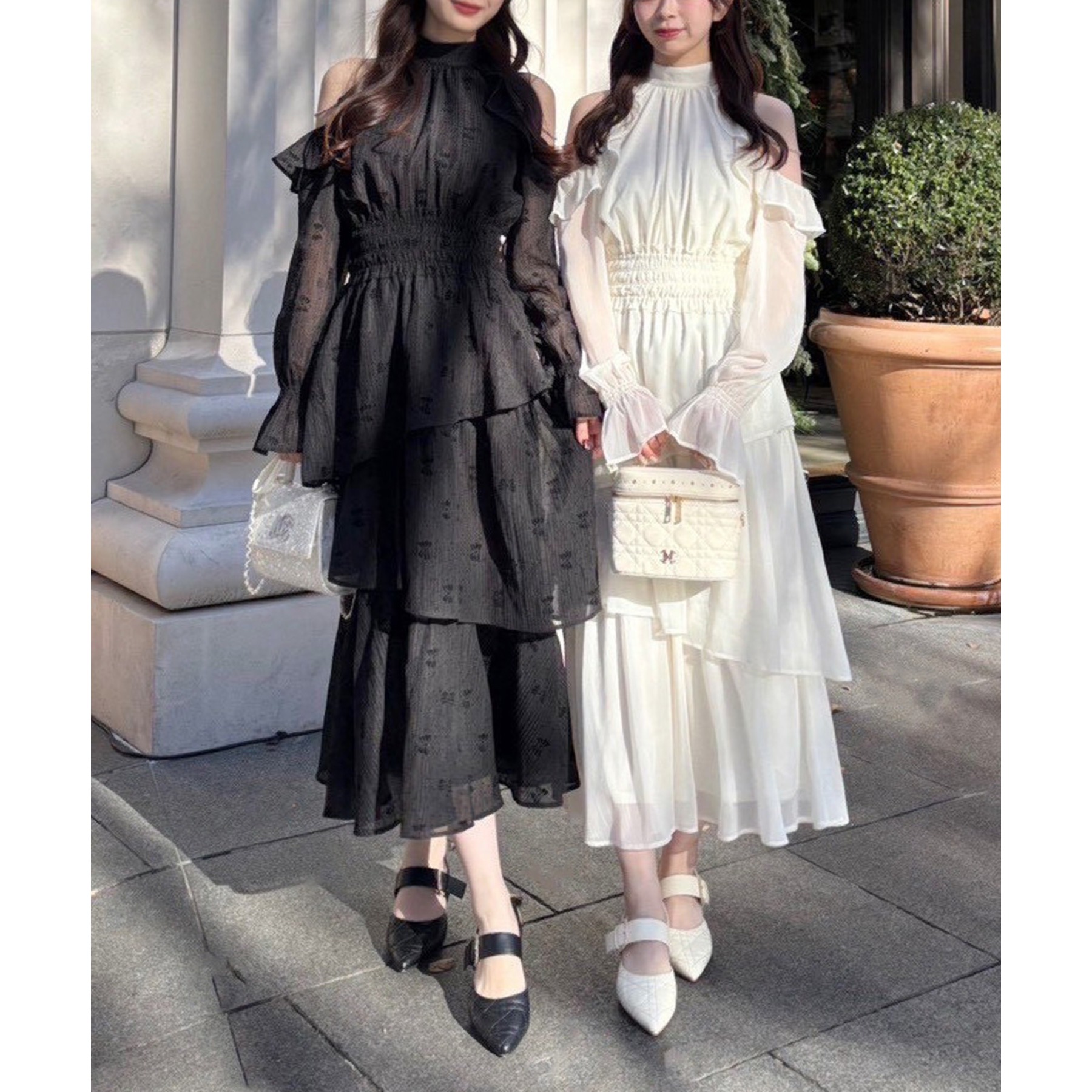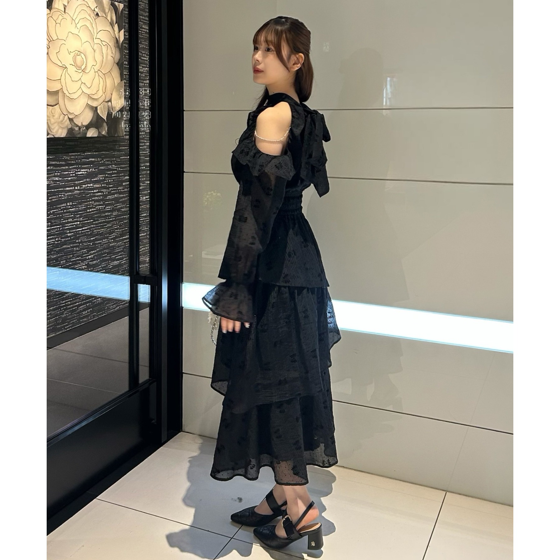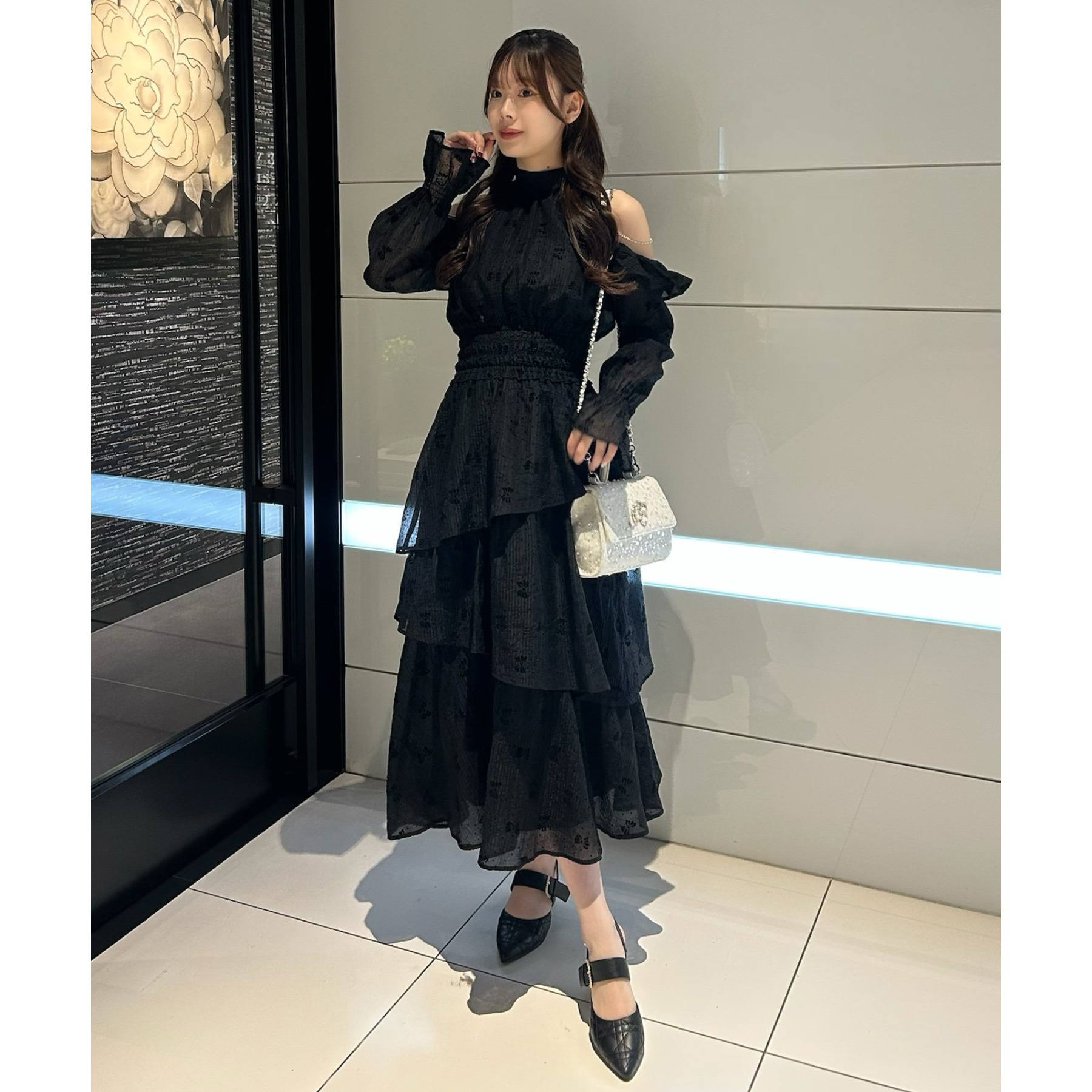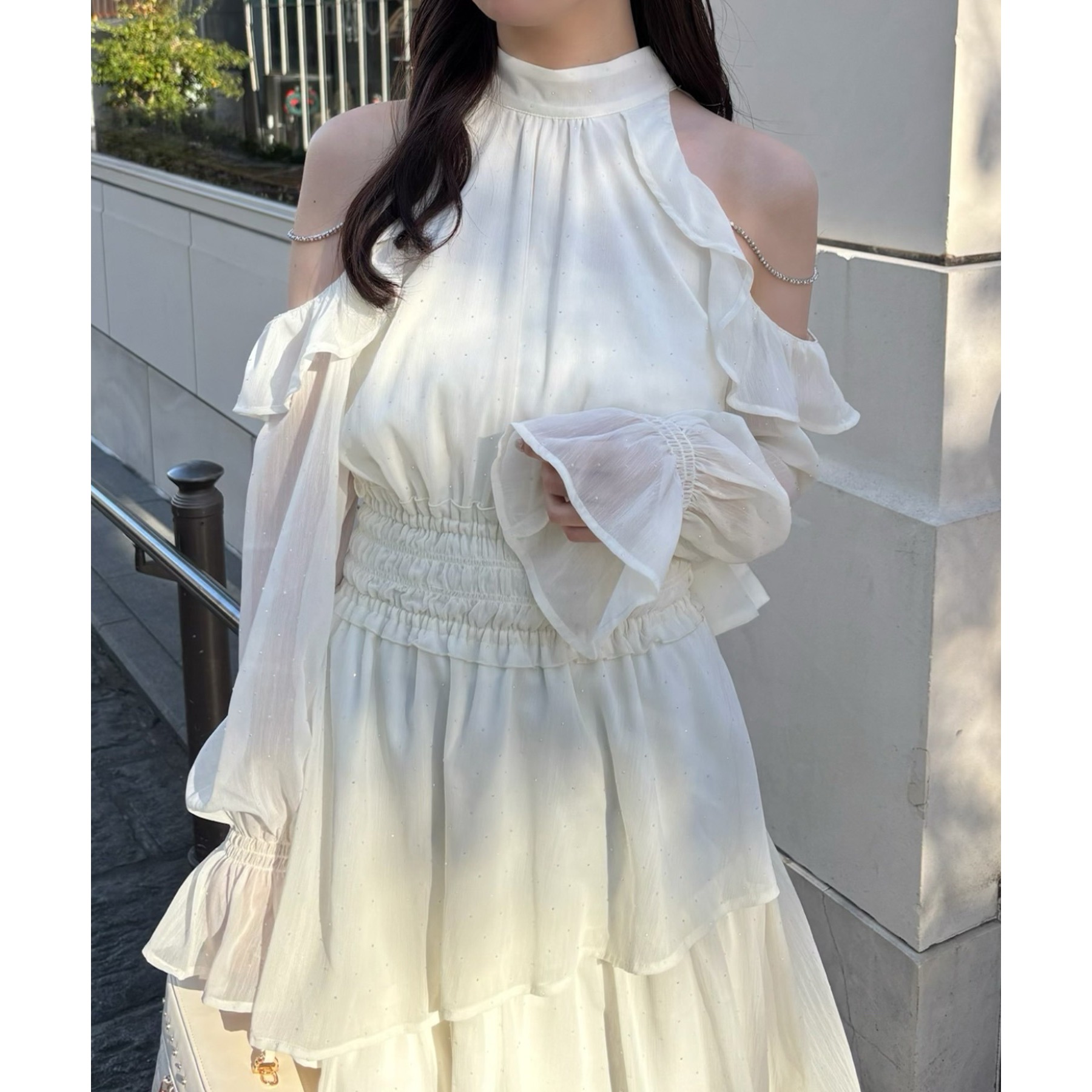 揺れ感が魅力のティアードロングワンピース。