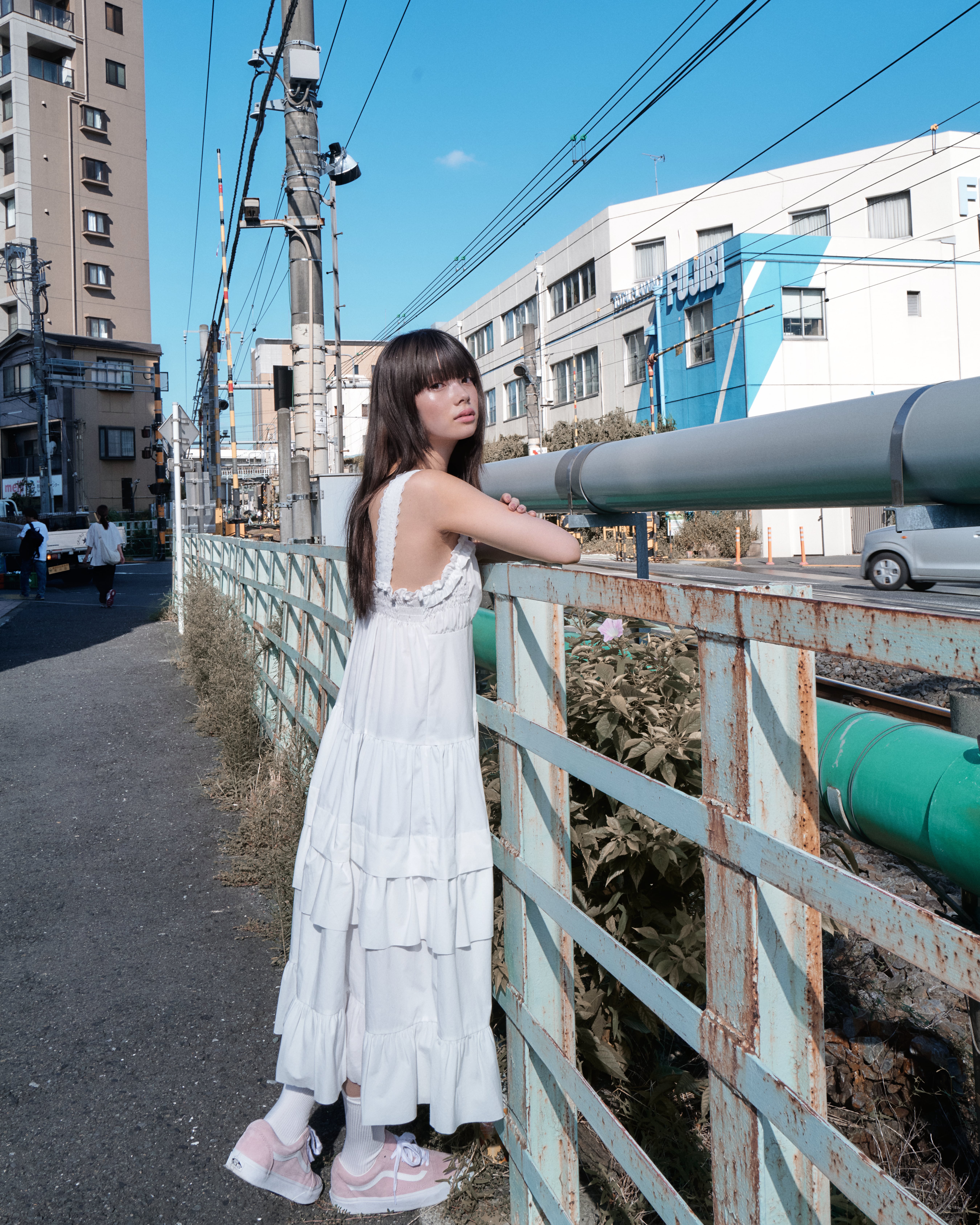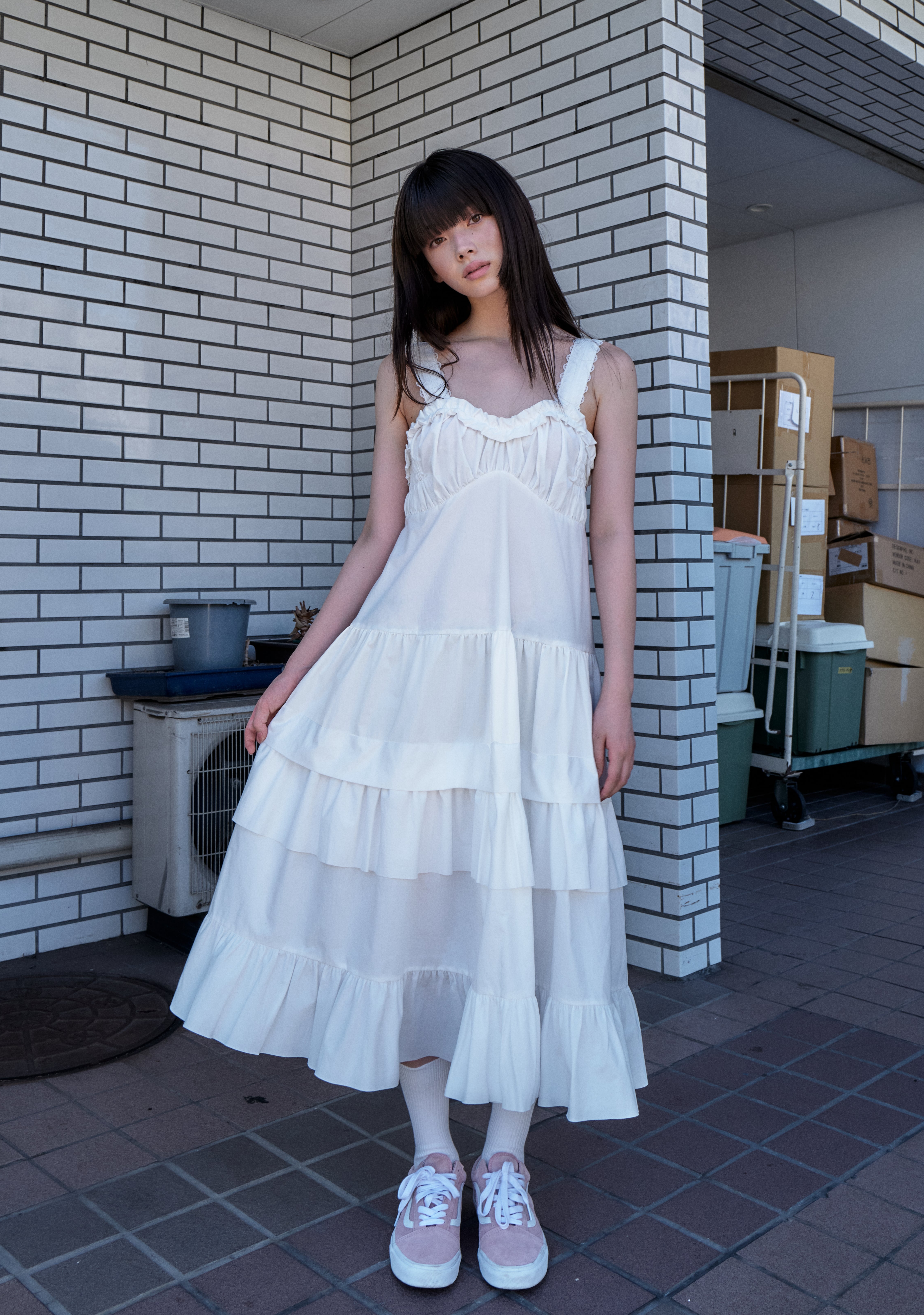 LACE STRAP RUFFLE LONG DRESS_OFF WHITE