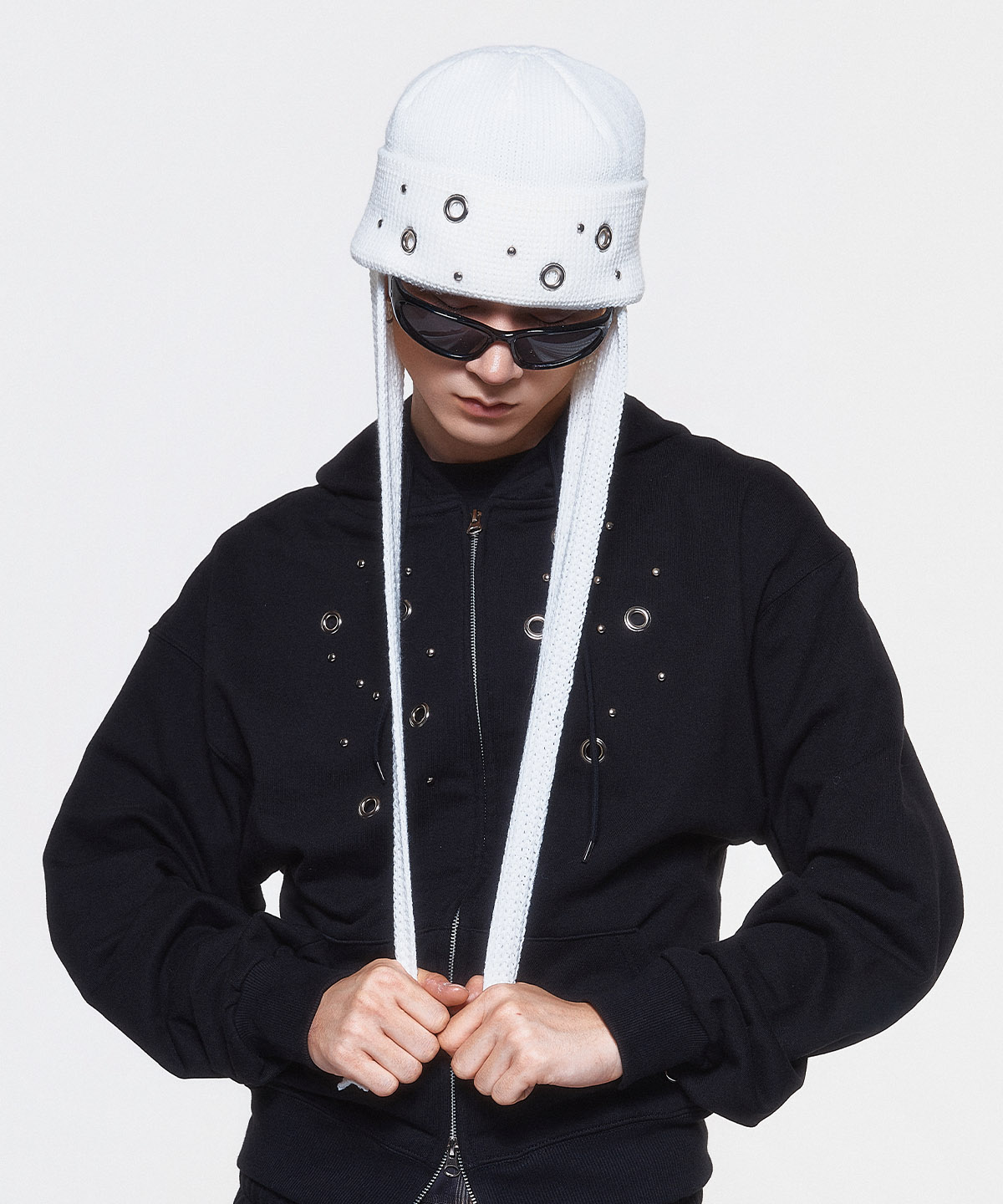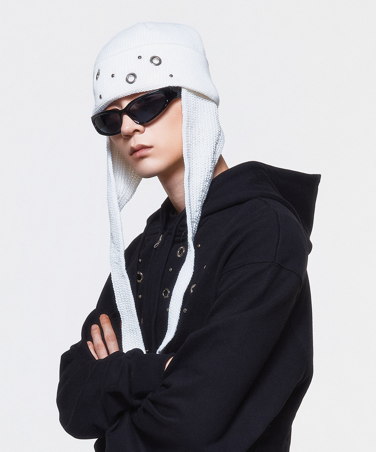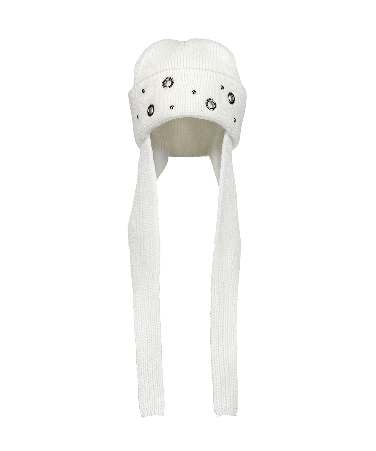 (DUC) Eyelet Stud Earflap Beanie White