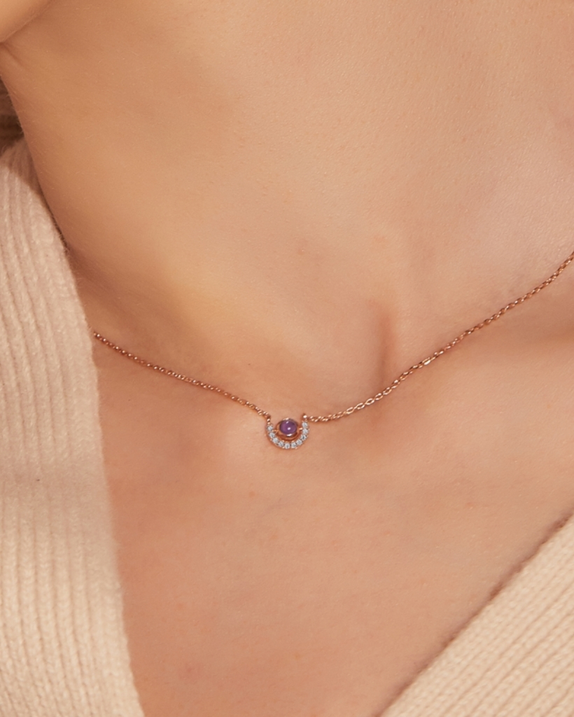 2月の誕生石デボンディディシルバーネックレス。2月の誕生石はアメジストです。