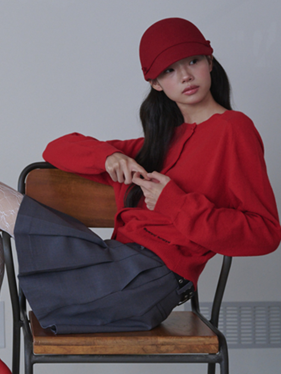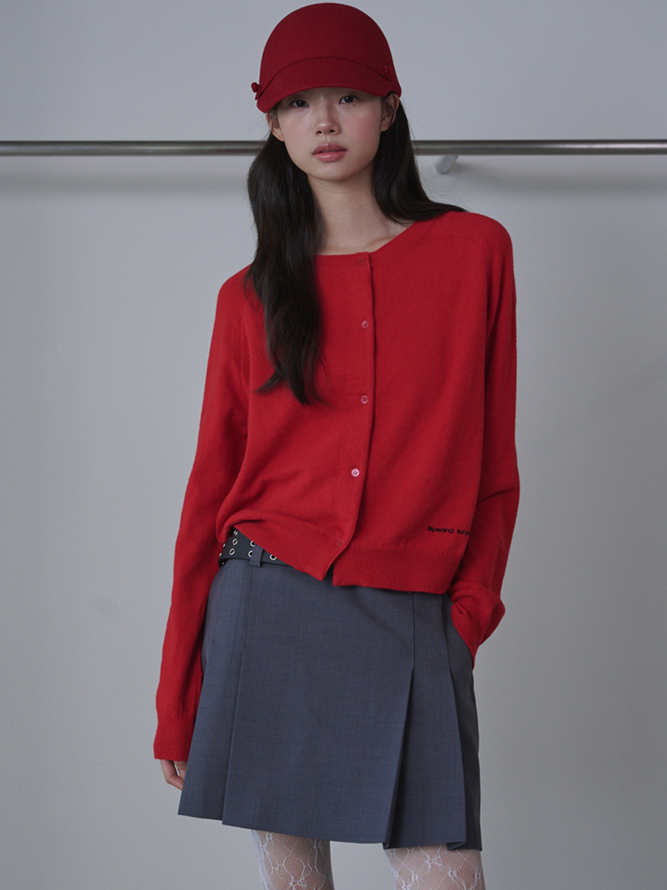 Round Neck Merino Wool Cardigan_Red