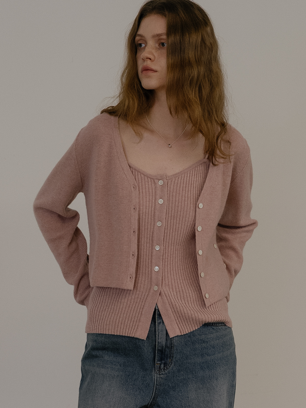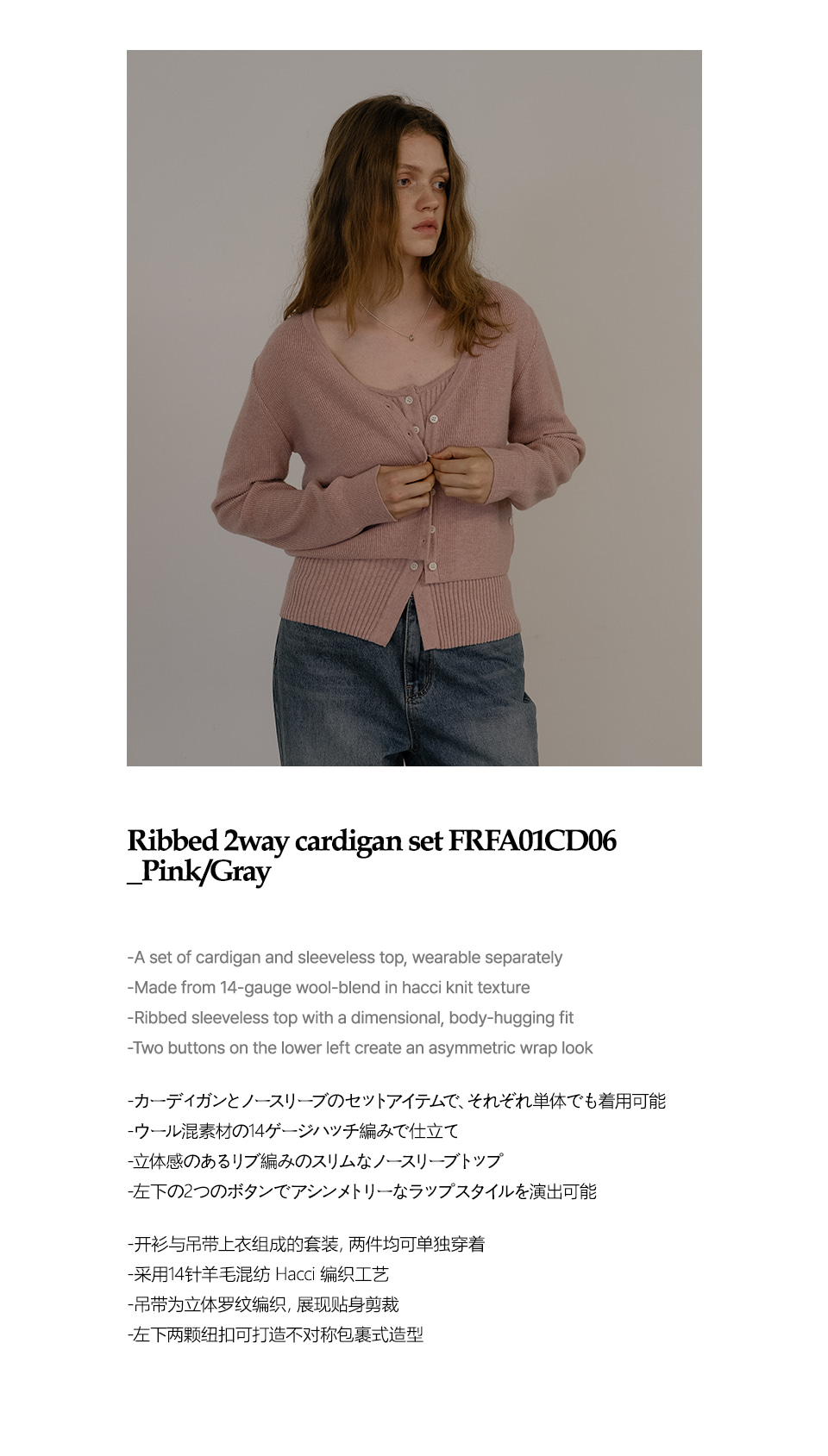 Ribbed 2way cardigan set FRFA01CD06_Pink