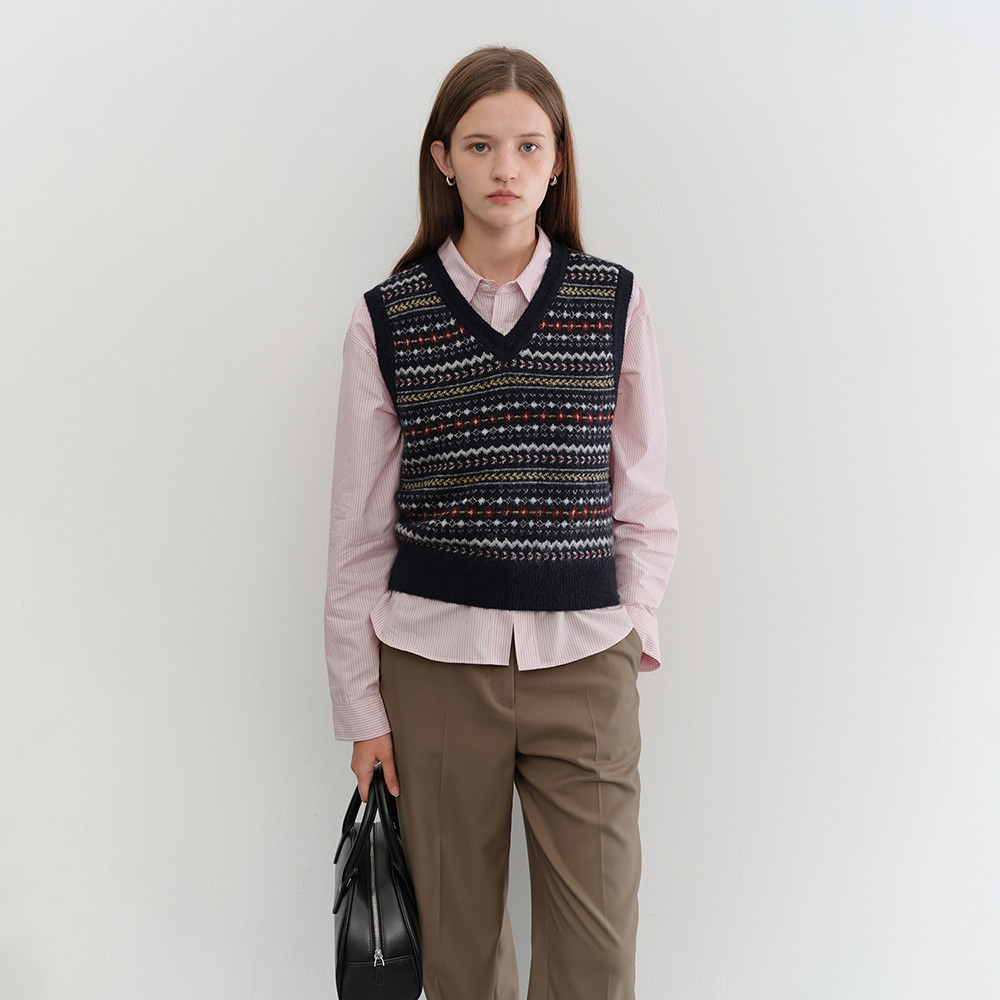 UNISEX CRAFTED V-NECK KNIT VEST NAVY_UDSW5C112N2