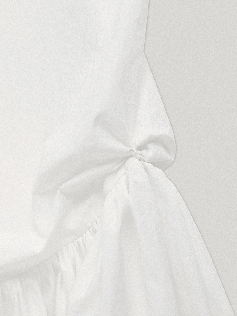 夏の日に吹くそよ風のように爽やかで、保護ストラップドレス。ガーリーなシルエットとミニマルなデザインが特徴の印象的なドレスです。夏の季節をさらに特別なものにするアイテムです。コットンとナイロンを混ぜた軽量素材で作られ、快適で涼しい生地で仕上げられています。薄いショルダーストラップは調整可能で、ウエスト下まで広がるフレアラインのシルエットは、動くたびに目を引きつけます。シルエットにより構造的でドラマチックな効果を加えています。背中にはスカイブルーのスムームードイタリックロゴが刺繍されており、控えめなアクセントとコレクターズ価値を高めています。清潔感のあるジッパーのディテールも丁寧に仕上げられています。Tシャツやノースリーブと重ねて、夏に軽やかに新鮮に楽しむ夏に軽やかに楽しめます。コットン 65% ナイロン 35% サイドピンタック ディテール ミディレングス 調整可能なショルダーストラップ スムームードイタリックロゴ刺繍