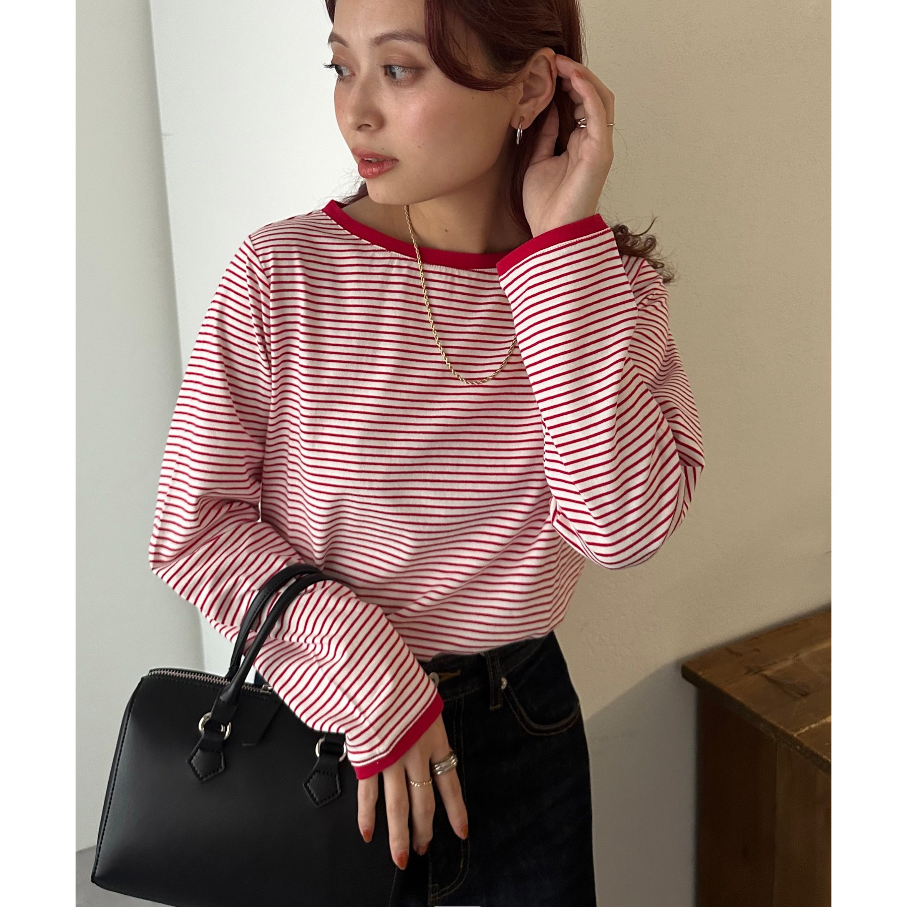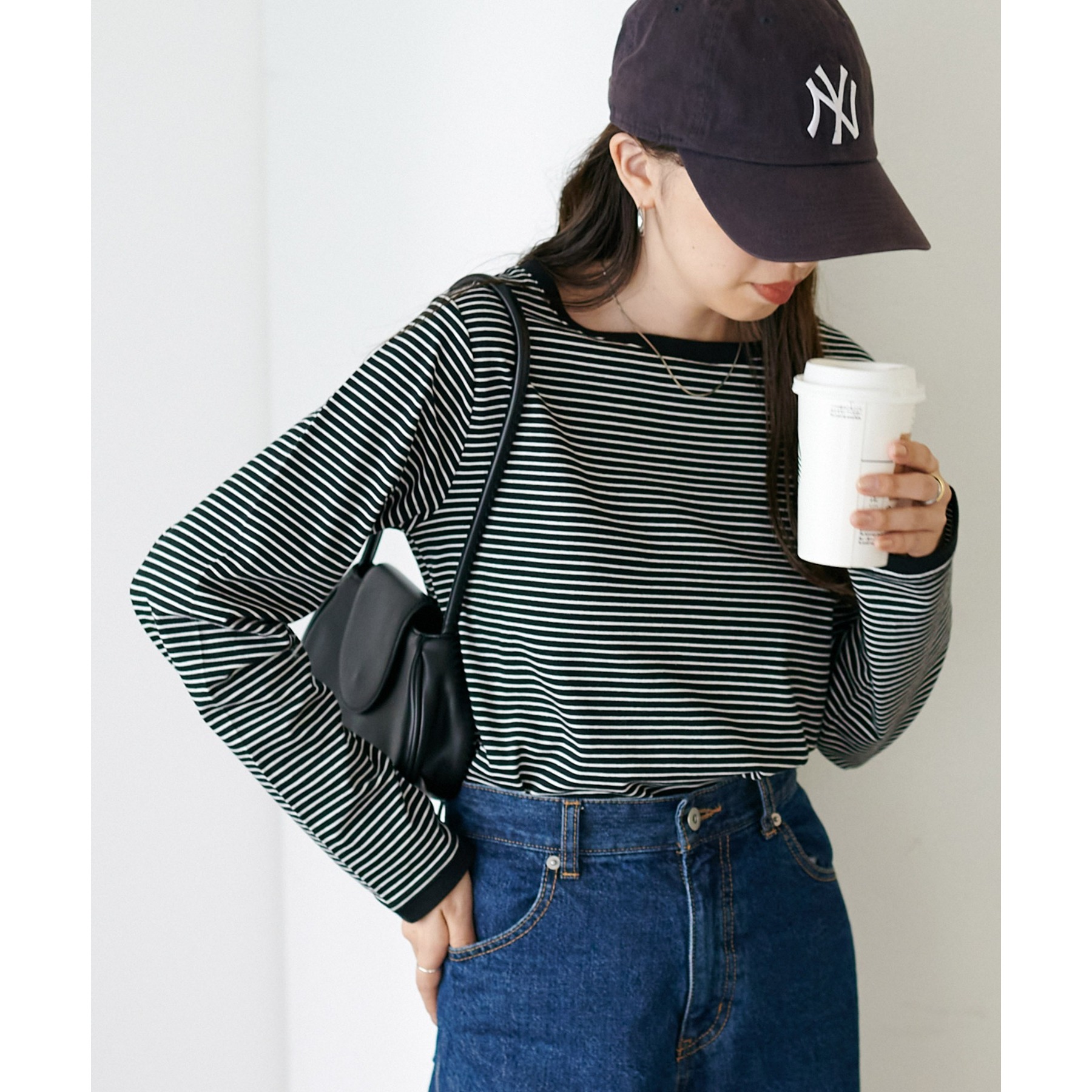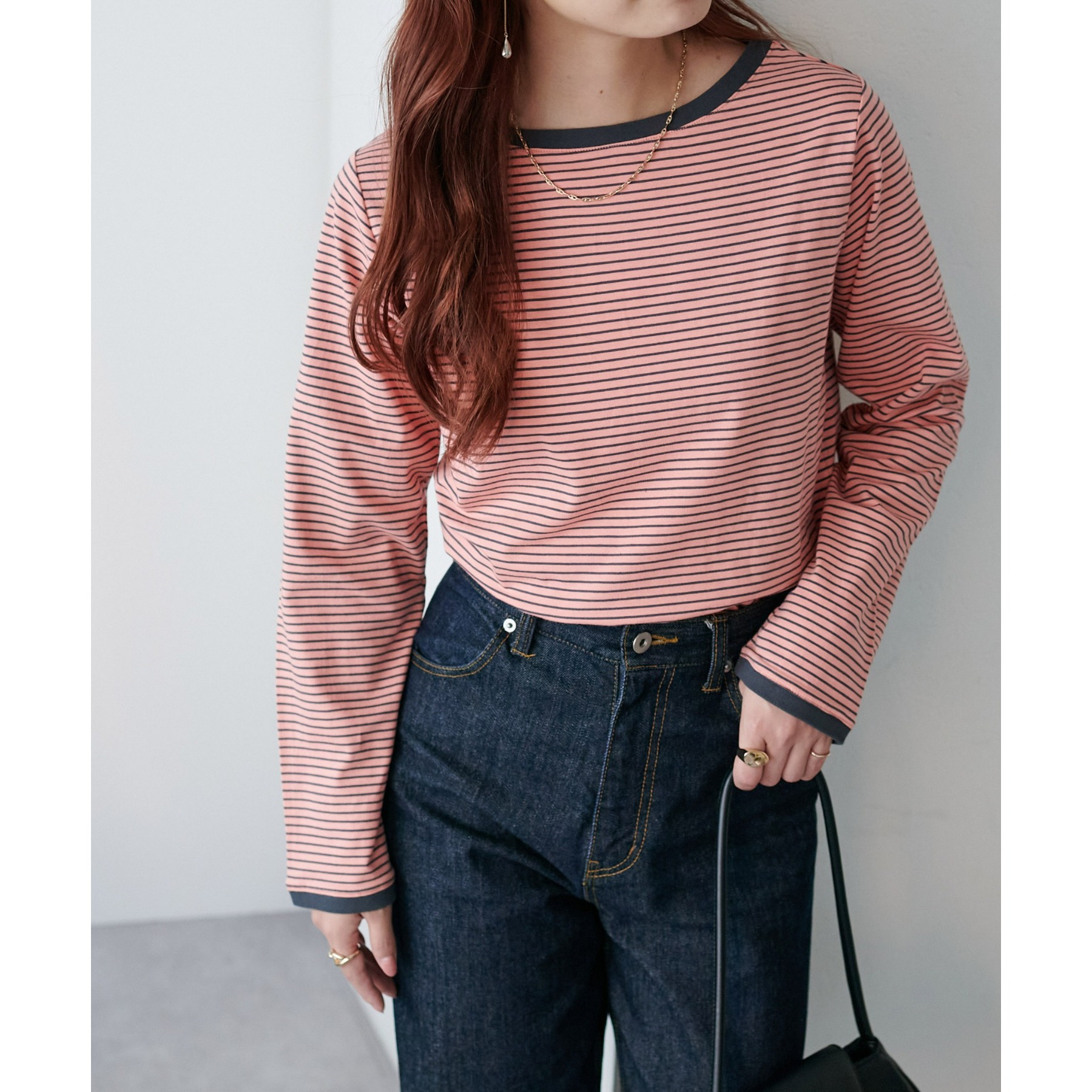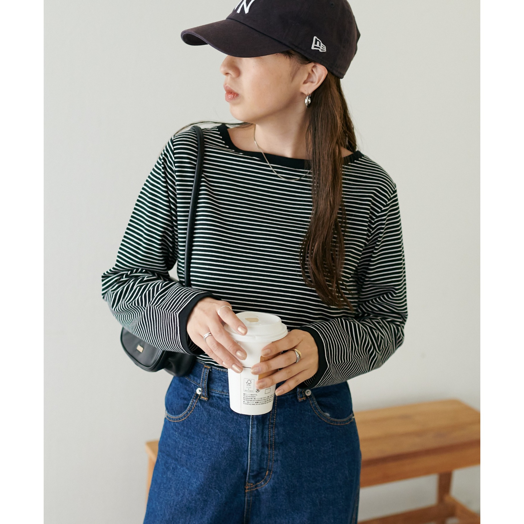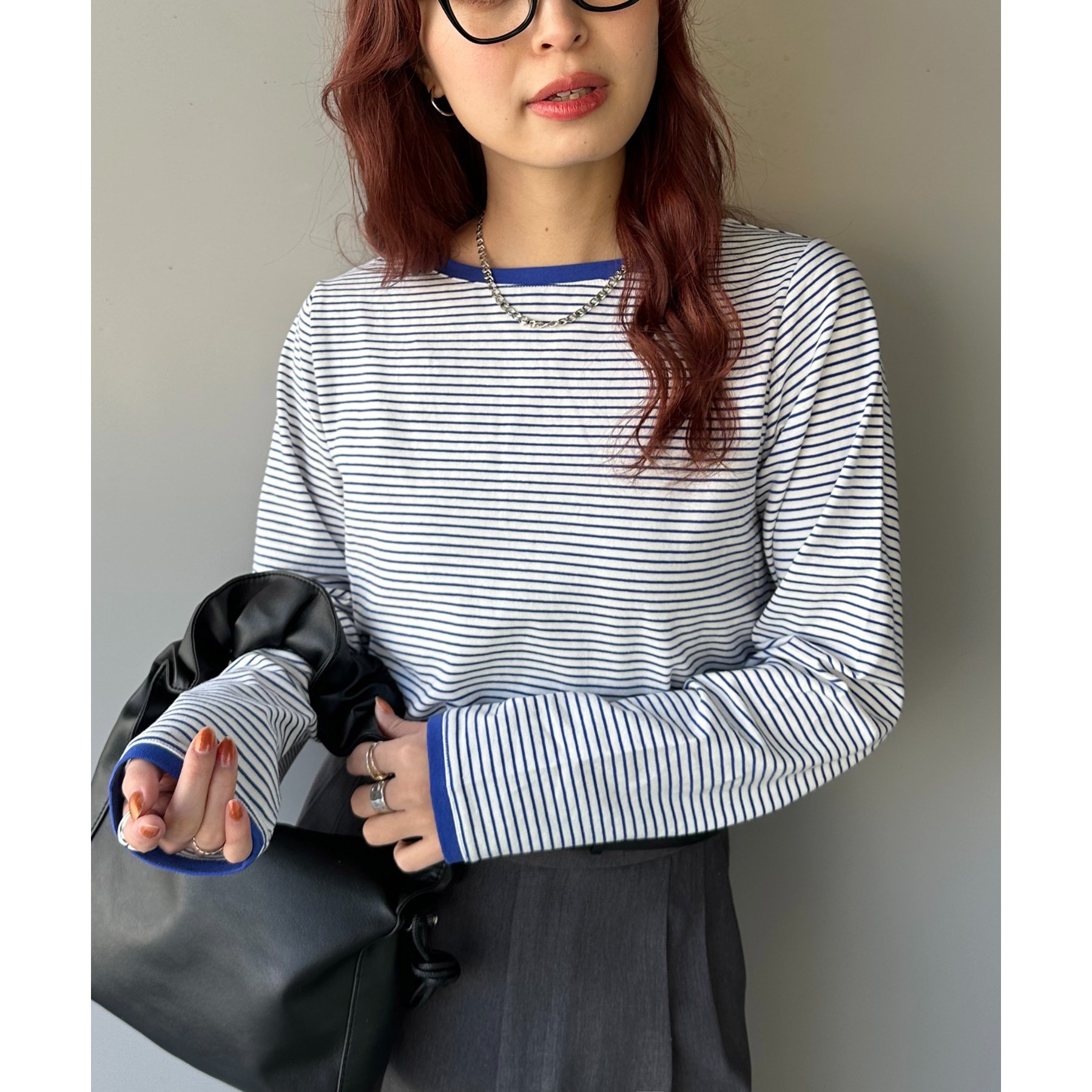 ・細めのピッチで仕上げた旬のボーダー柄と配色使いでアクセントをプラス