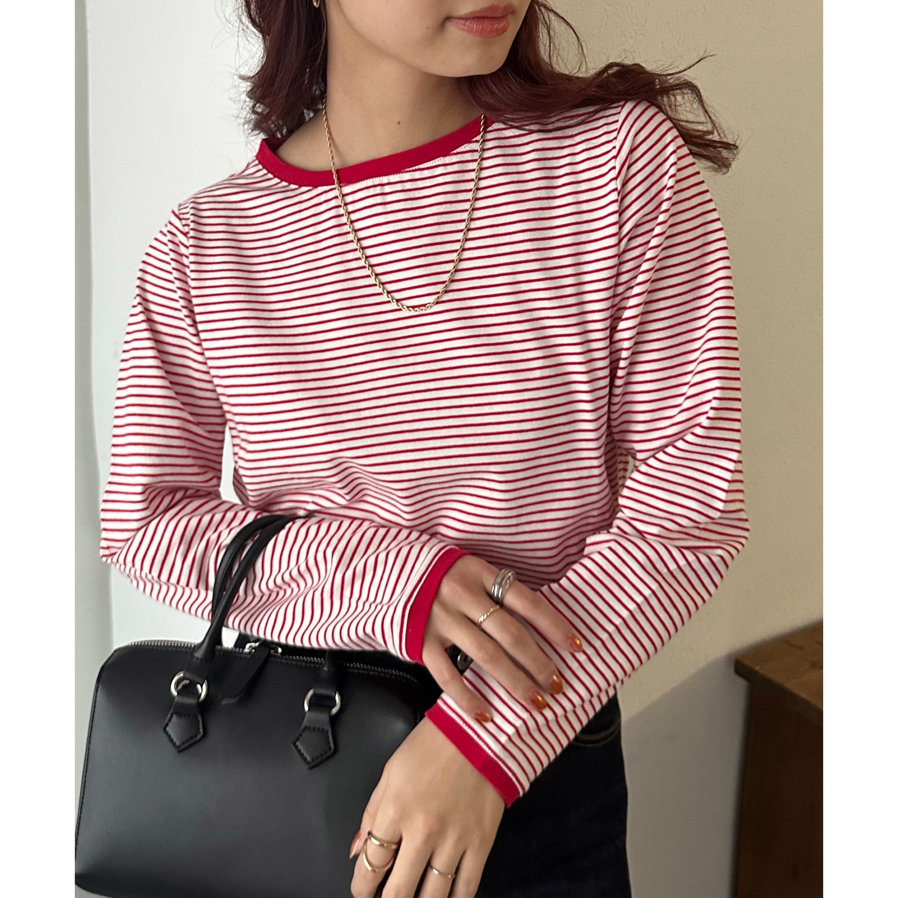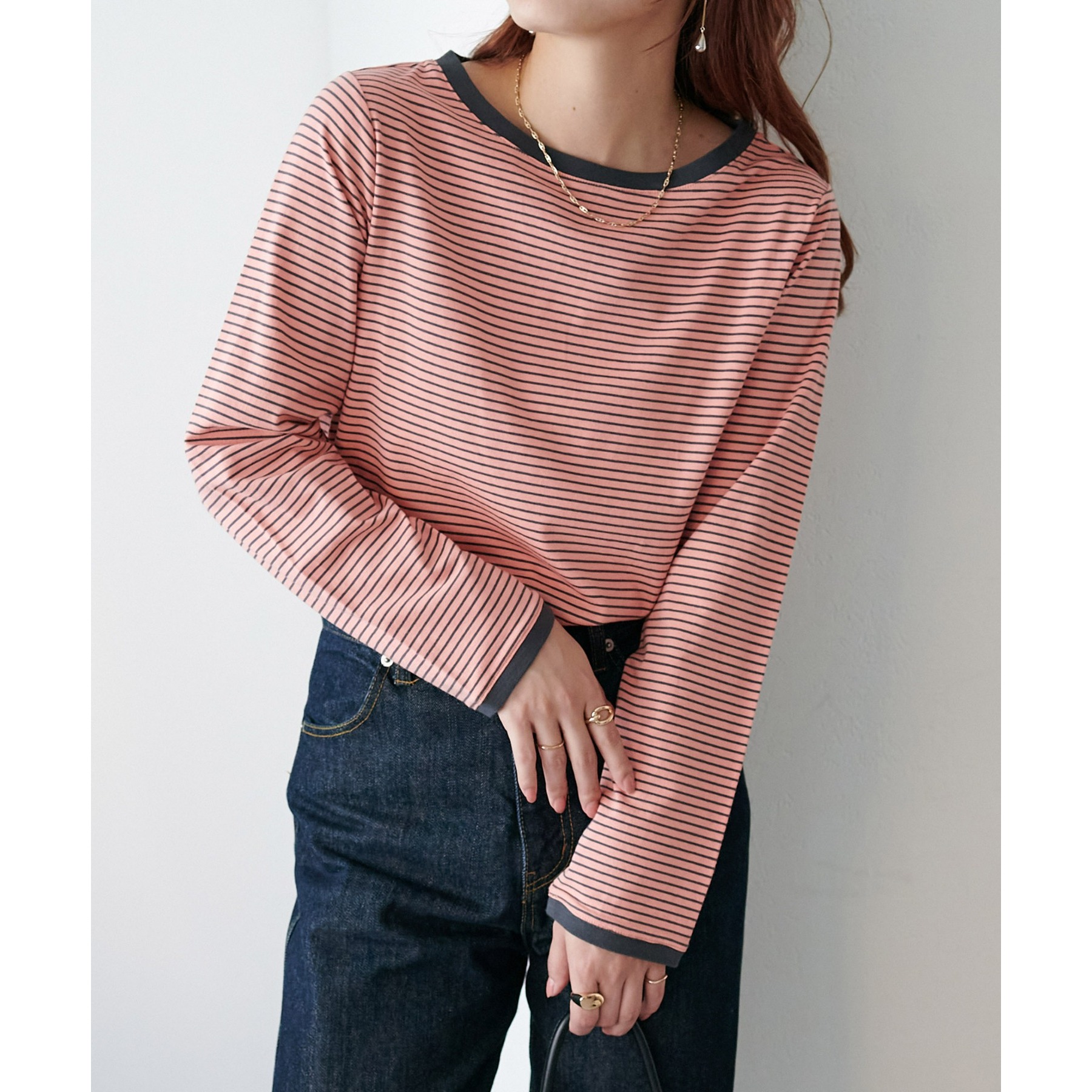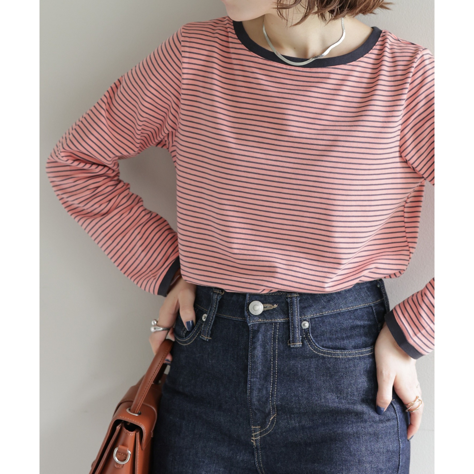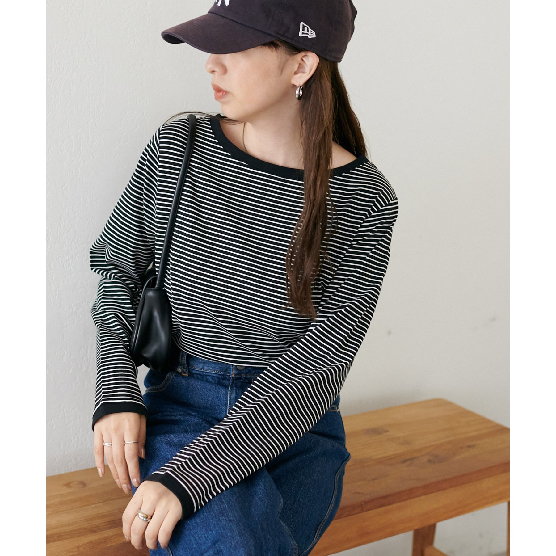 ・細めのピッチで仕上げた旬のボーダー柄と配色使いでアクセントをプラス
