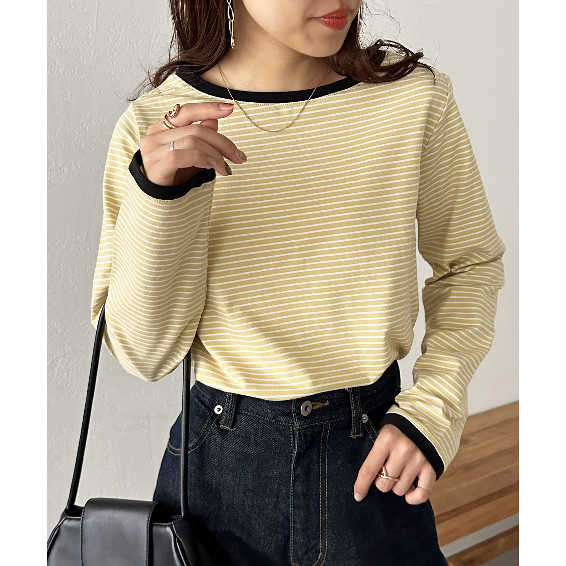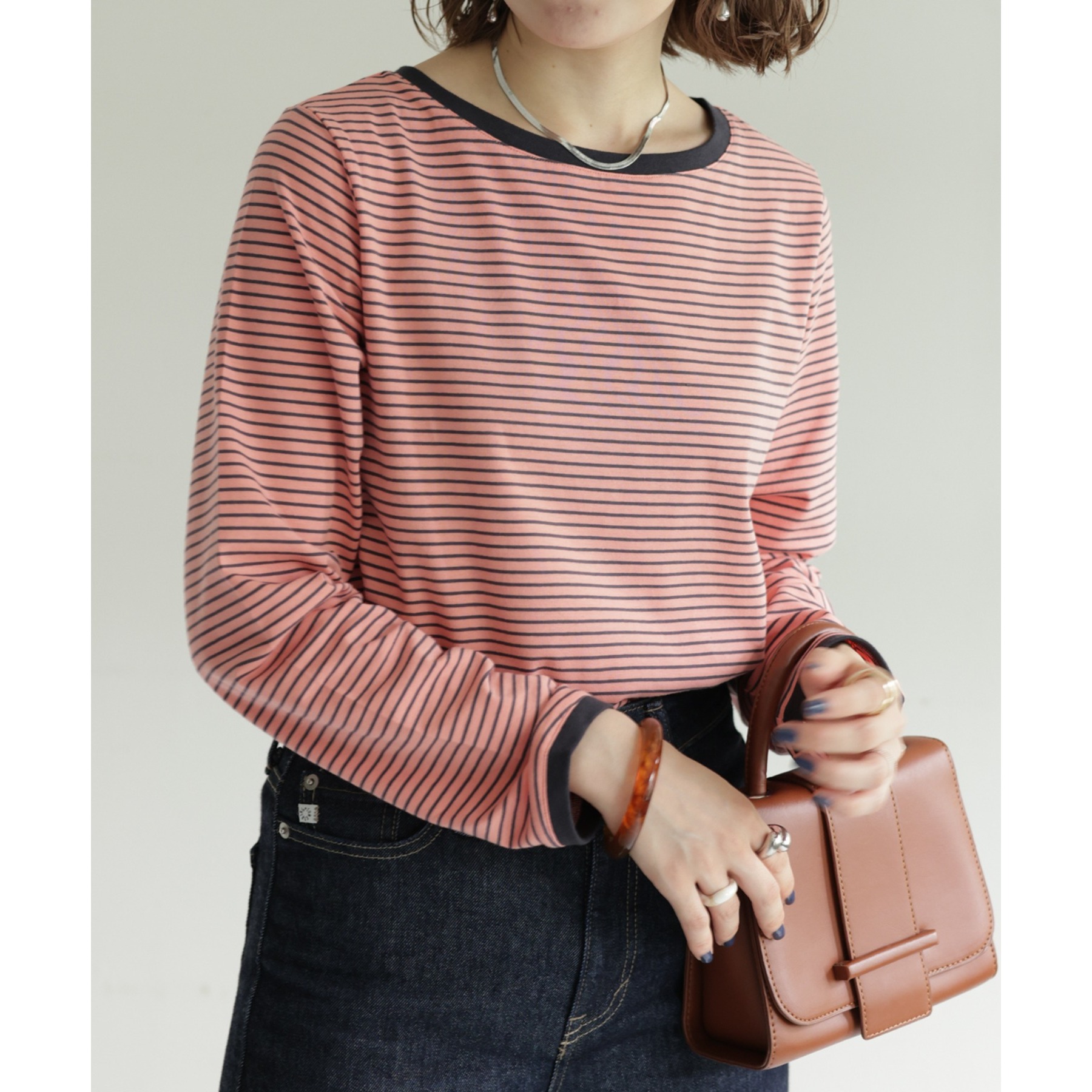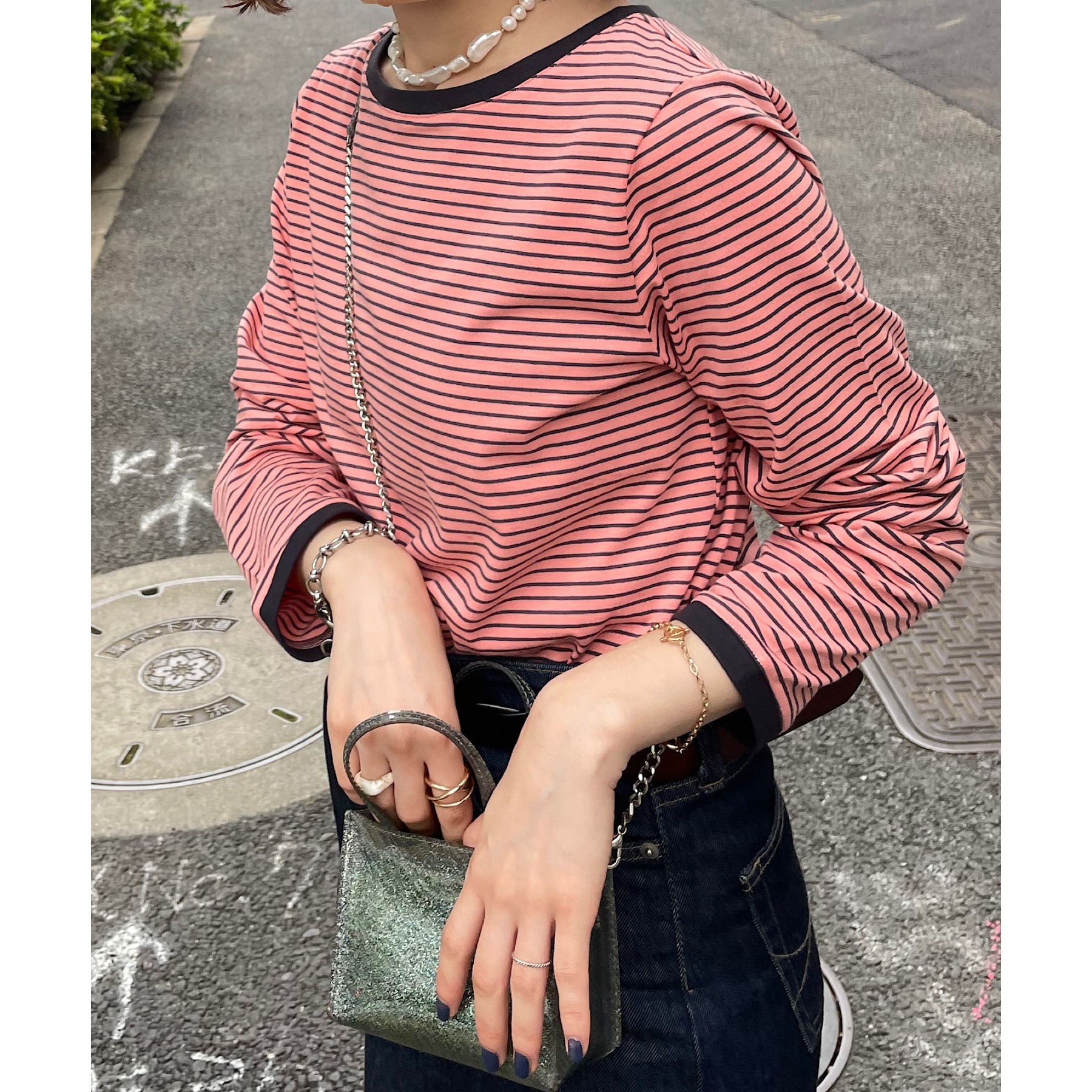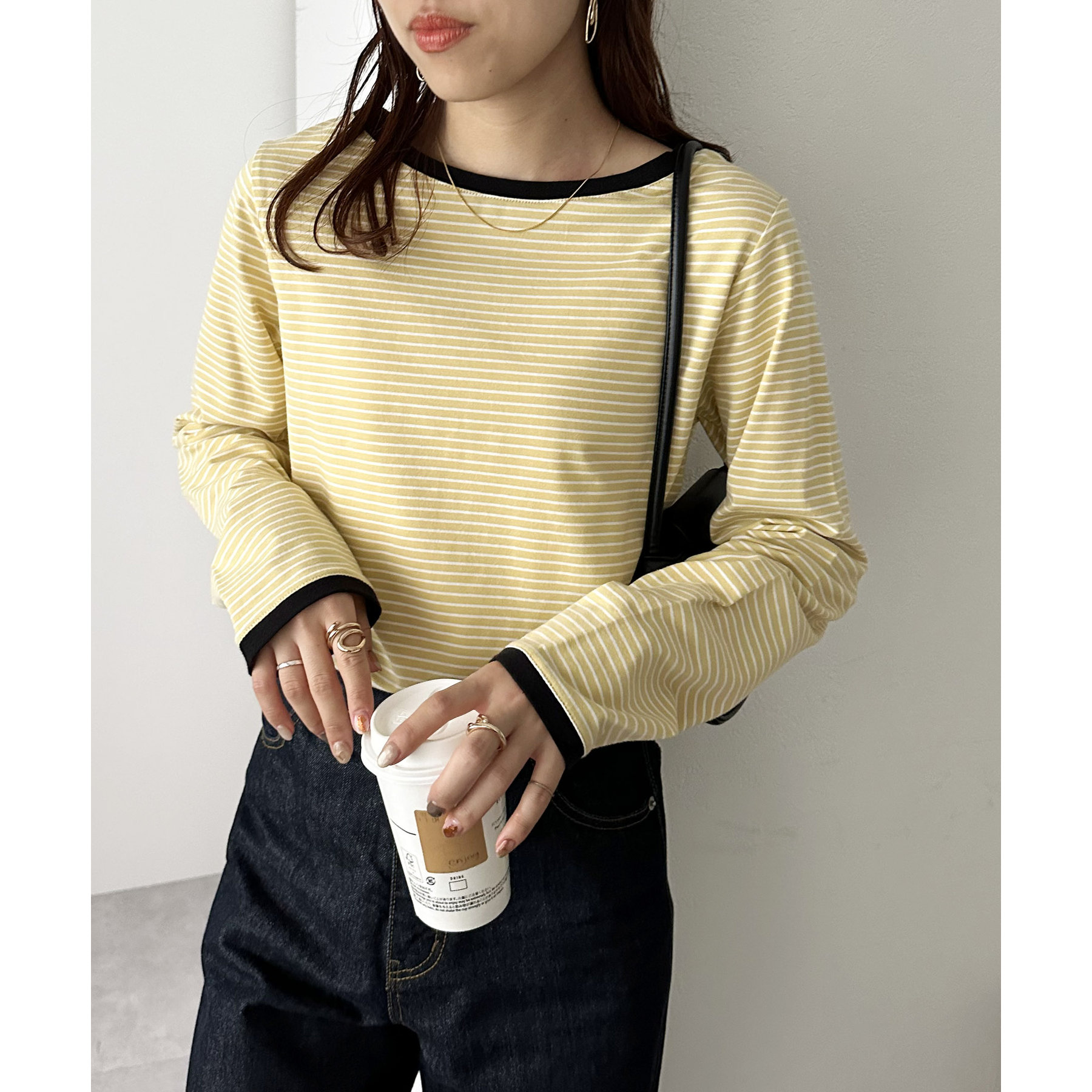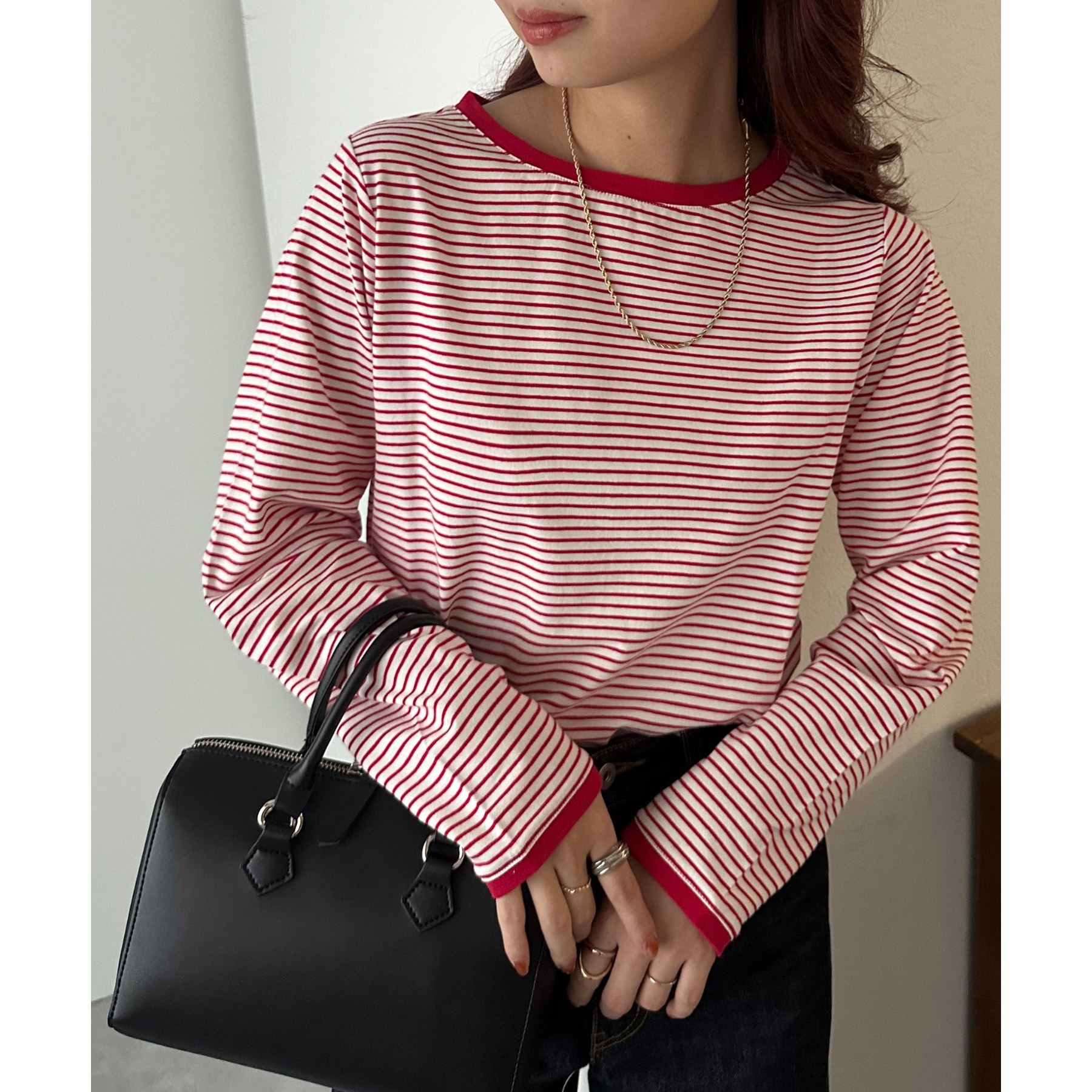 ・細めのピッチで仕上げた旬のボーダー柄と配色使いでアクセントをプラス