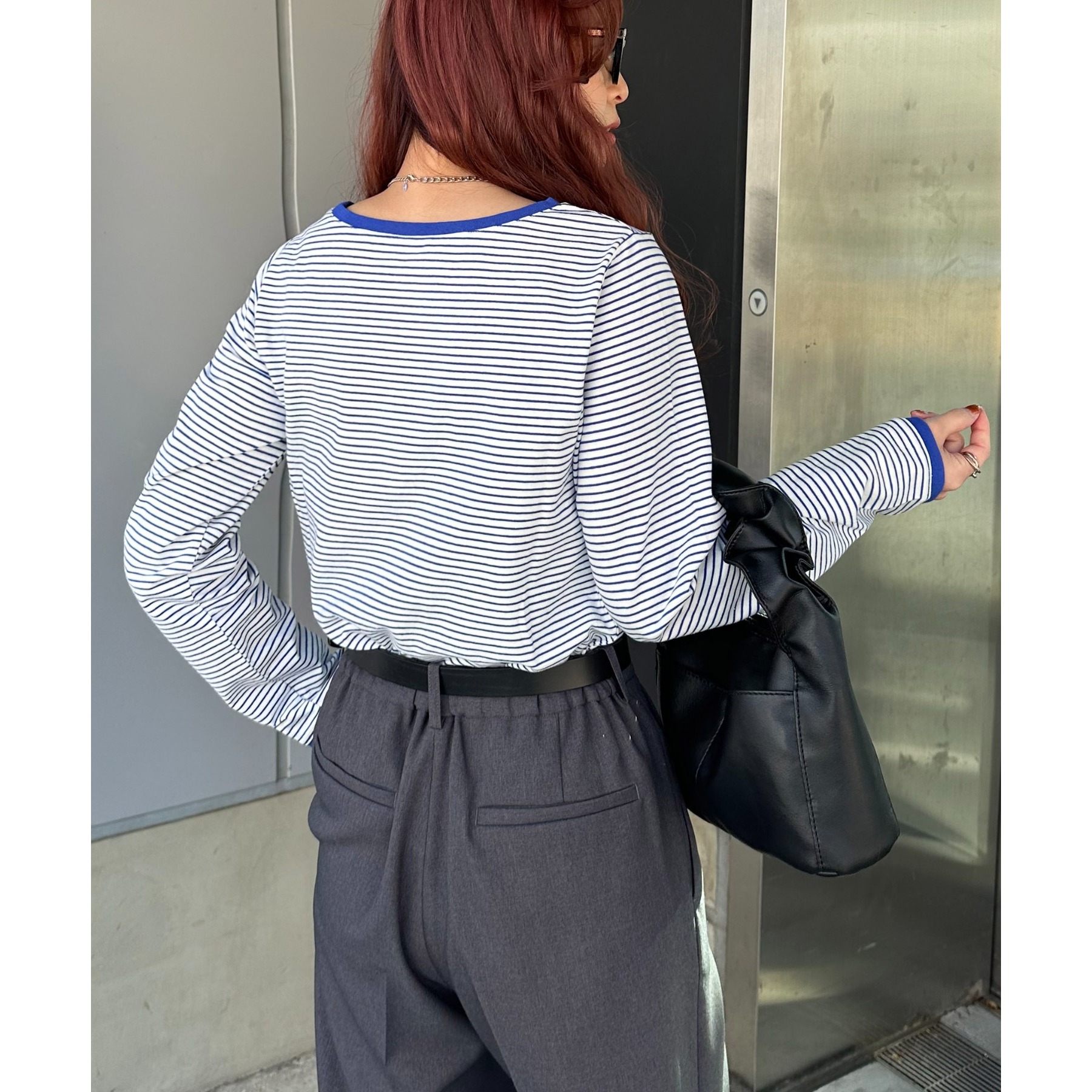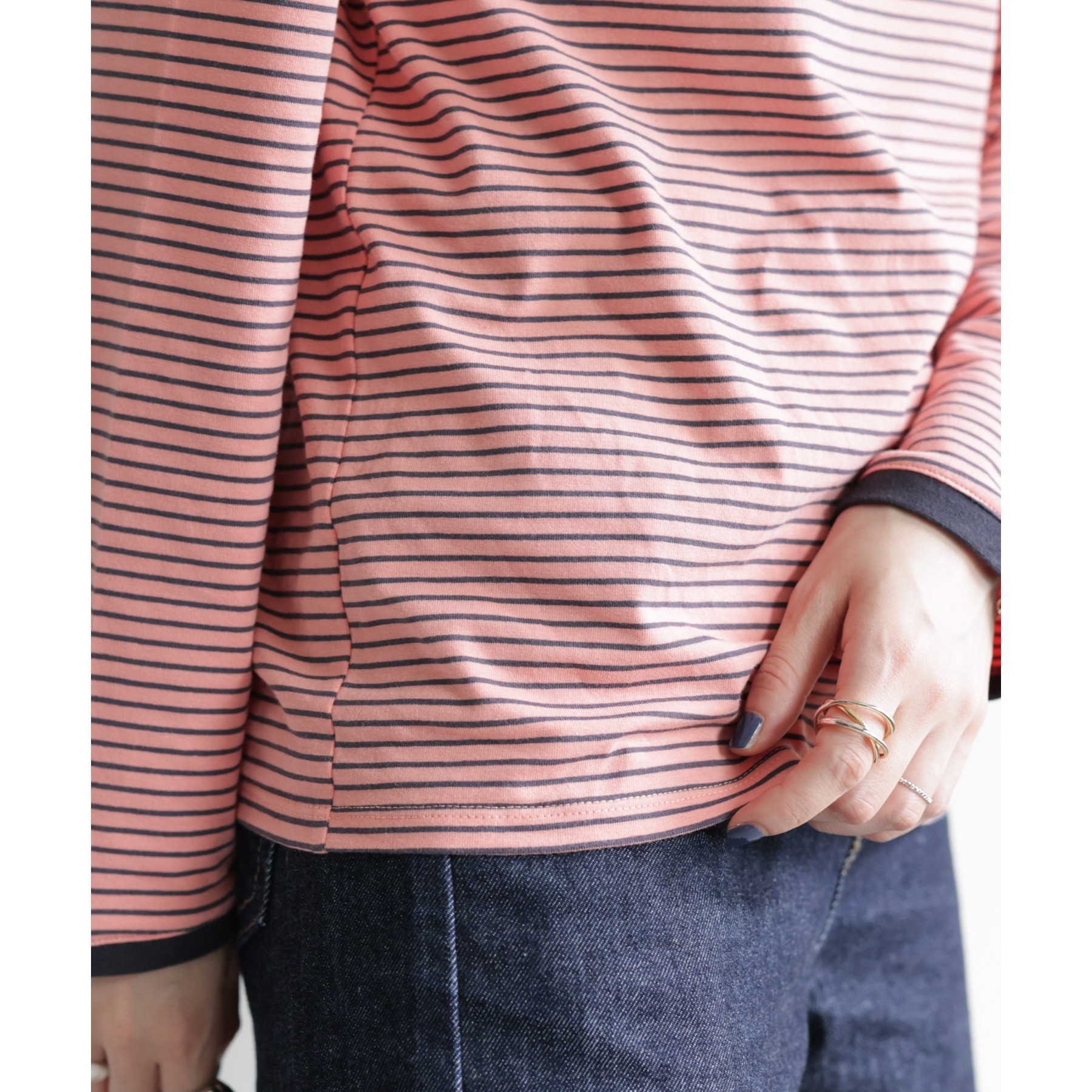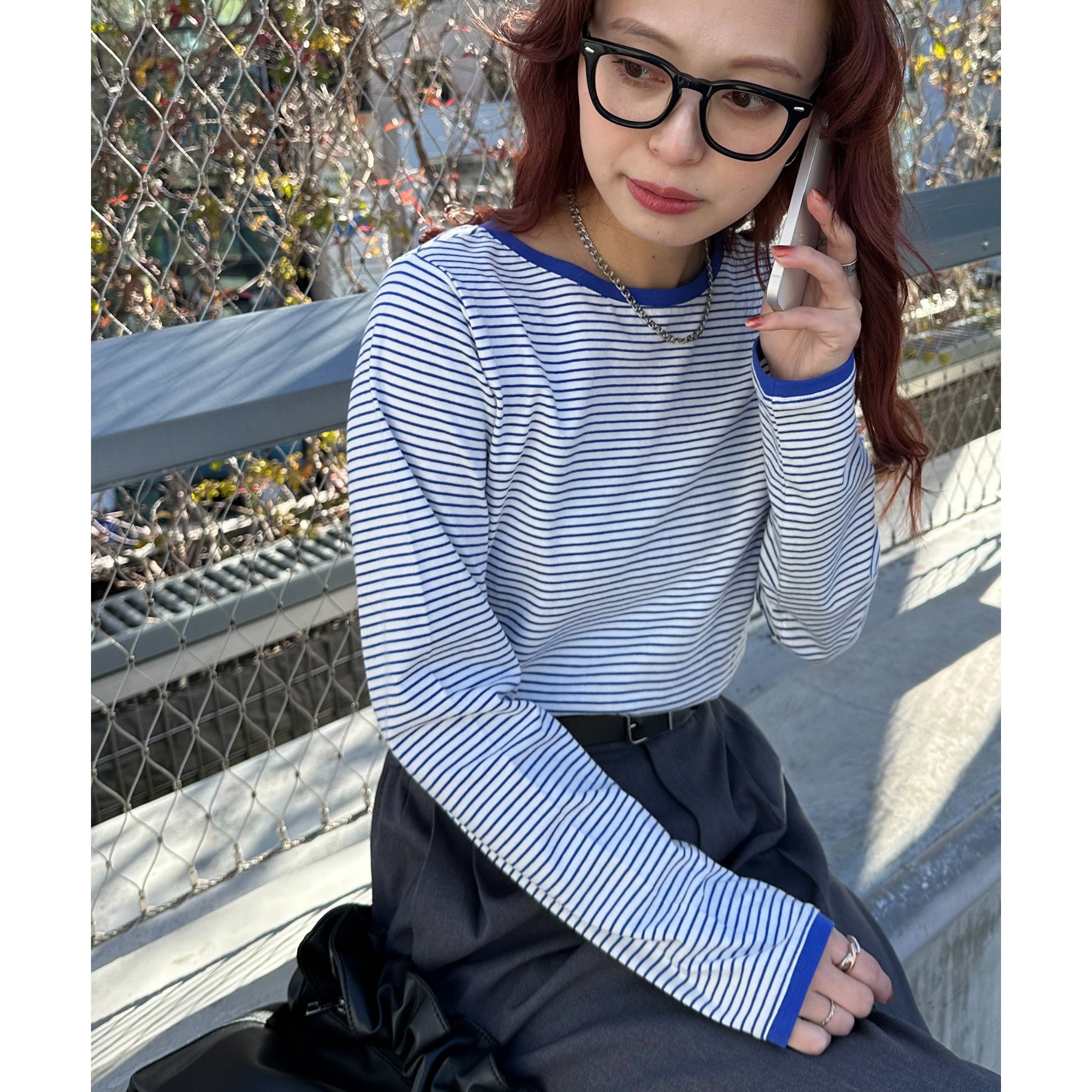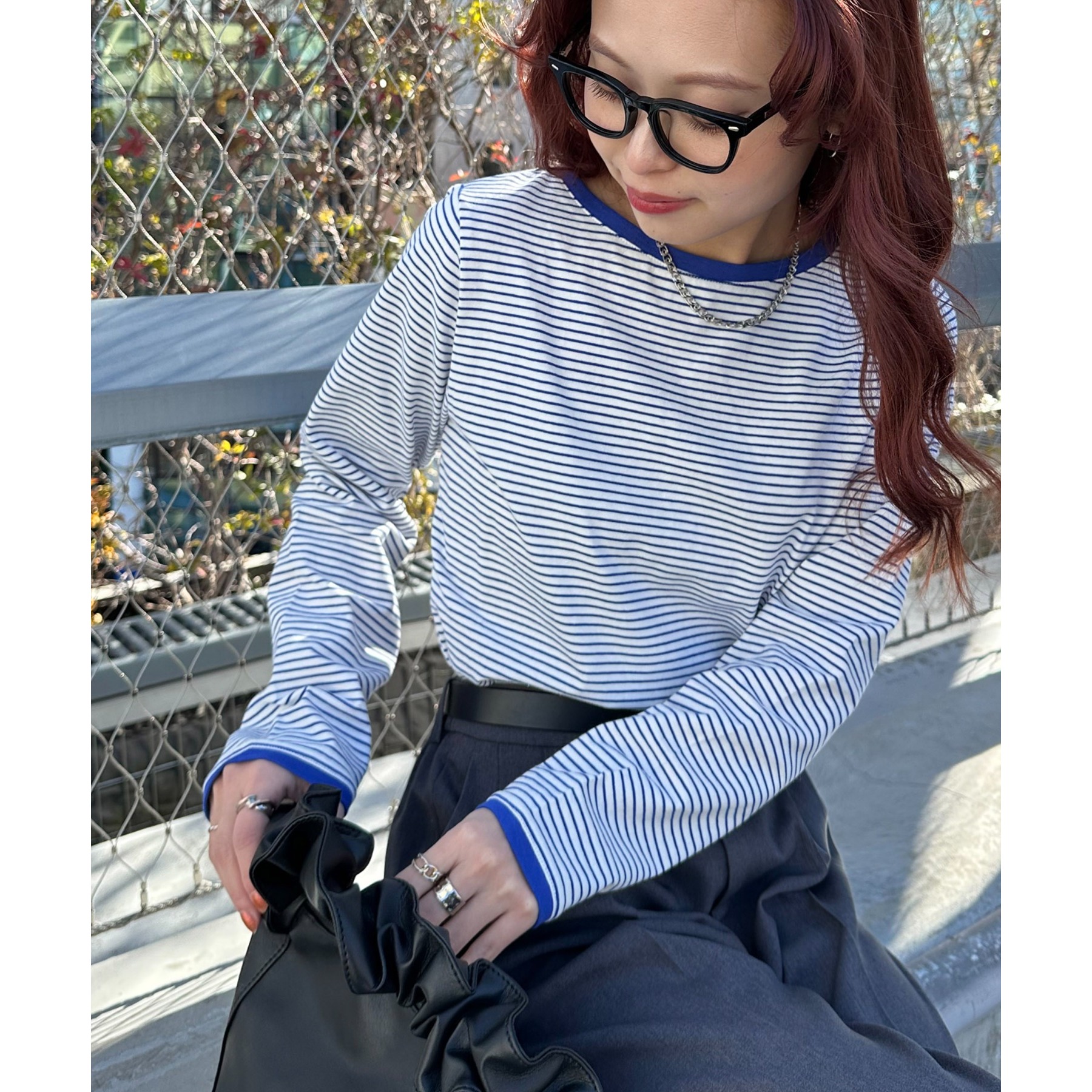 ・細めのピッチで仕上げた旬のボーダー柄と配色使いでアクセントをプラス