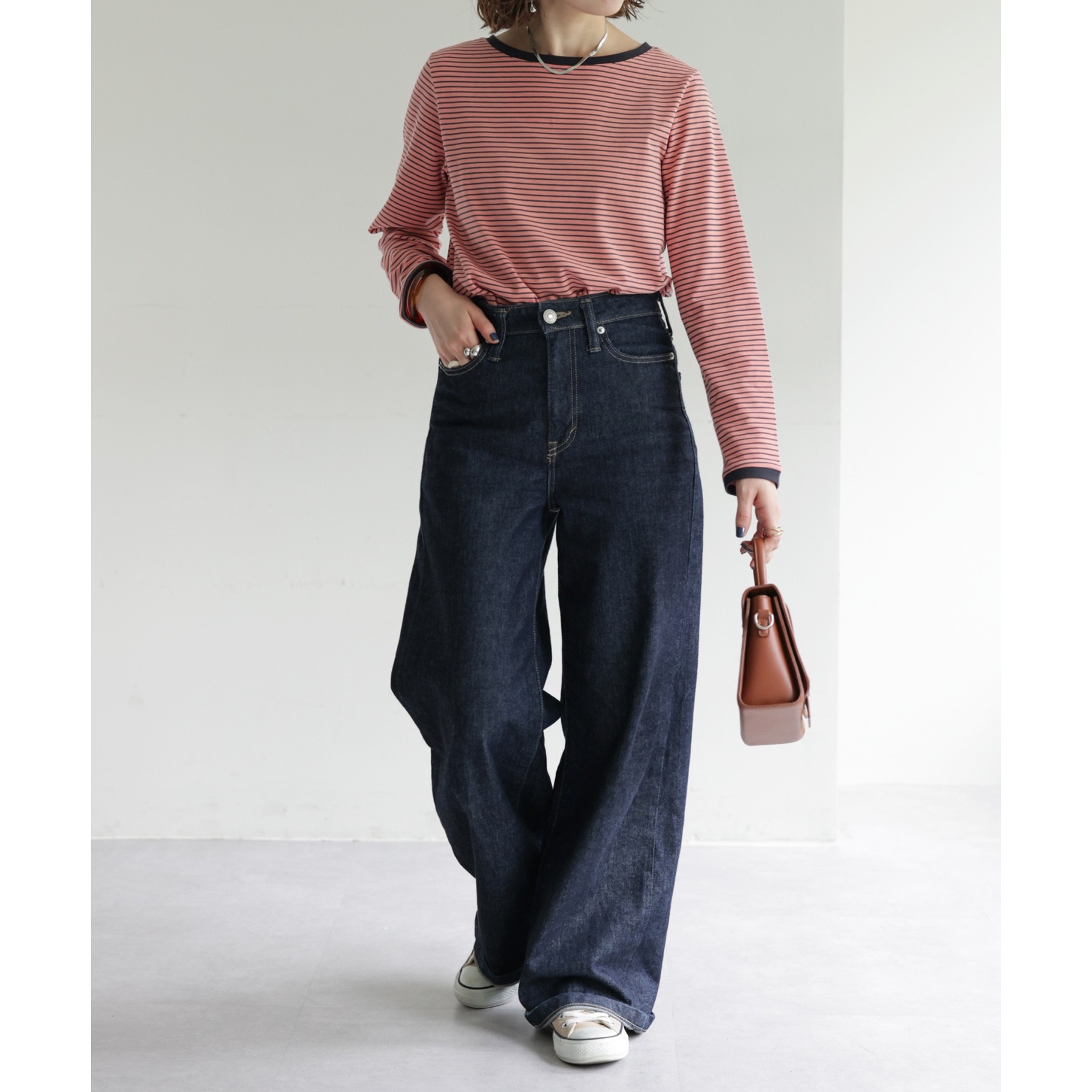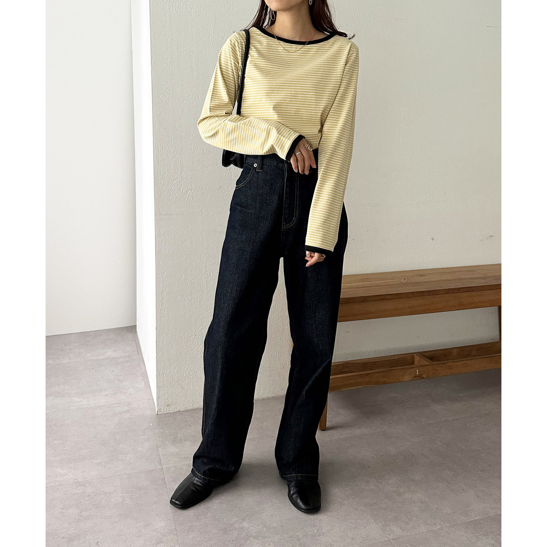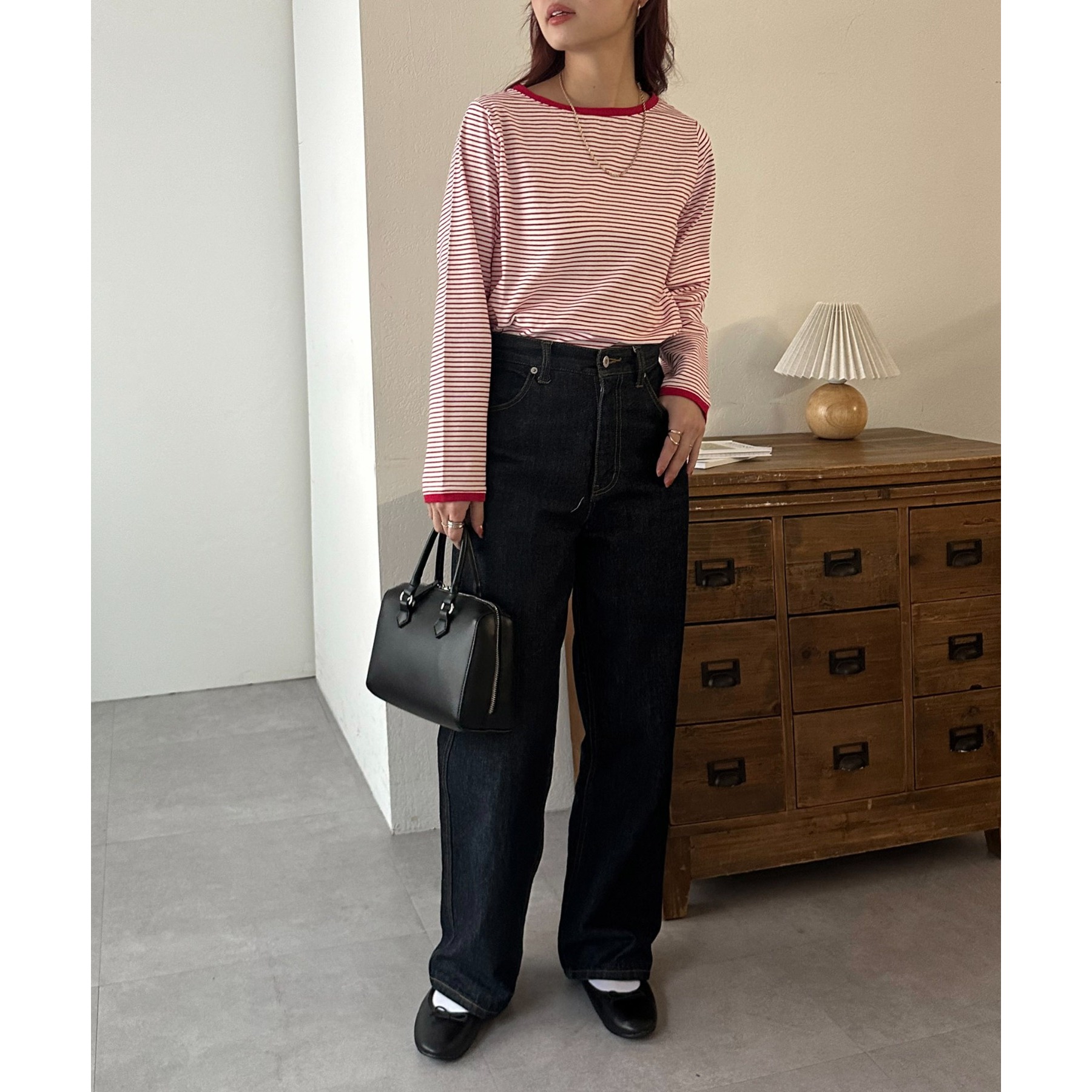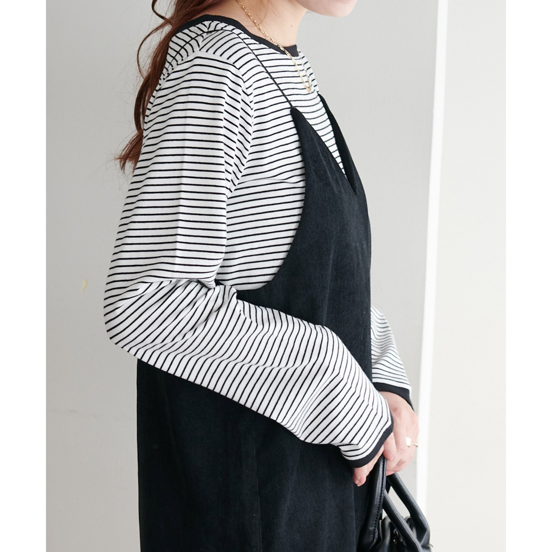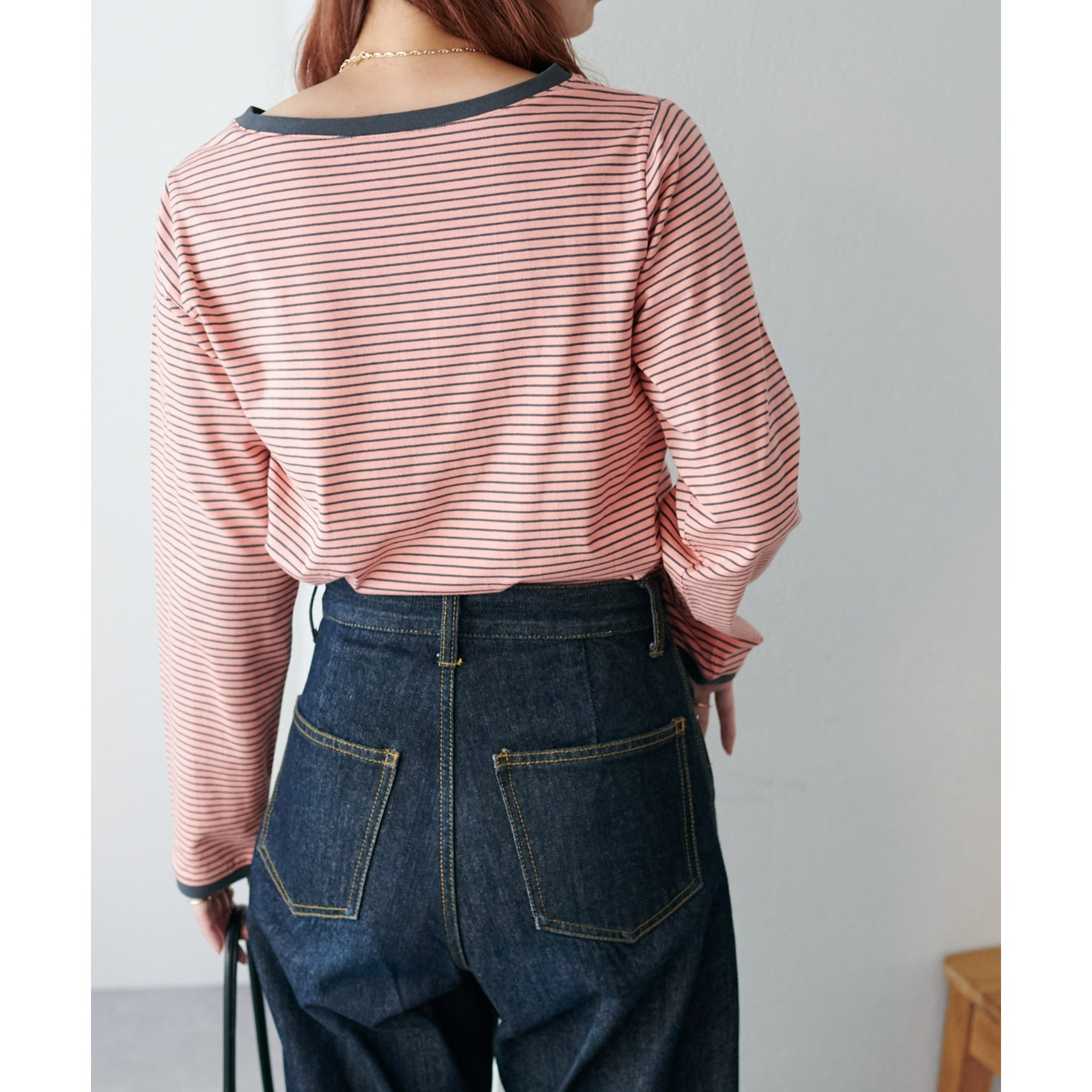 ・細めのピッチで仕上げた旬のボーダー柄と配色使いでアクセントをプラス